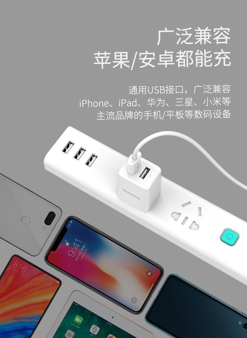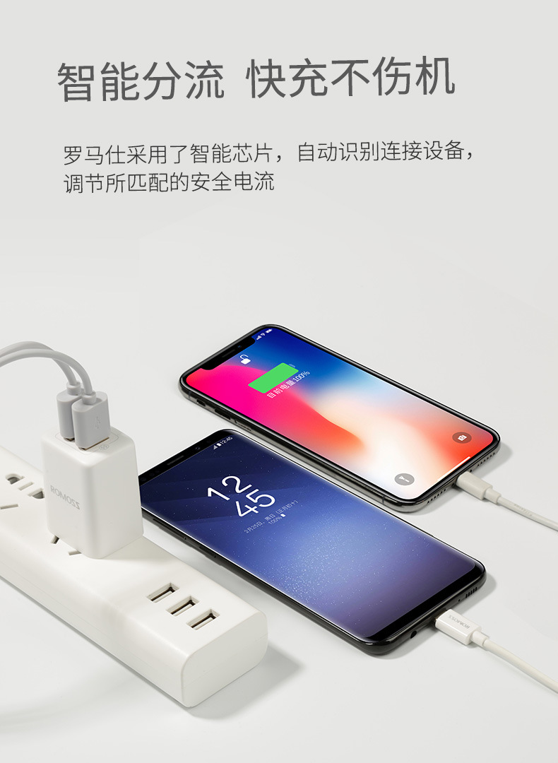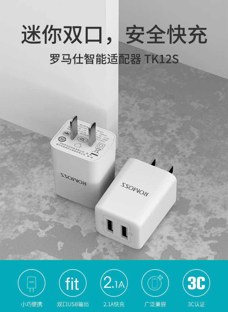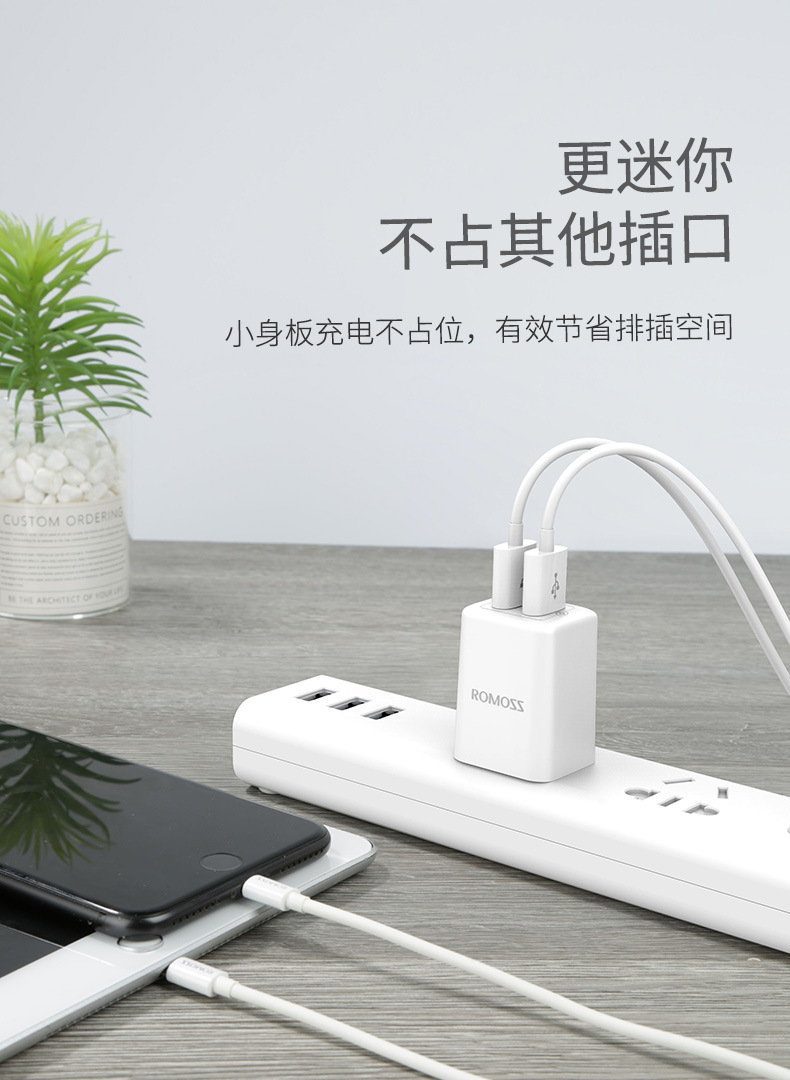 ROMOSS/羅馬仕充電器雙USB口直插5V2.1A電源變壓器手機充電頭插頭
