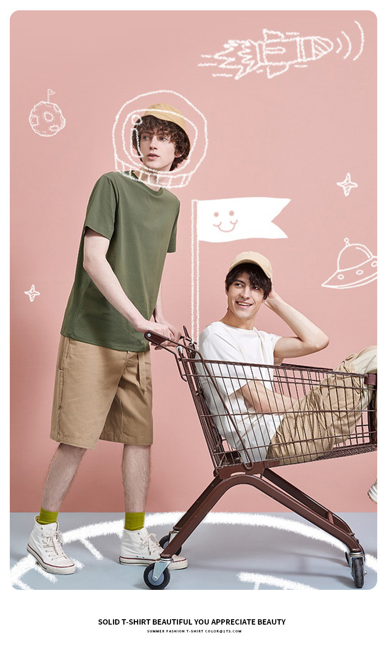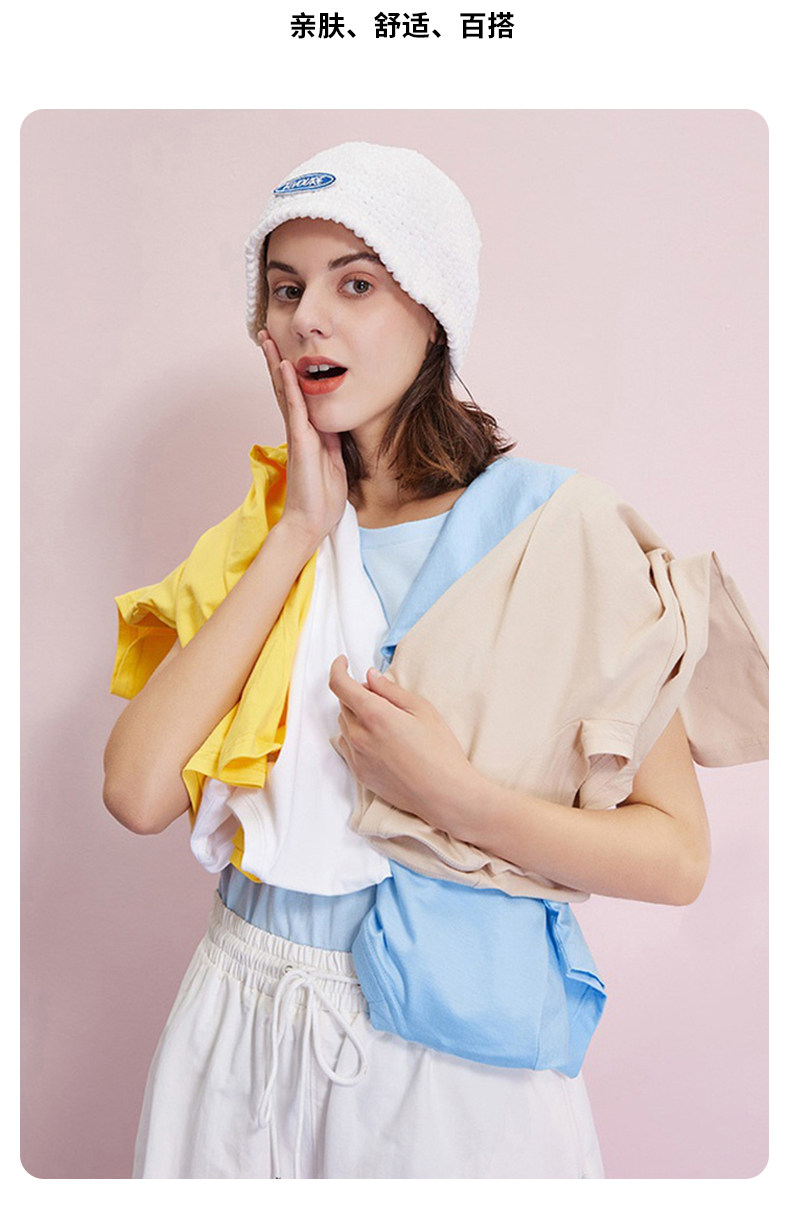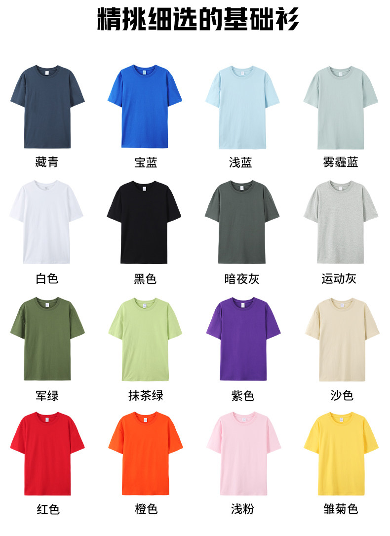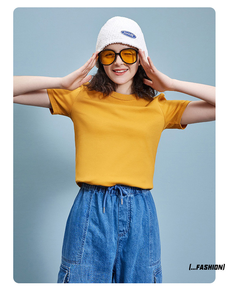 亮黃色純棉圓領短袖T恤男女全棉打底衫內搭寬松純色體恤大碼嘻哈