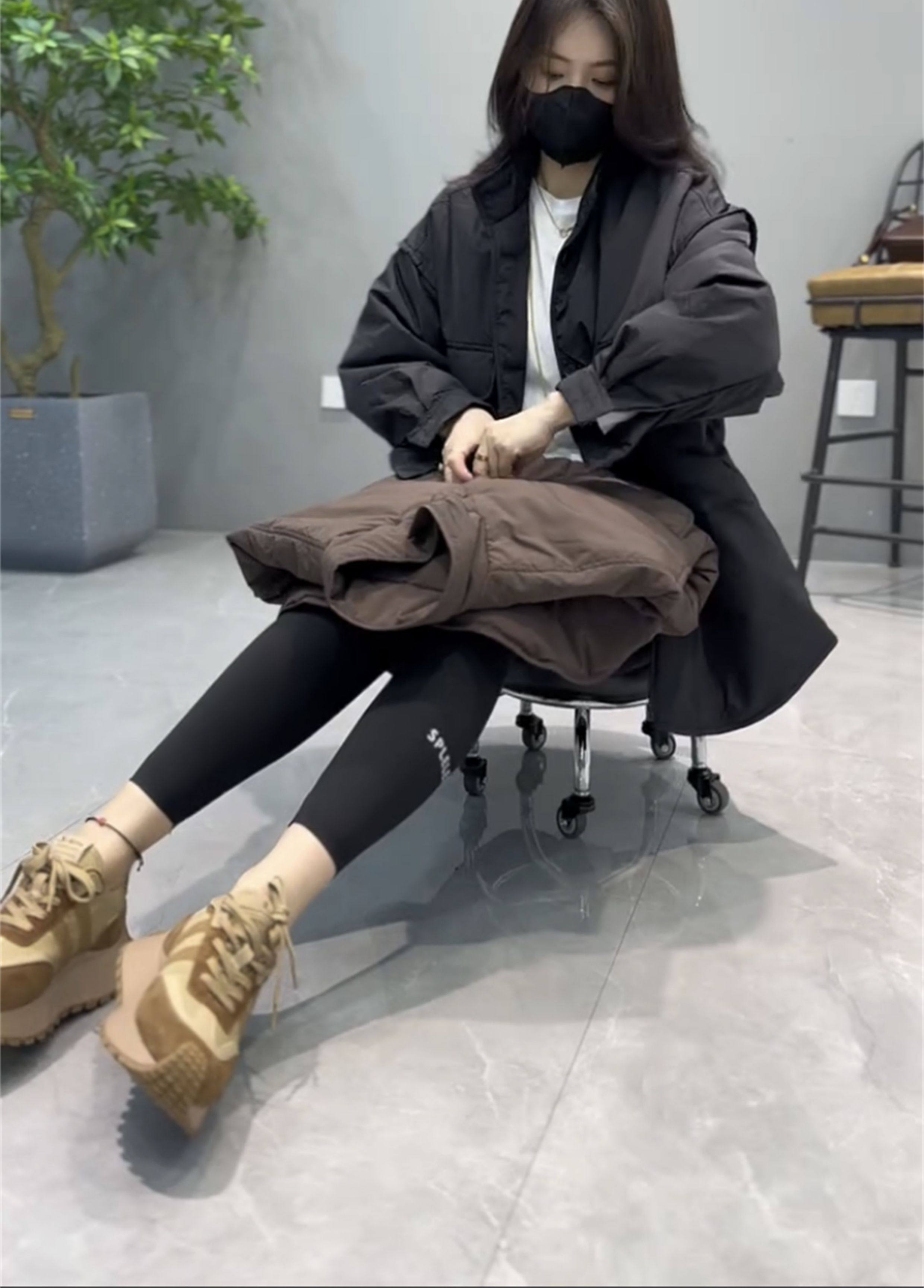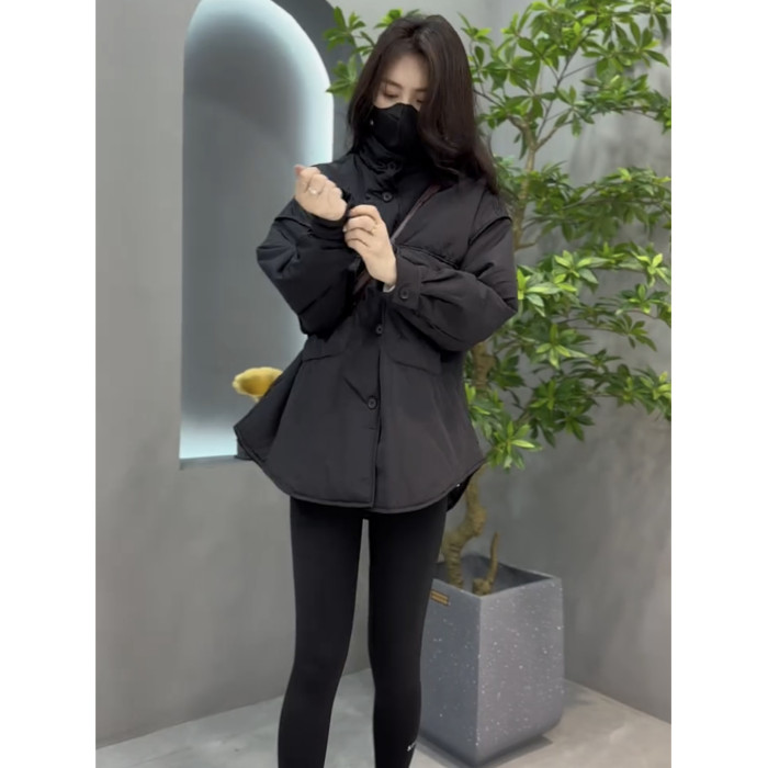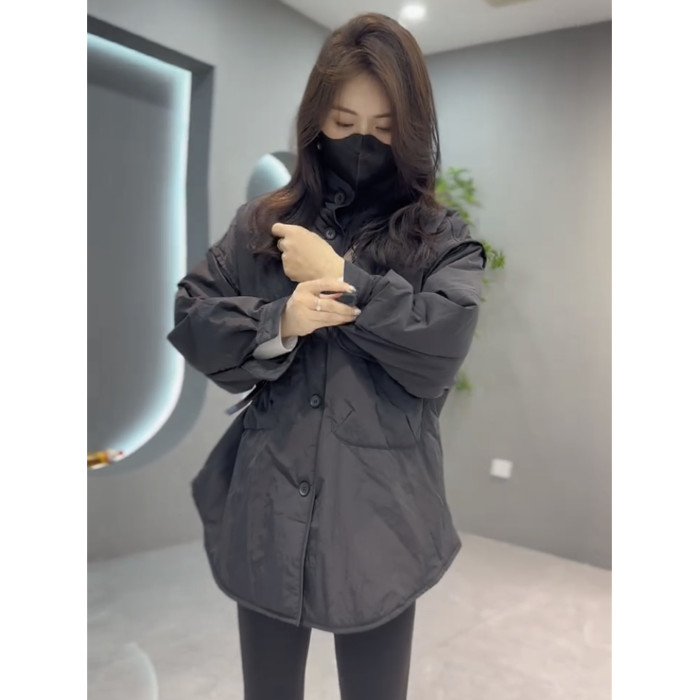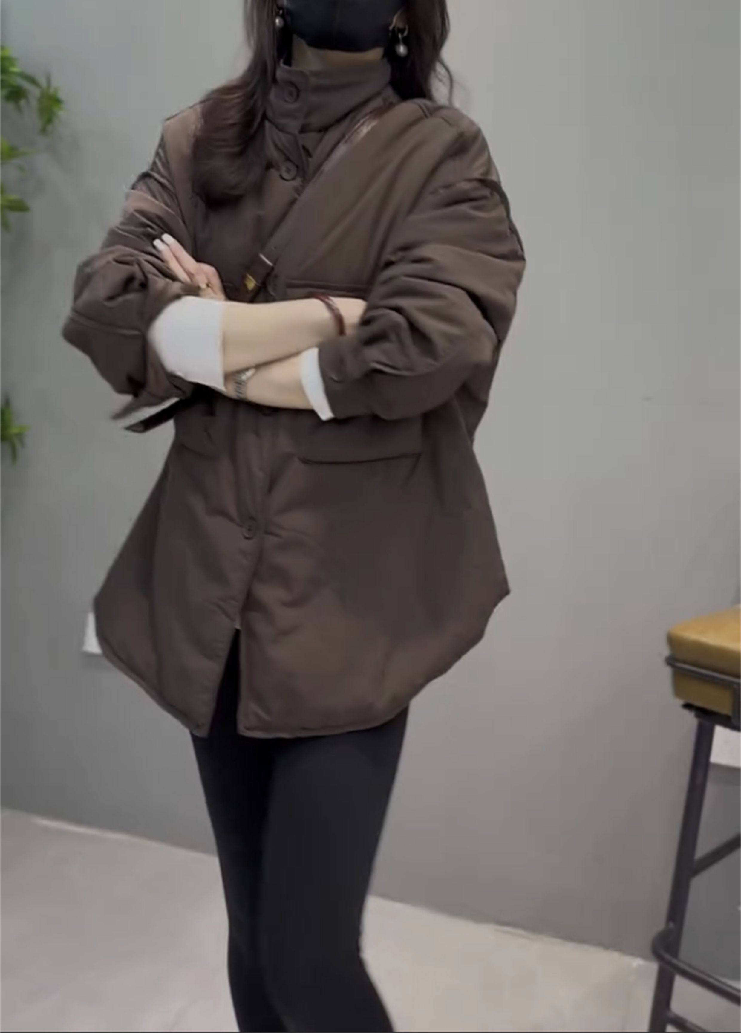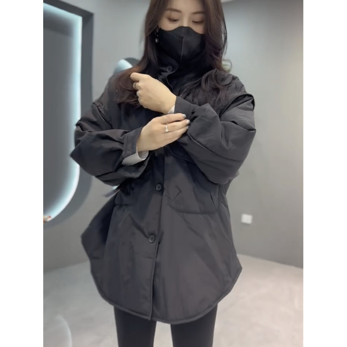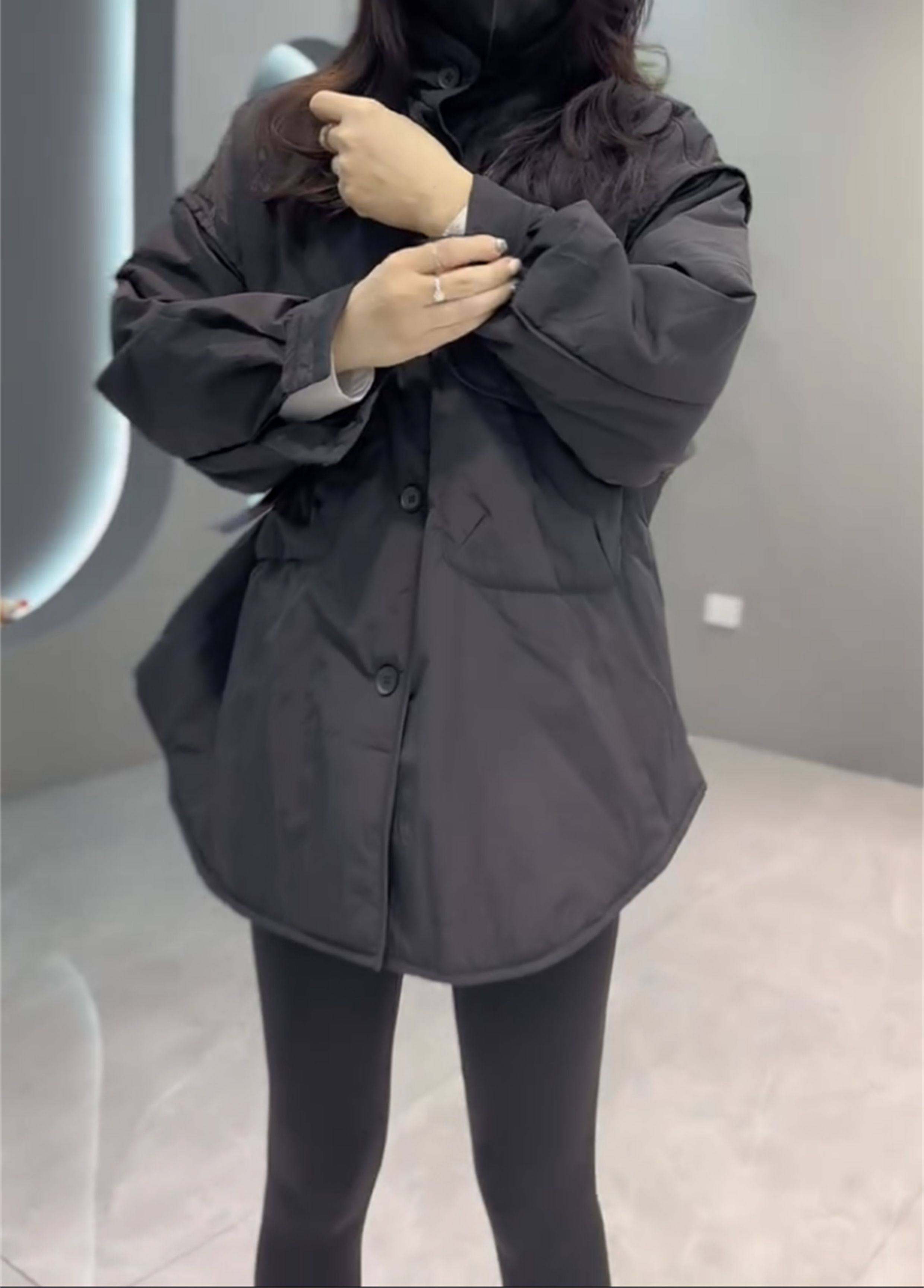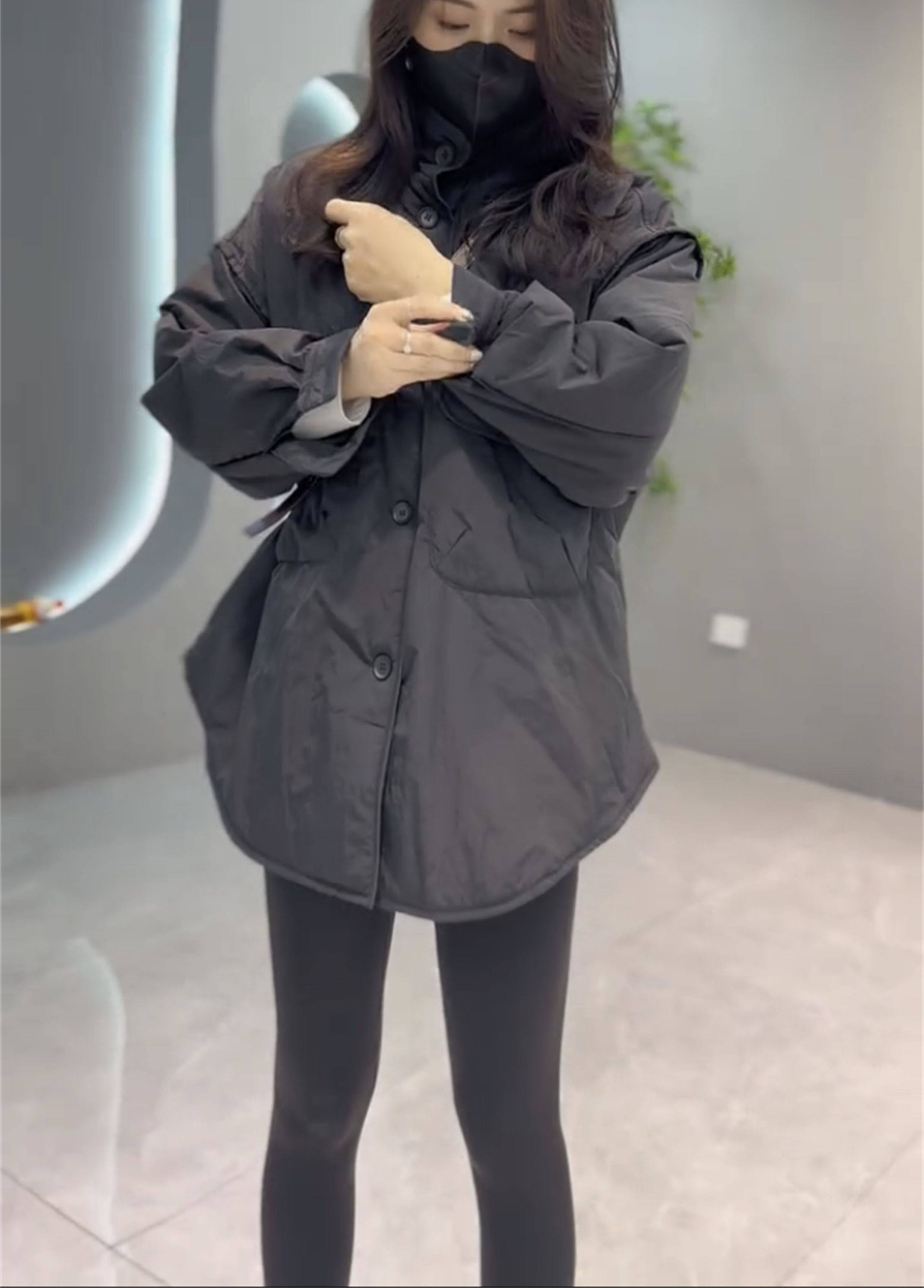 休閒網紅時尚大口袋外套韓版寬松中長款加厚簡約立領歐貨工裝大衣