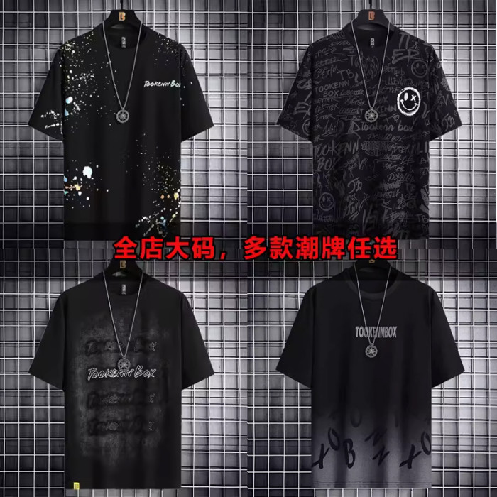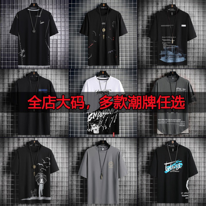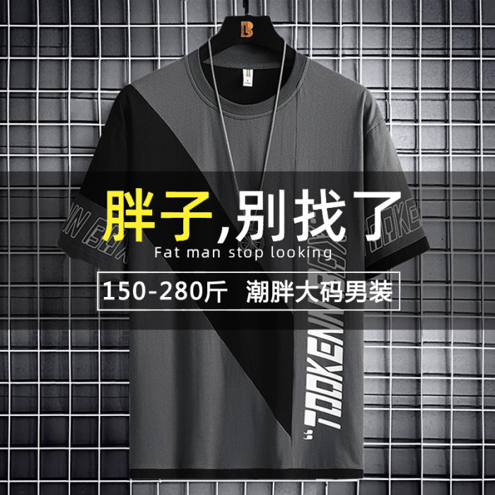 夏季胖子短袖t恤男大碼青少年加肥加大寬松圓領純棉男款潮流半袖