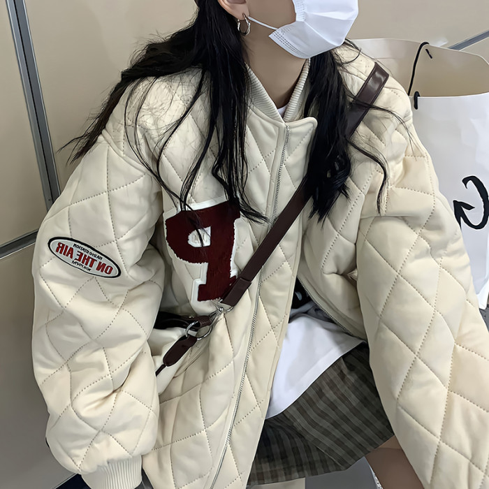 菱格棉服棒球服女冬季新款加厚棉衣寬松設計感小衆棉襖夾棉外套潮