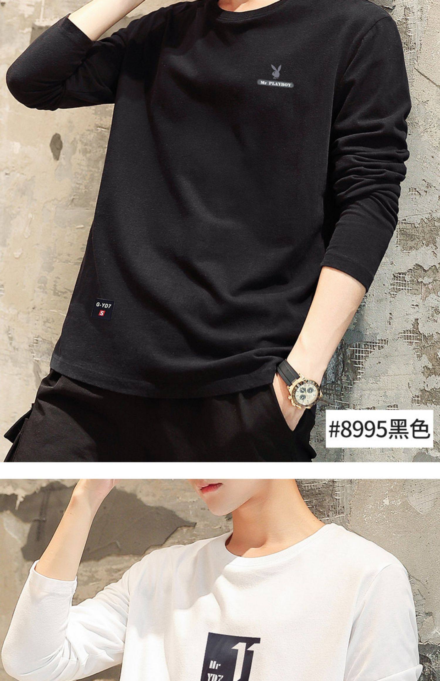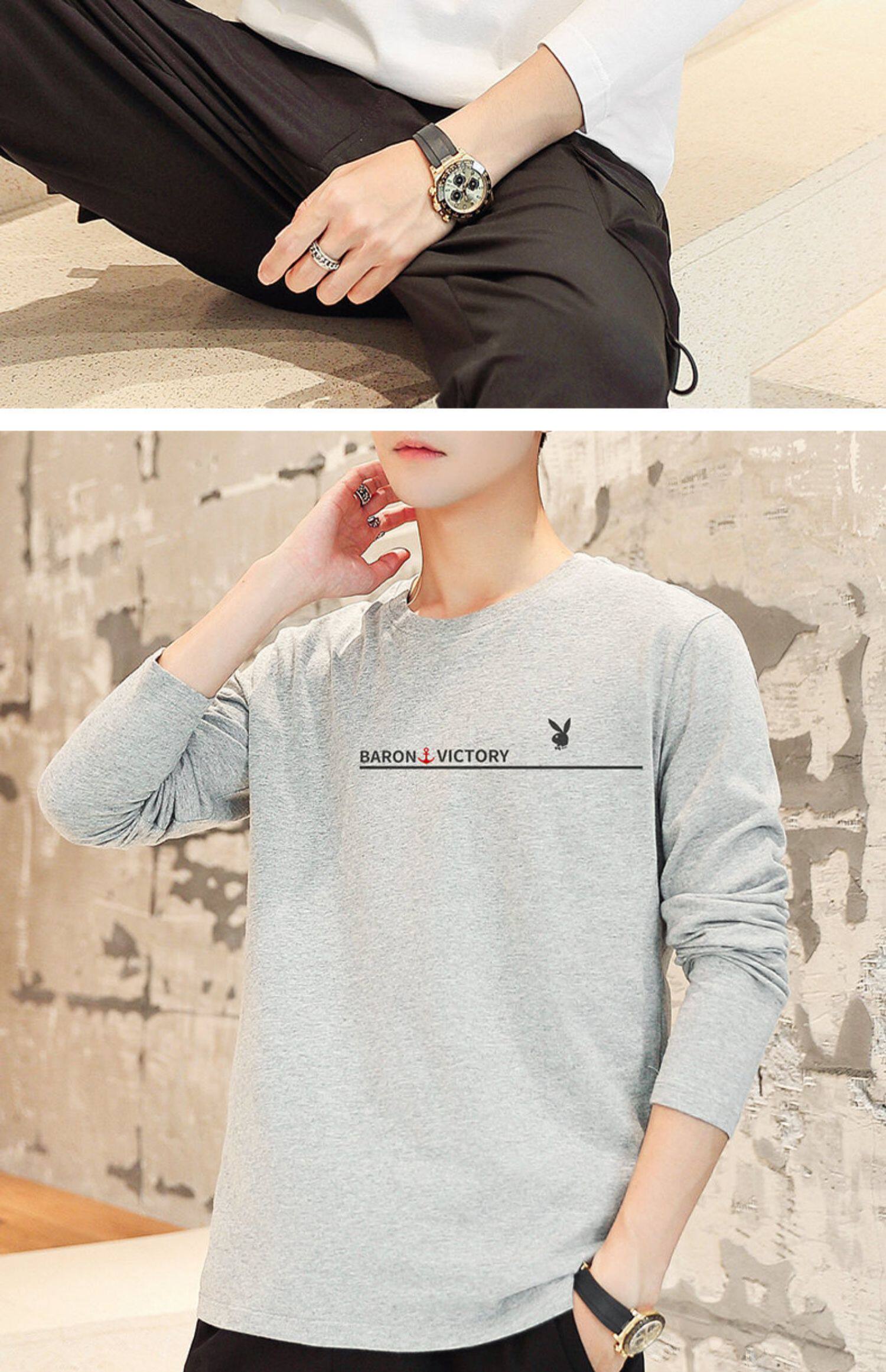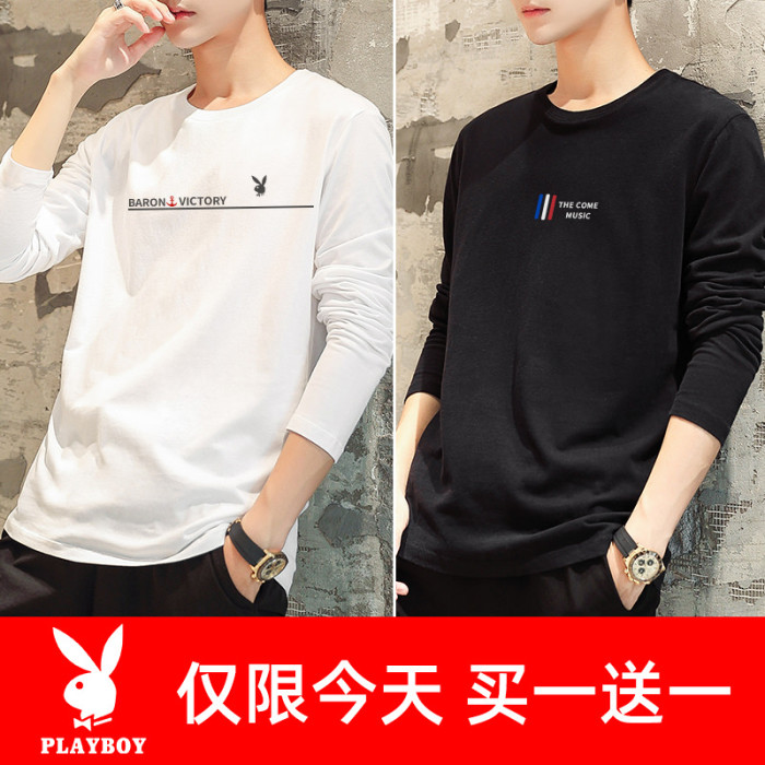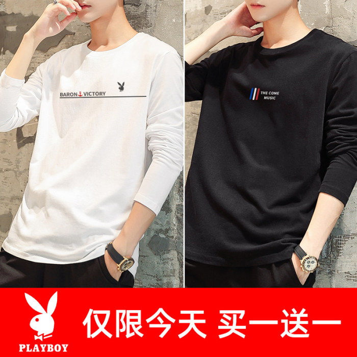 2件花花公子長袖t恤男士2025秋季裝純棉上衣服潮流打底衫秋衣男裝