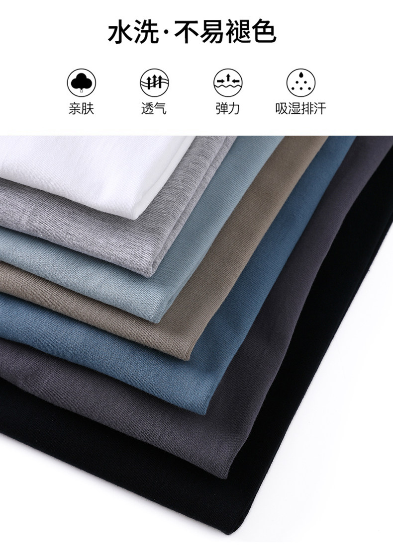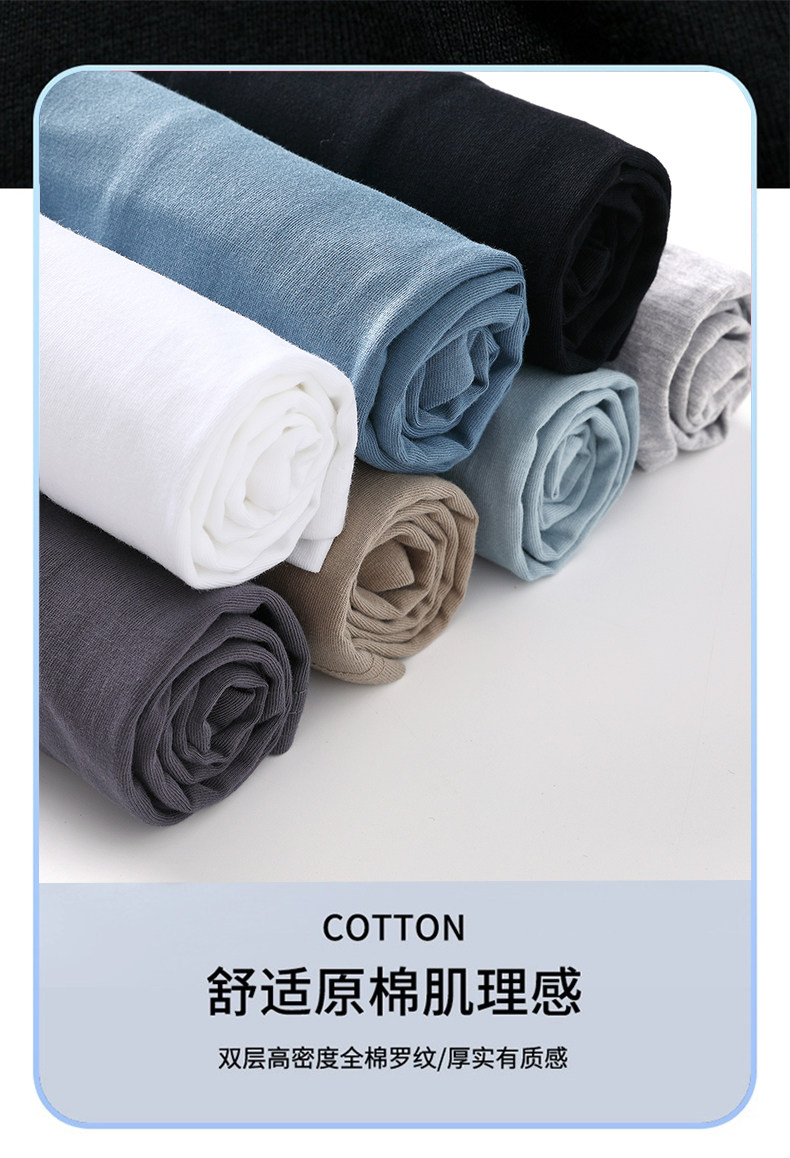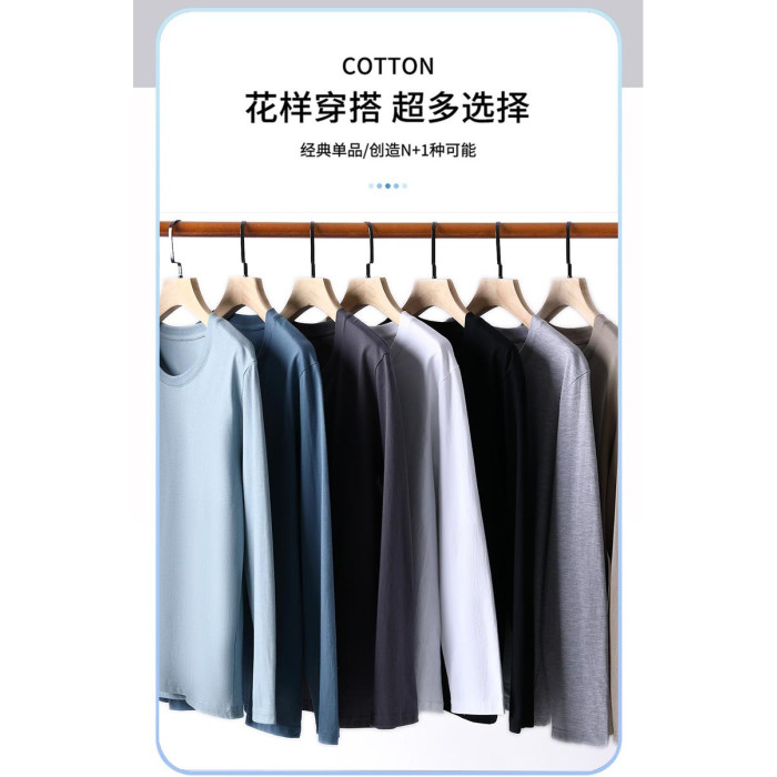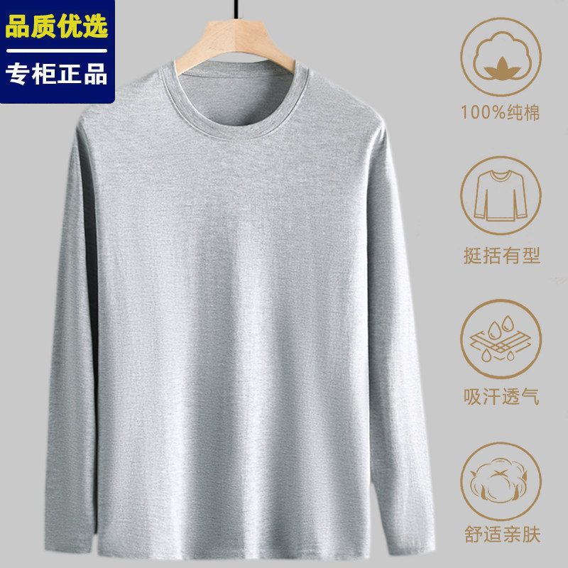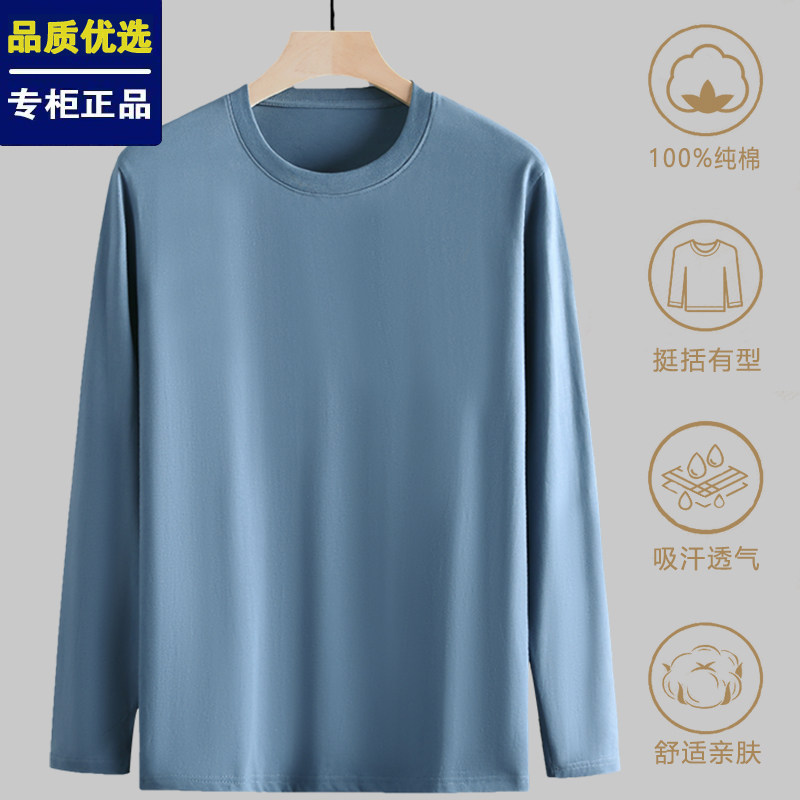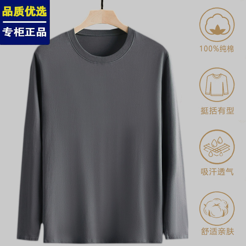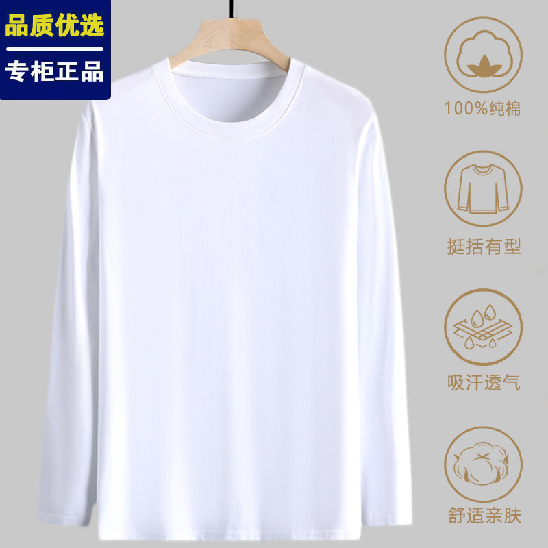 保羅100%全棉純白色長袖男士中老年黑色內搭打底衫初秋薄款T體恤
