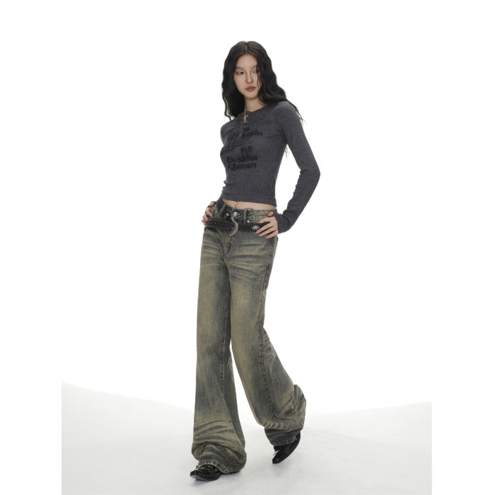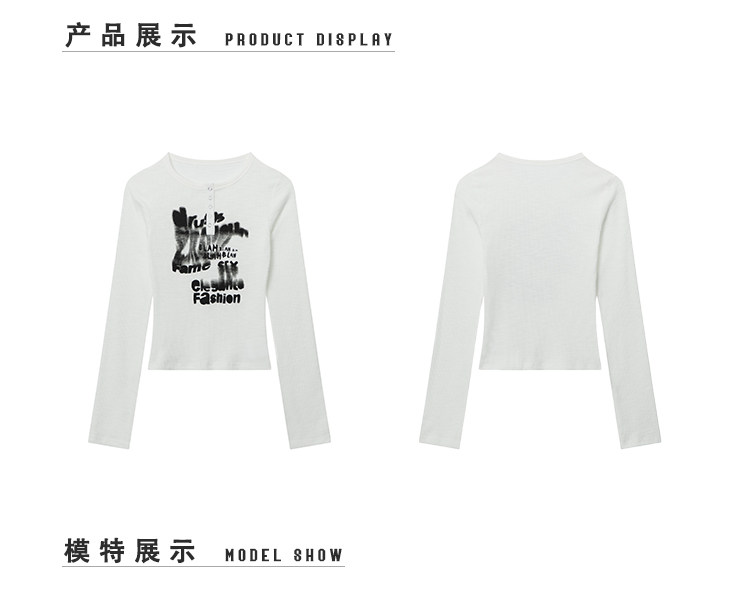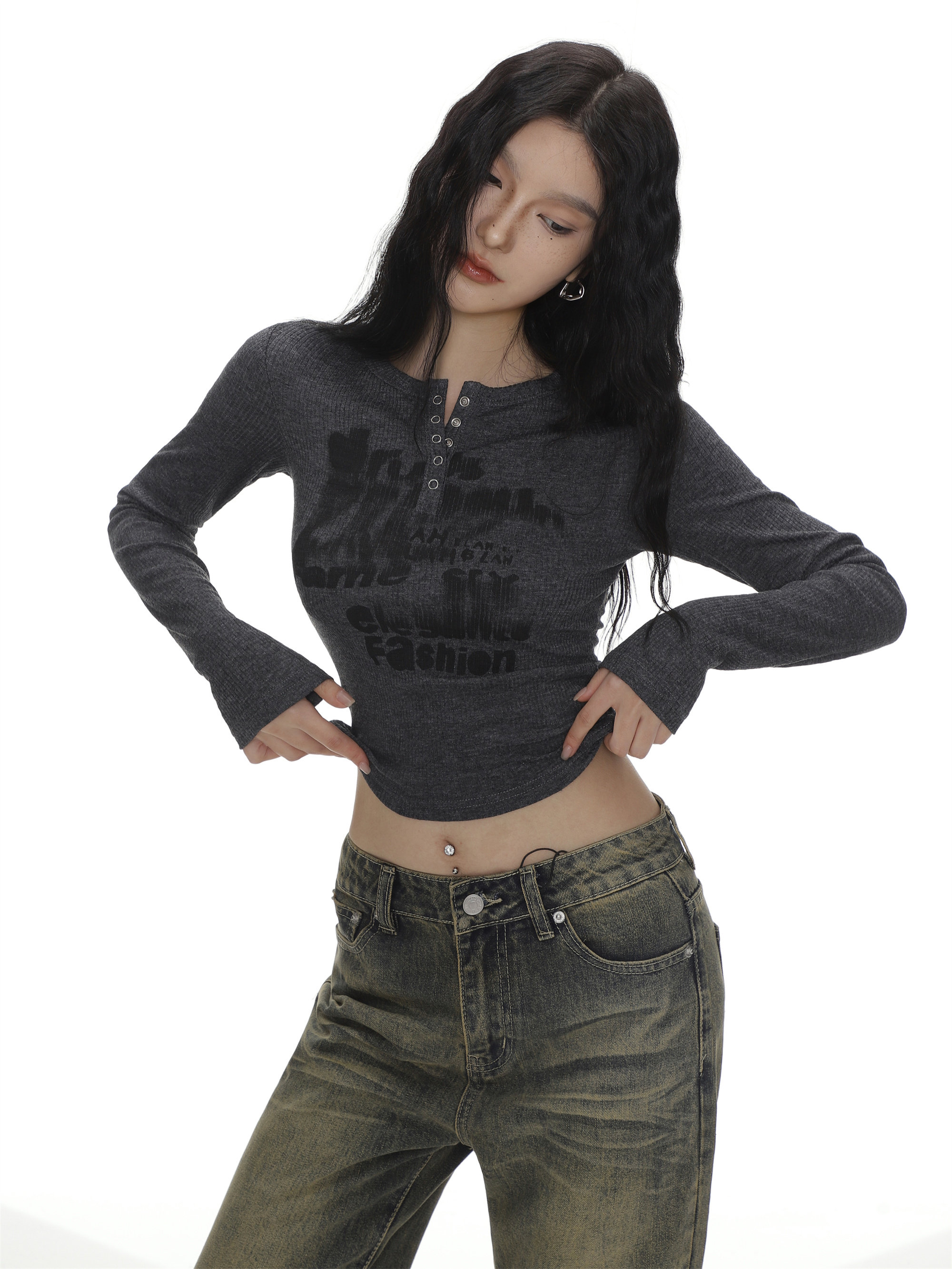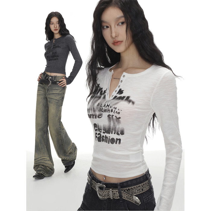 SHIYIYUE 美式辣妹字母塗鴉印花T恤女2025秋冬小個子修身短款上衣