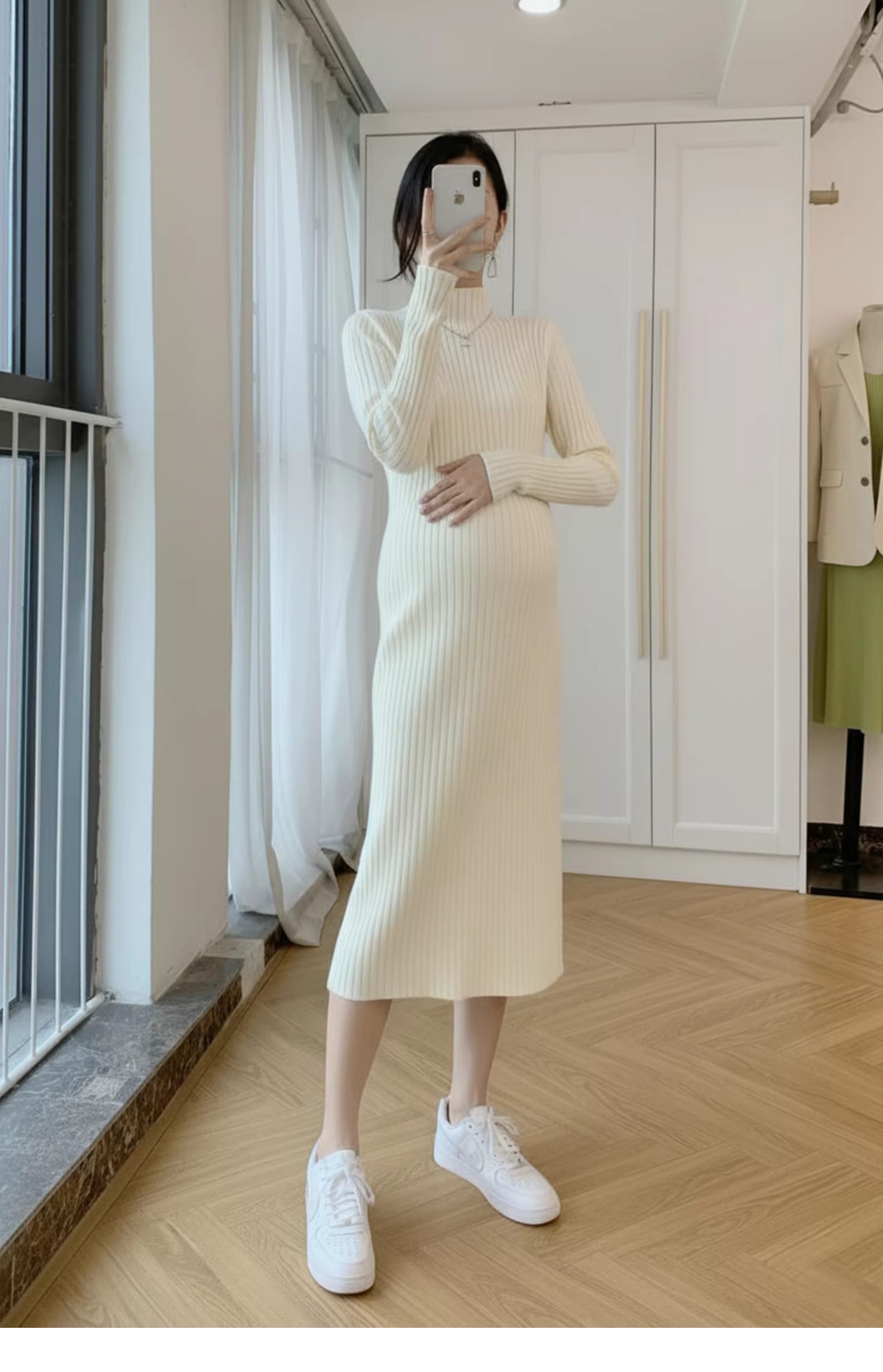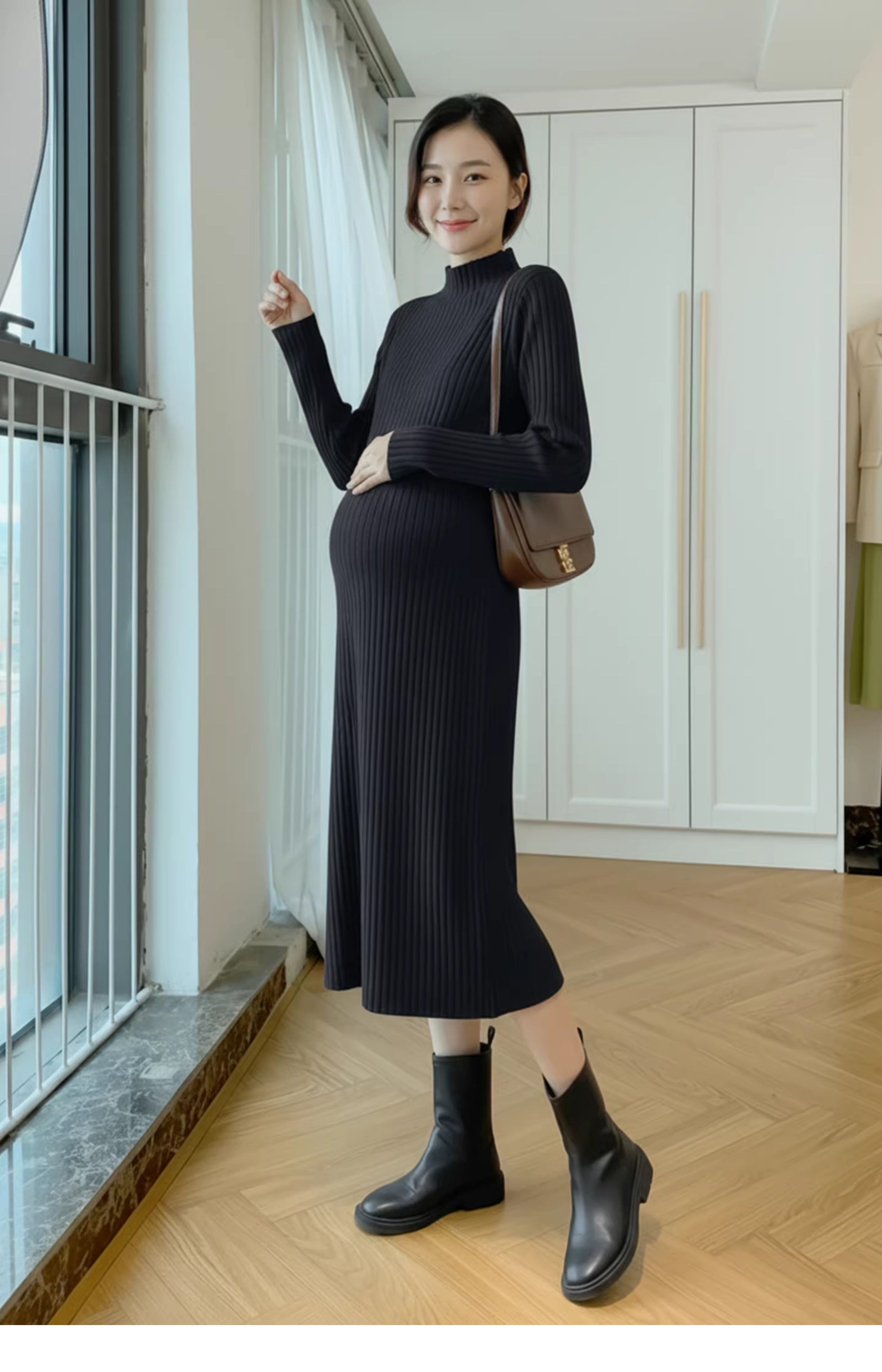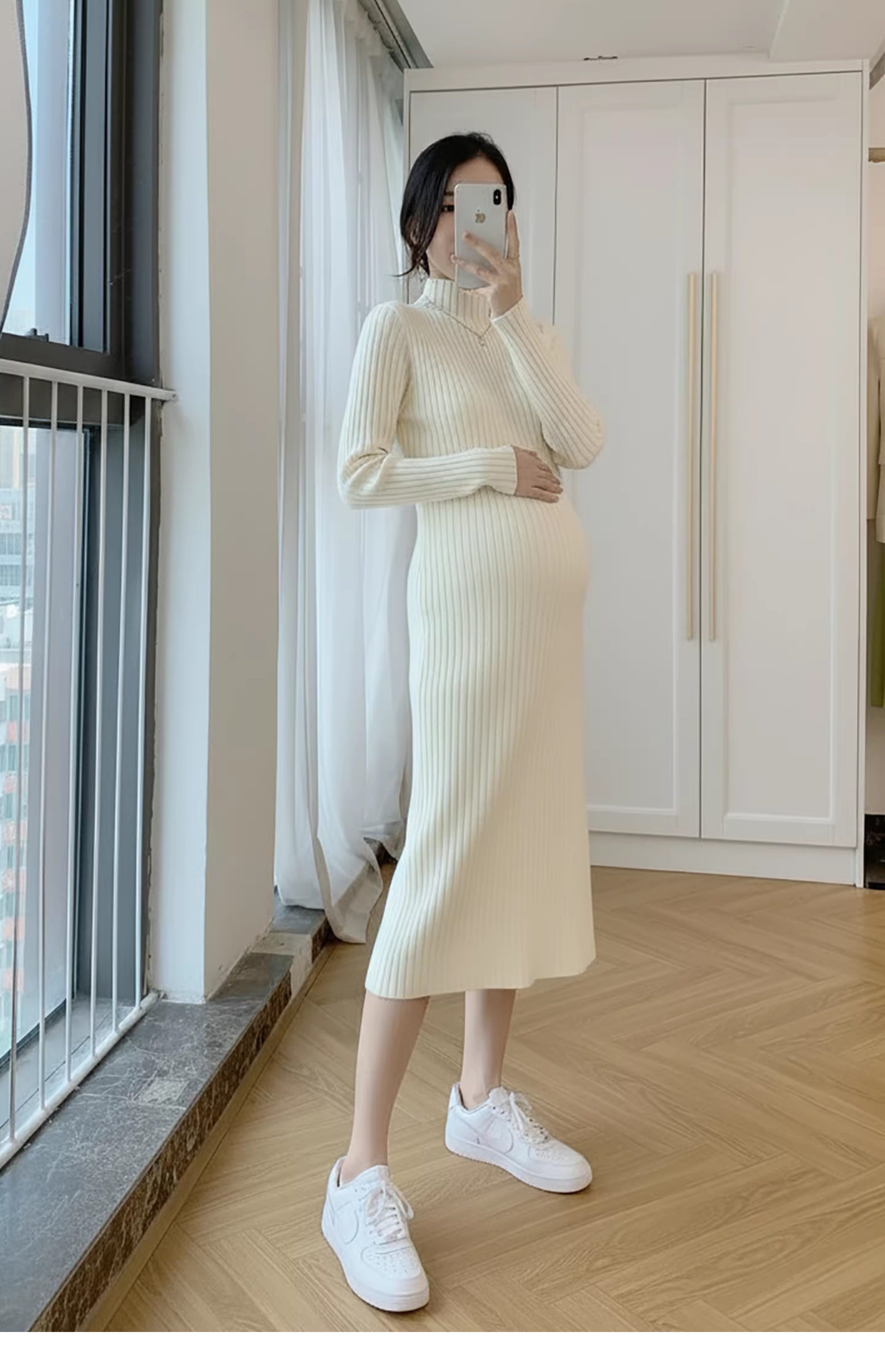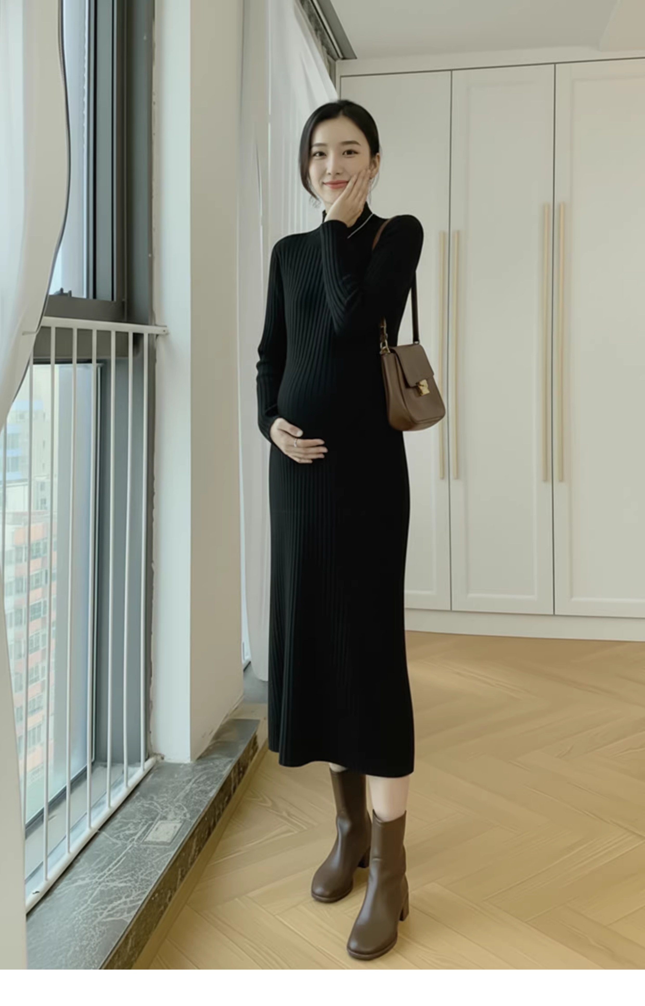 孕婦裝中長款打底加厚大碼毛衣裙穿搭女針織連衣裙秋冬季2025新款