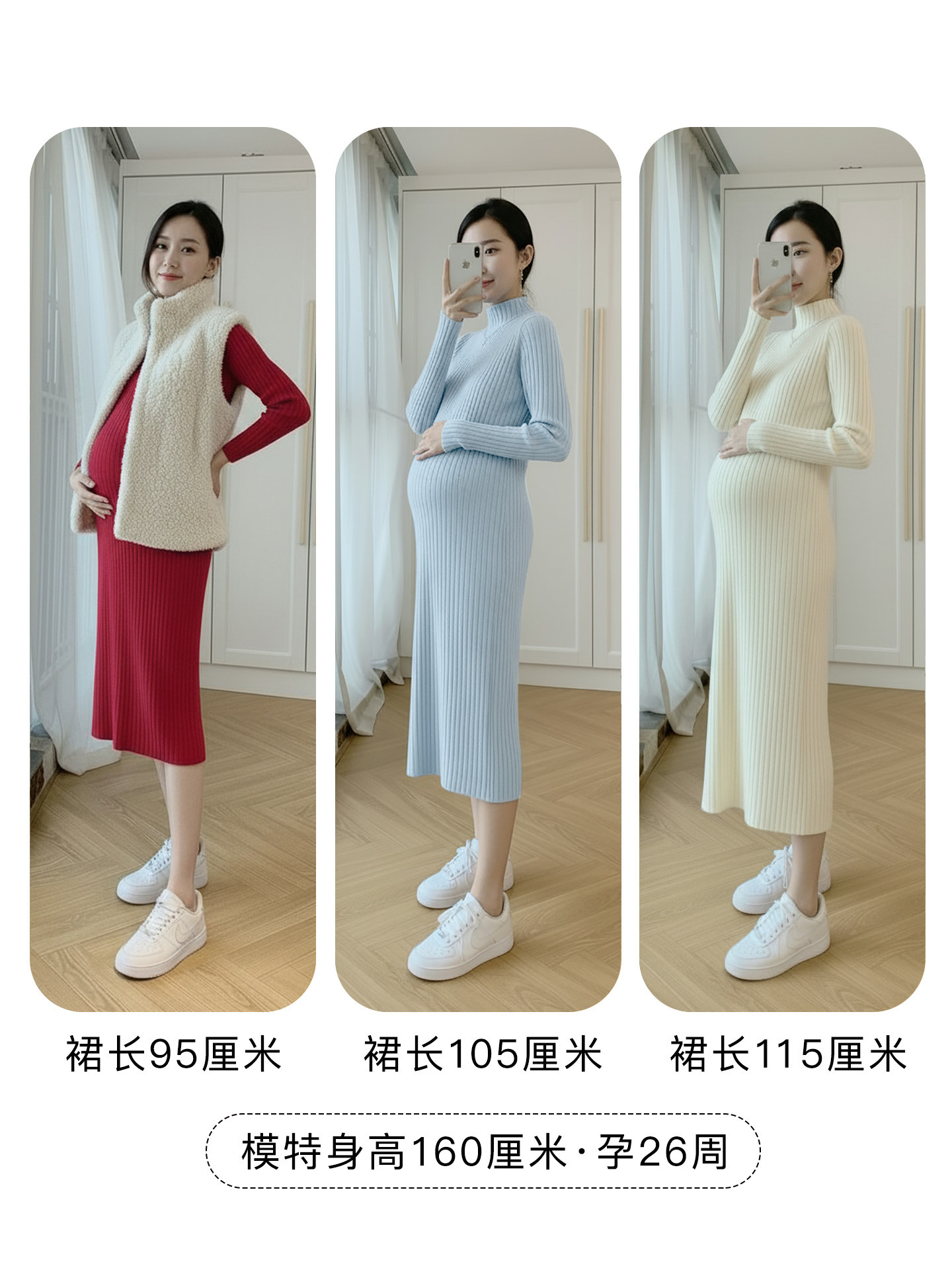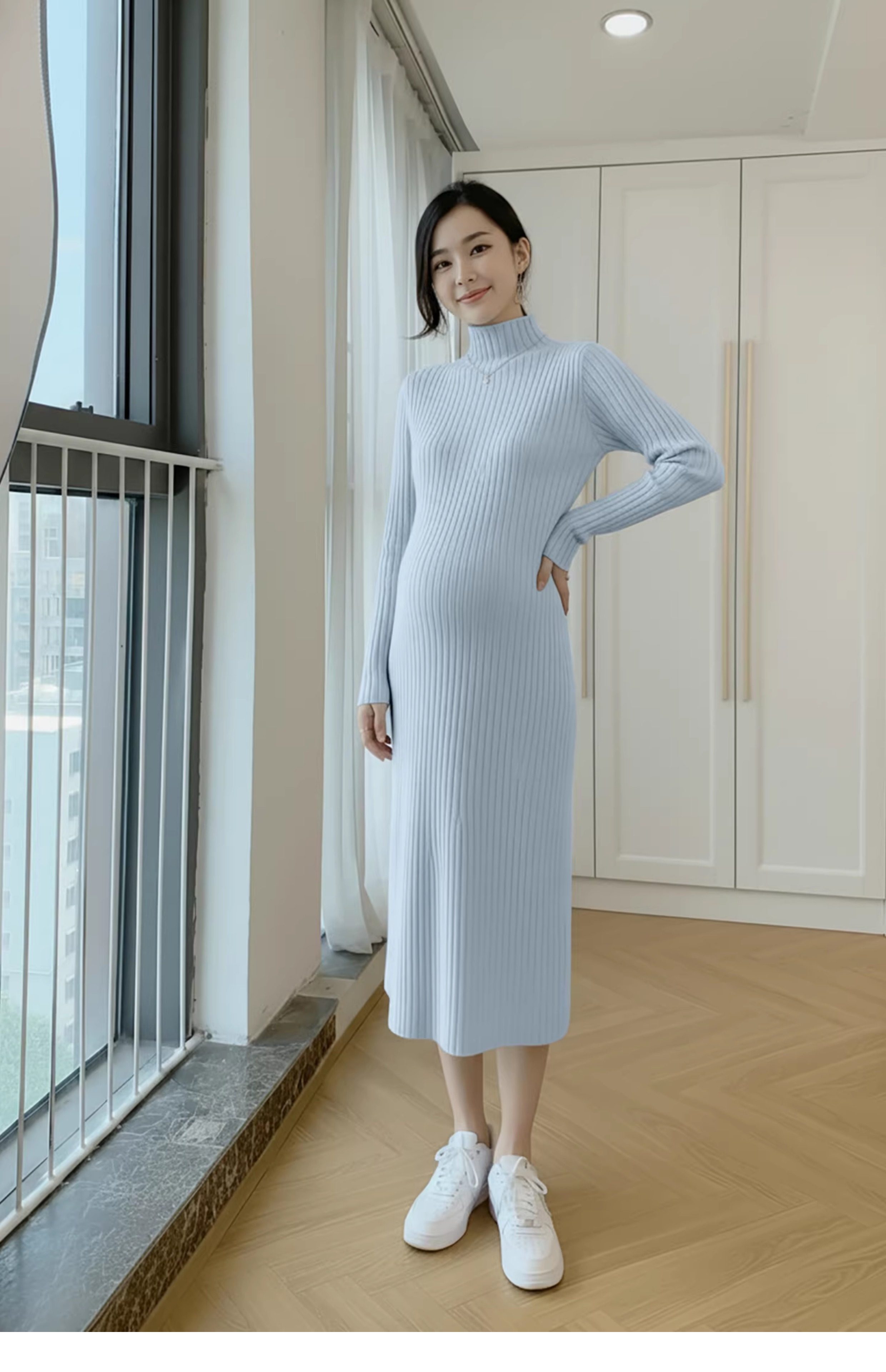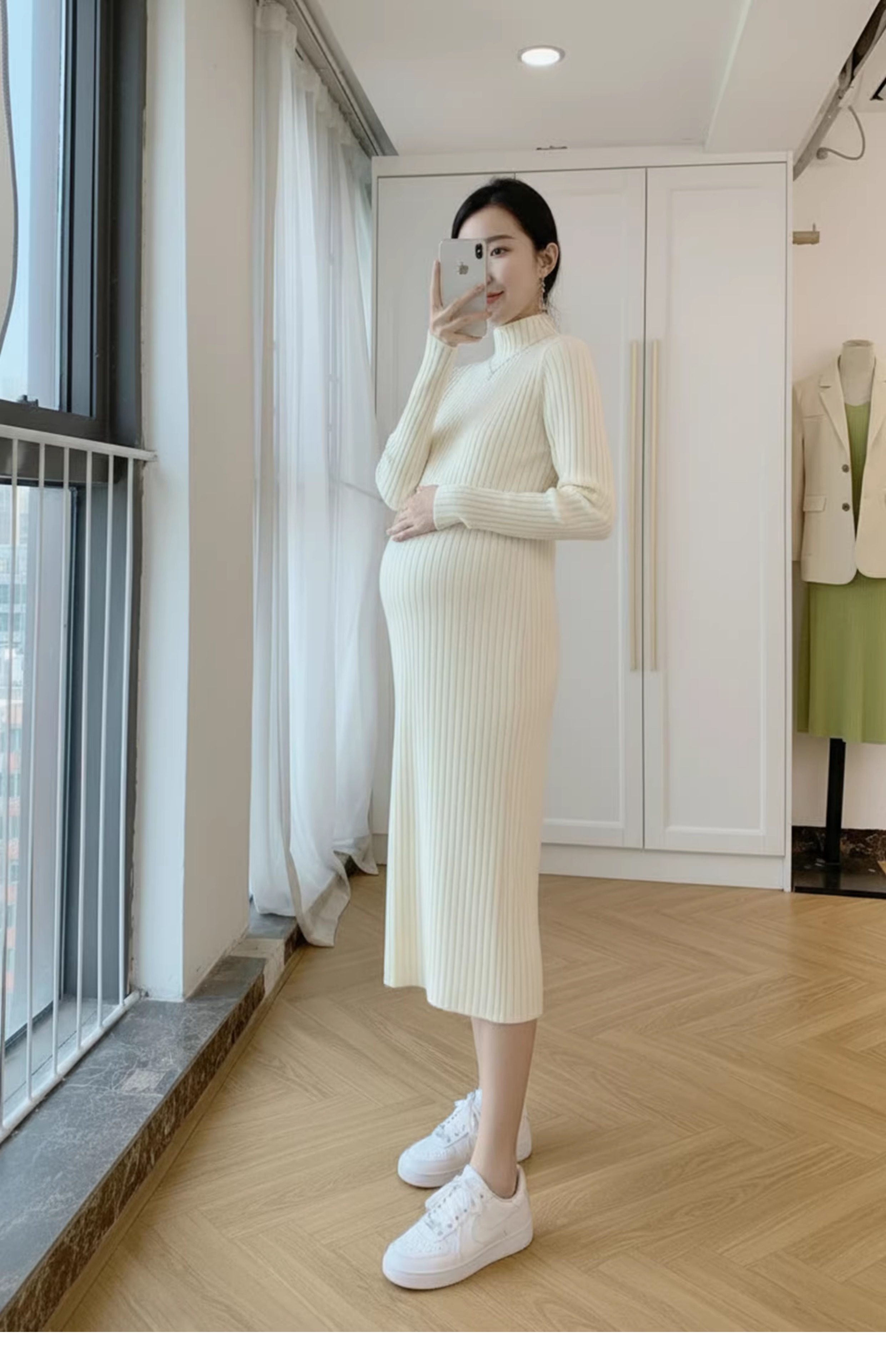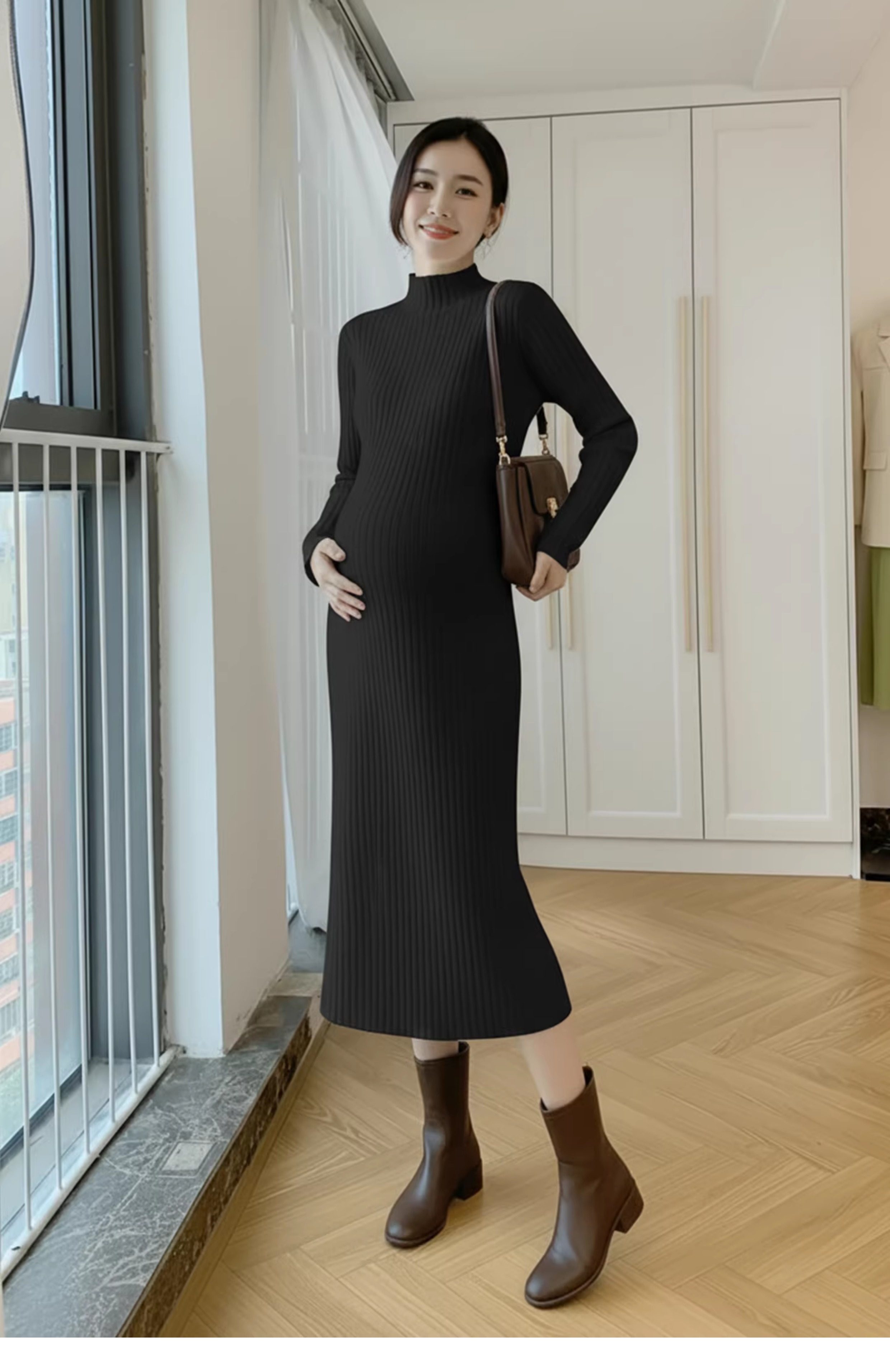 孕婦裝中長款打底加厚大碼毛衣裙穿搭女針織連衣裙秋冬季2025新款