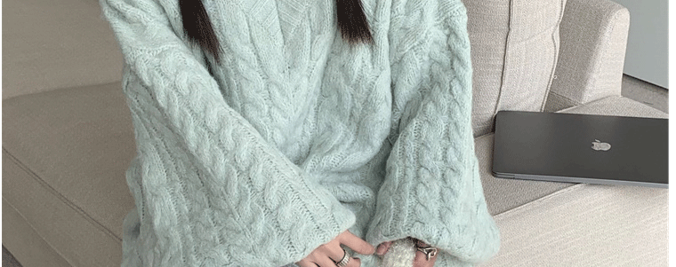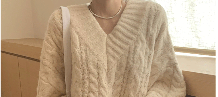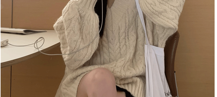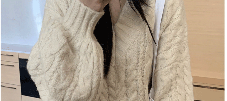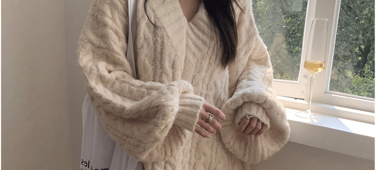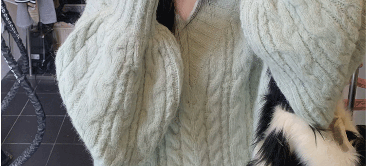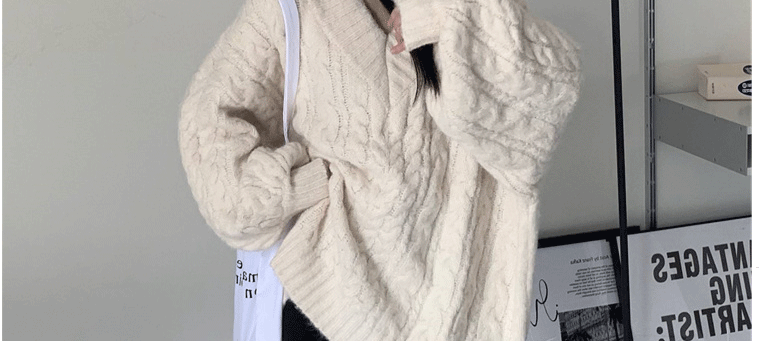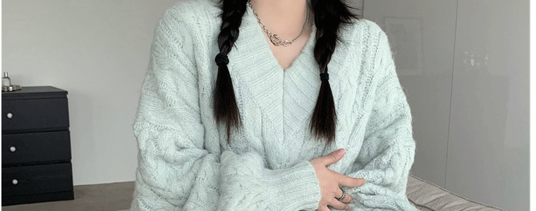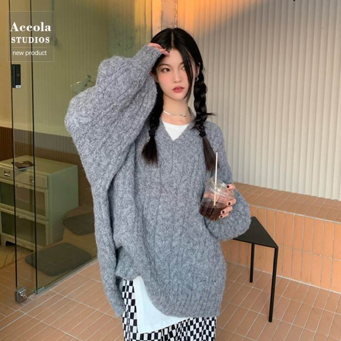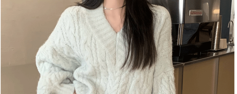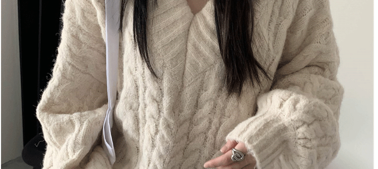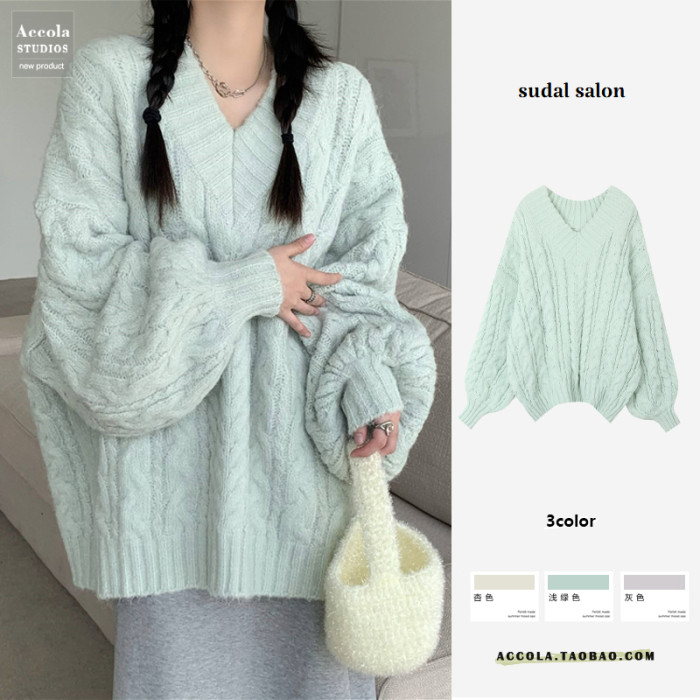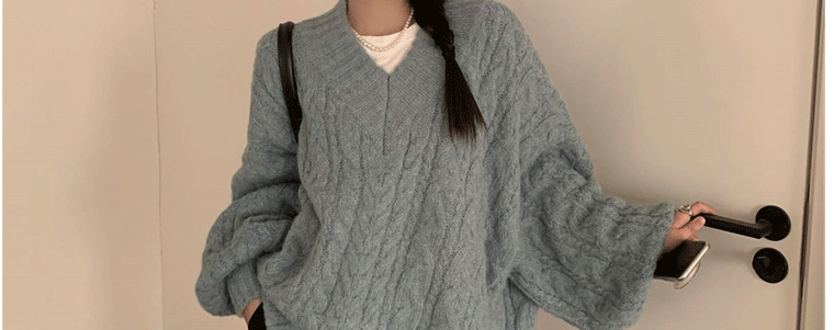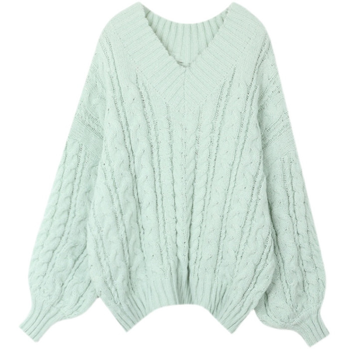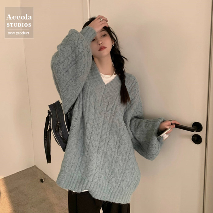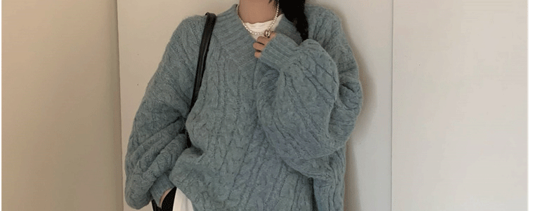 軟糯溫柔風V領寬松套頭加厚麻花毛衣秋冬季新款外穿針織衫上衣女