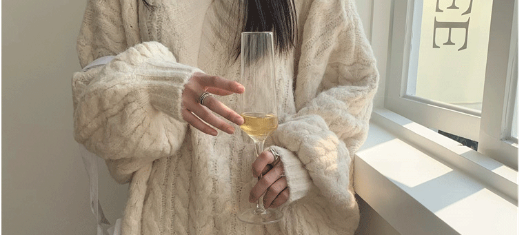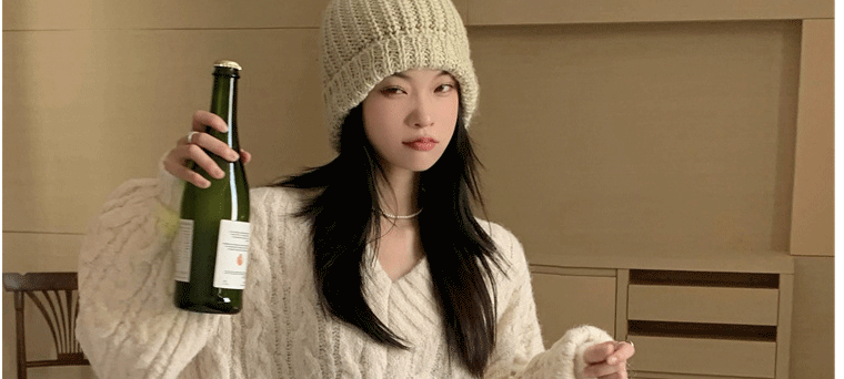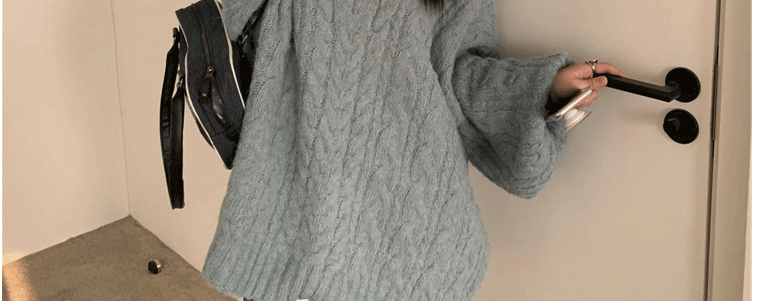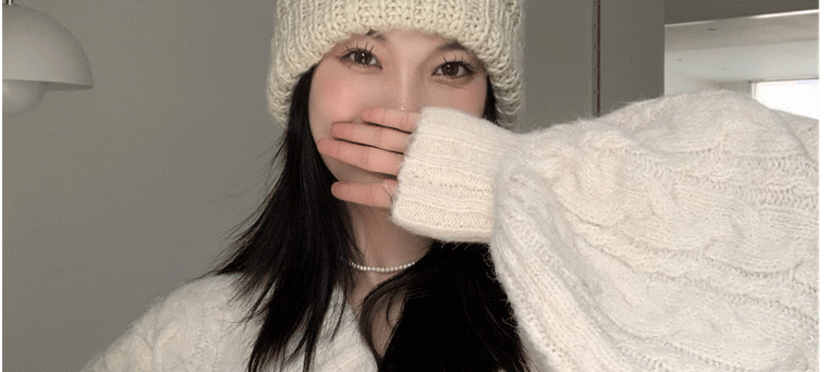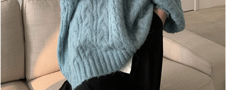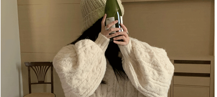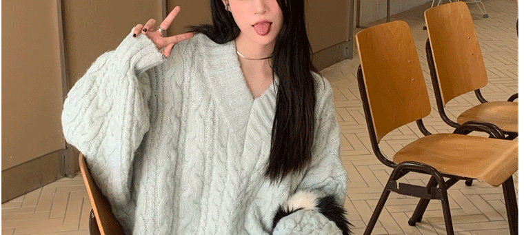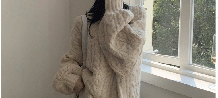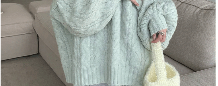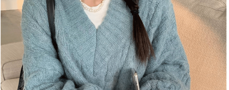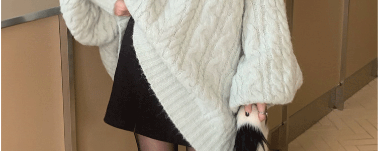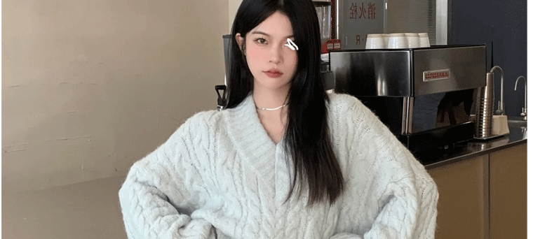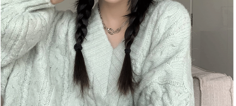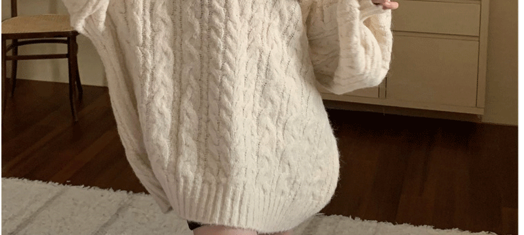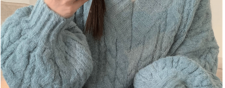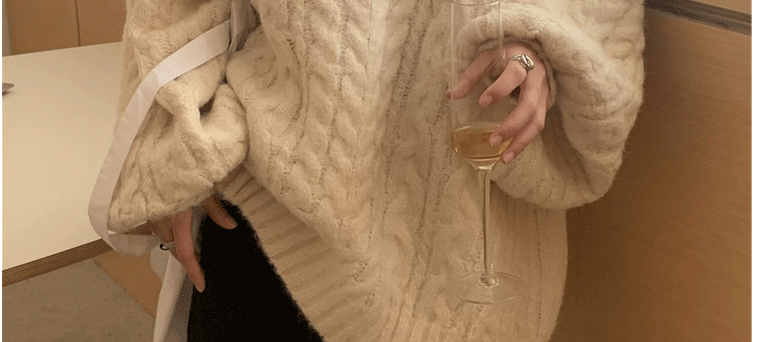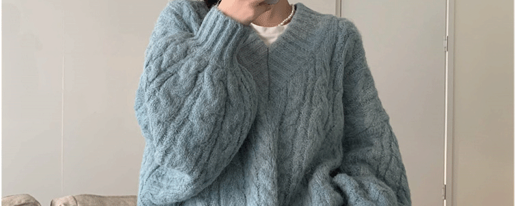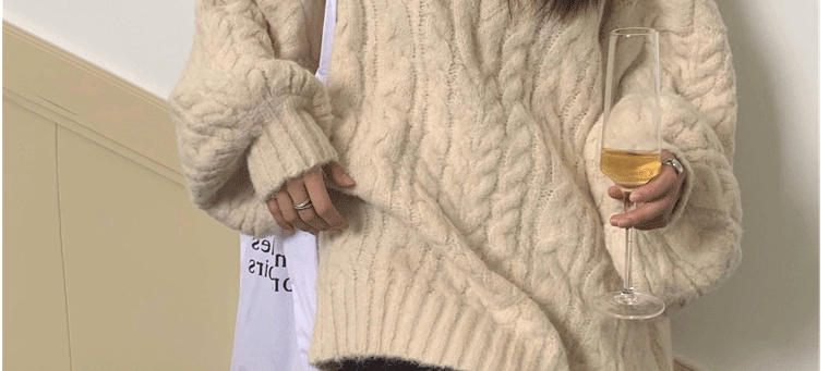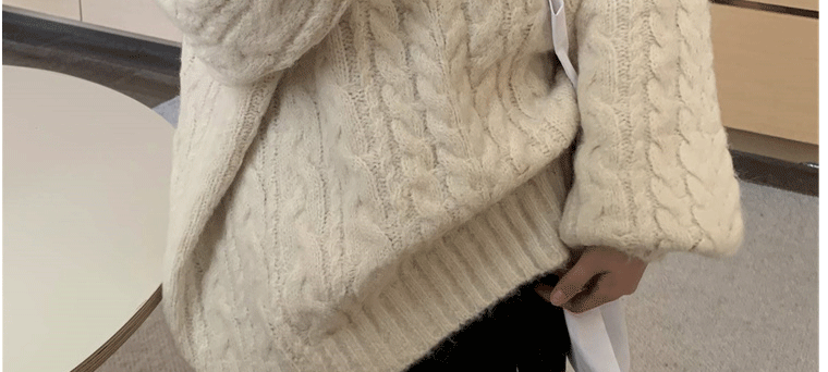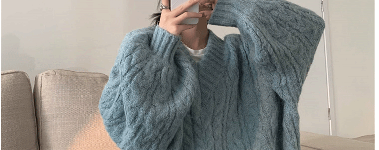 軟糯溫柔風V領寬松套頭加厚麻花毛衣秋冬季新款外穿針織衫上衣女