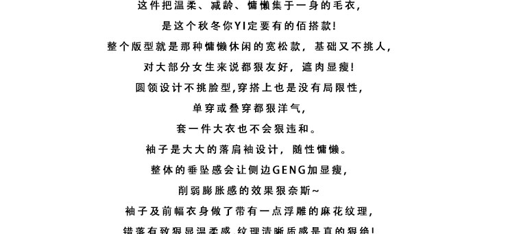 | 服裝版型 | 蝙蝠型 |