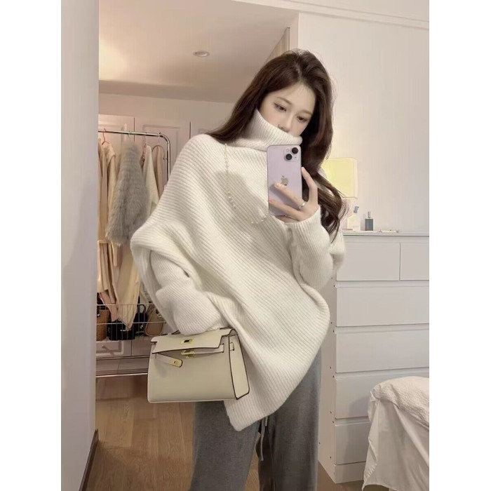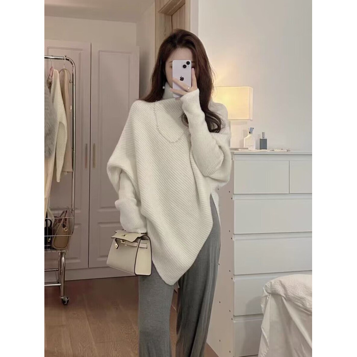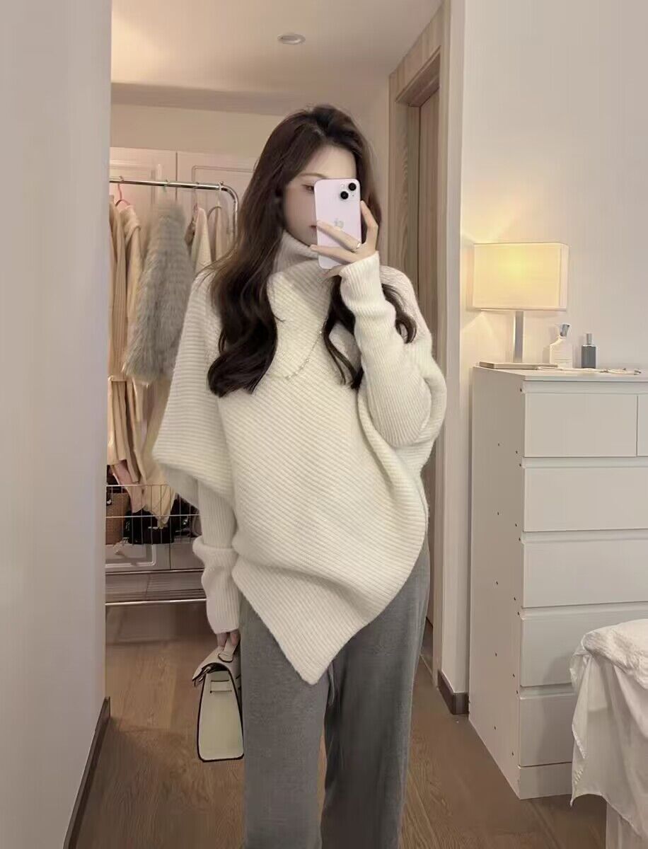 軟糯慵懶風不規則設計感高領毛衣女秋冬寬松小衆針織衫加厚上衣
