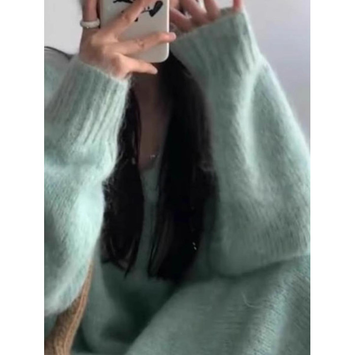 慵懶風寬松長款毛衣裙女秋冬2024新款法式針織打底連衣裙過膝加厚