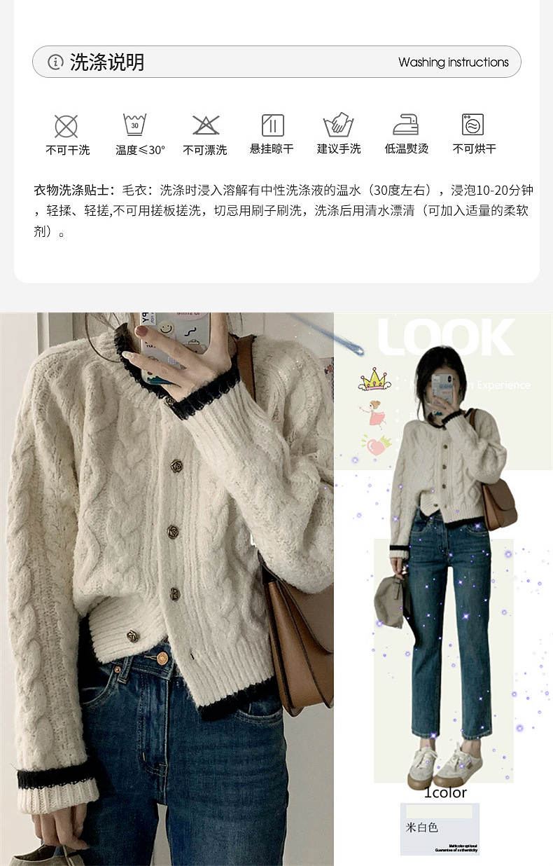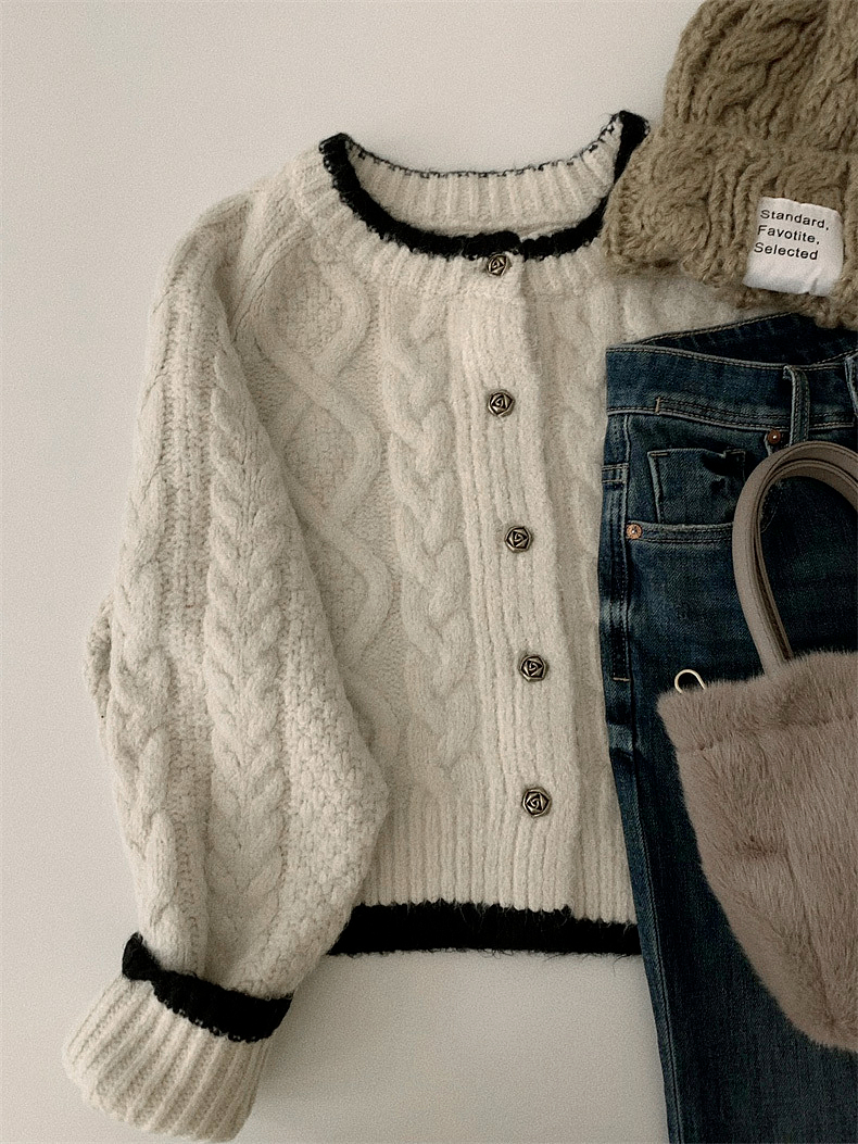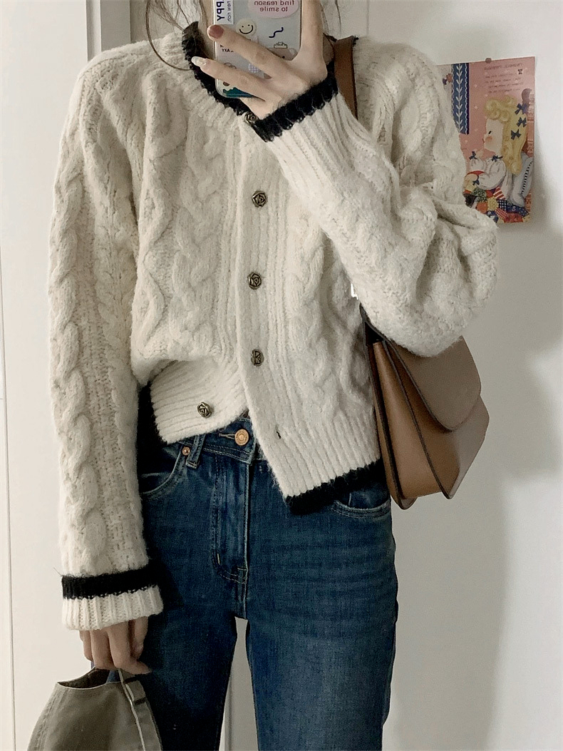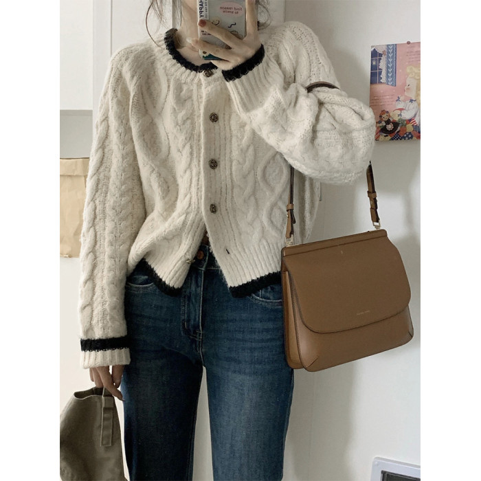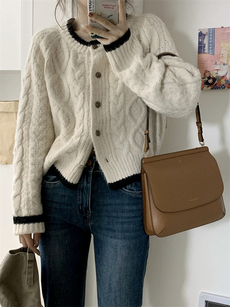 白色短款加厚毛衣秋冬女2025新款針織外套慵懶風松弛感費爾島毛衫