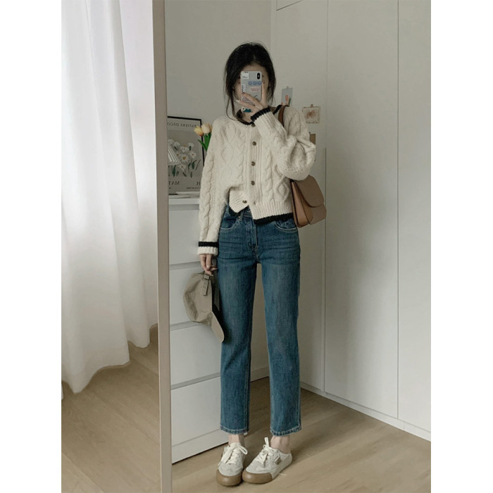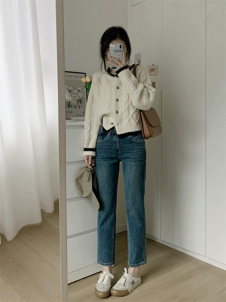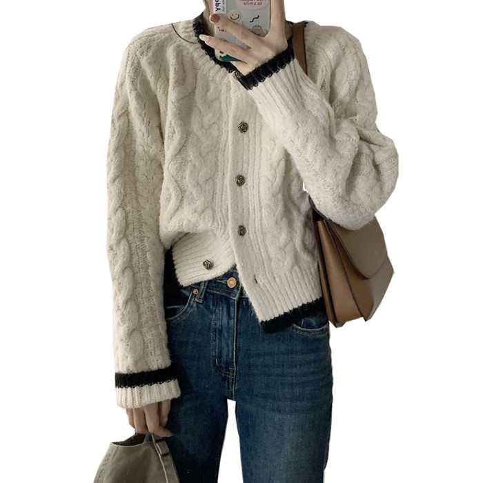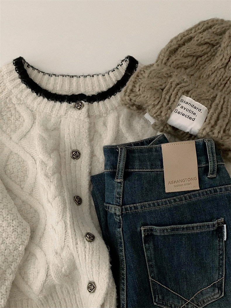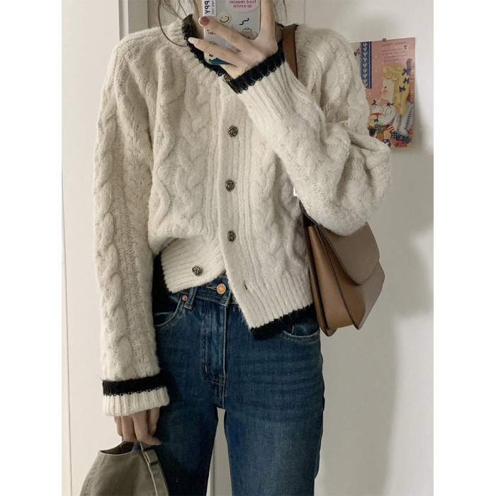 白色短款加厚毛衣秋冬女2025新款針織外套慵懶風松弛感費爾島毛衫