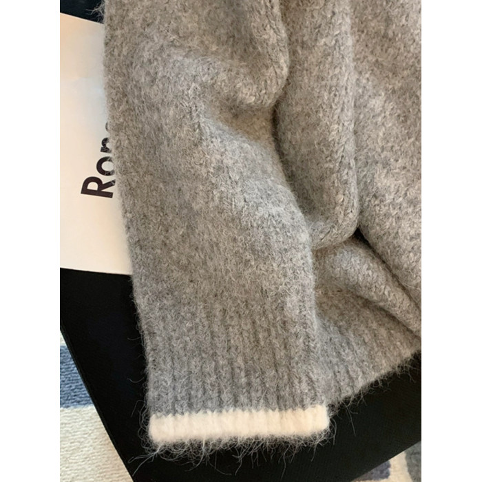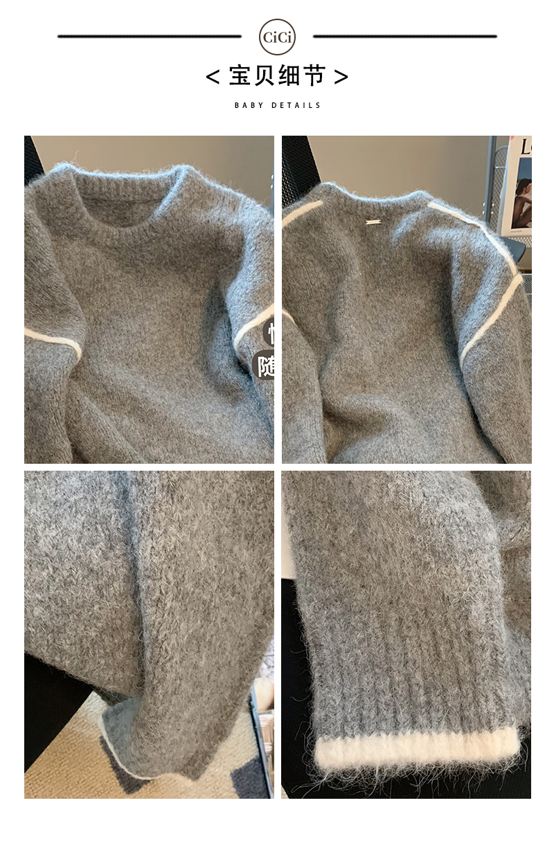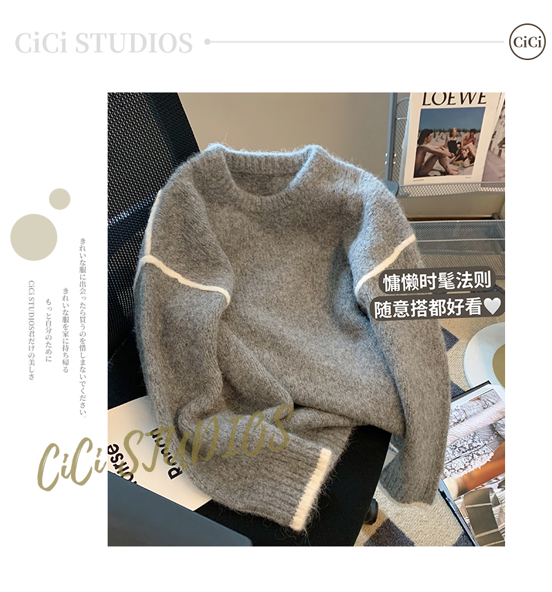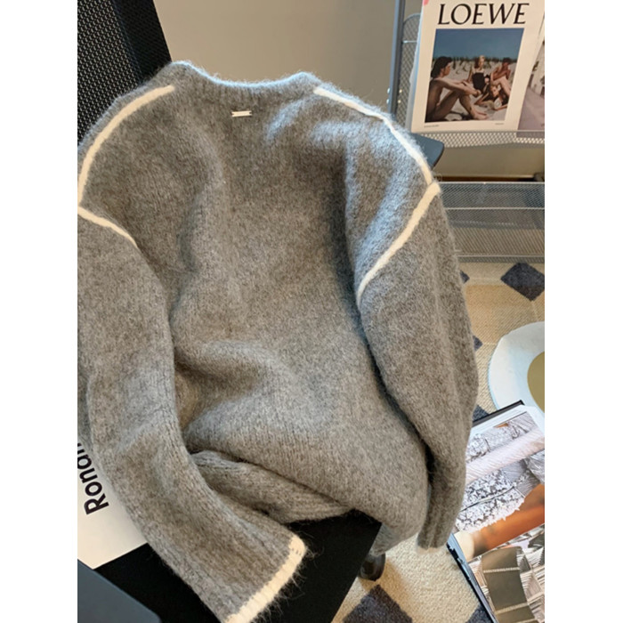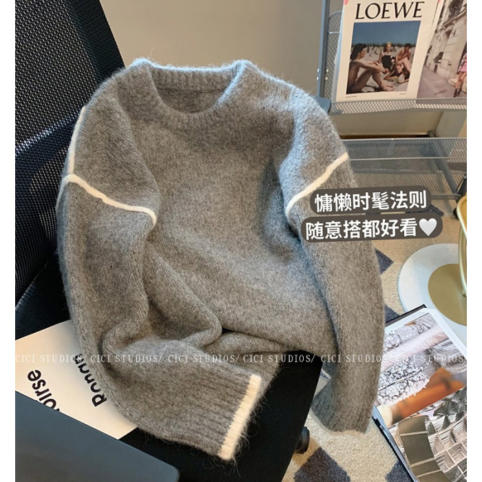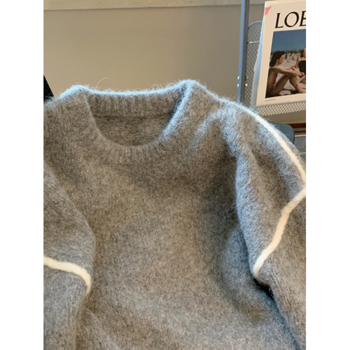 韓系復古灰色毛衣女秋冬2023新款小衆軟糯慵懶風寬松針織打底上衣