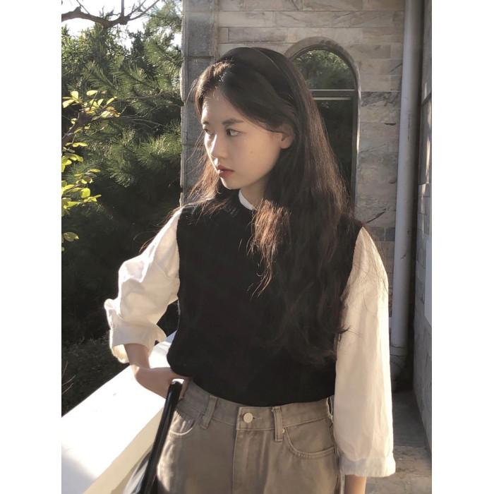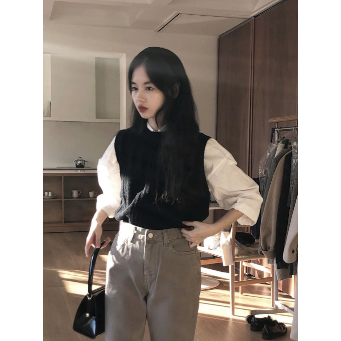 韓版小衆圓領麻花針織馬甲背心女2025秋季復古學院風百搭套頭毛衣