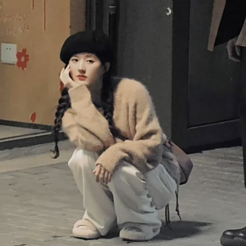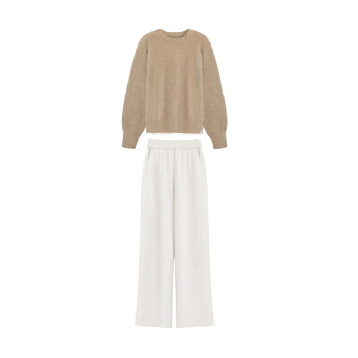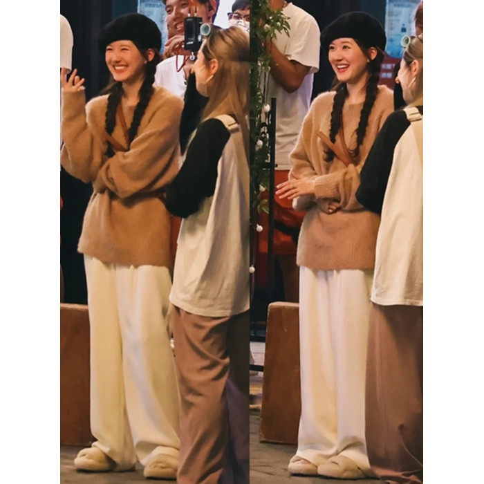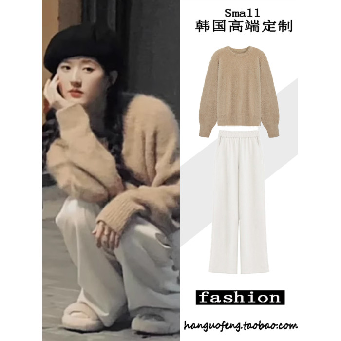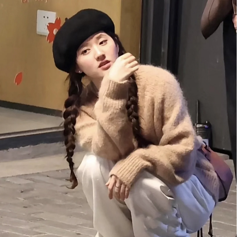 媮媮藏不住趙露思桑稚同款水貂絨套頭毛衣女裝秋冬慵懶風上衣套裝