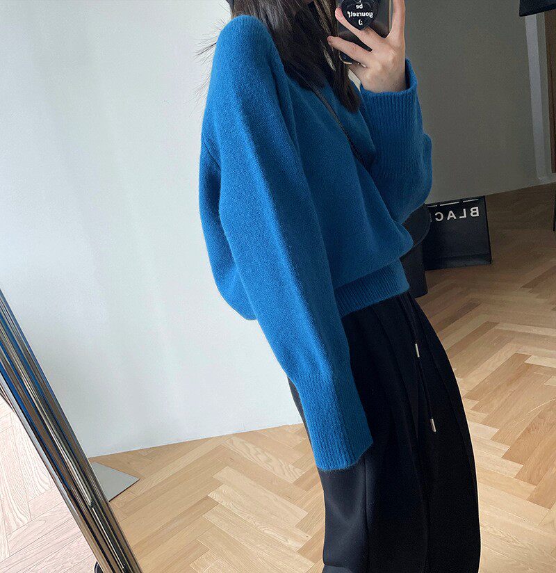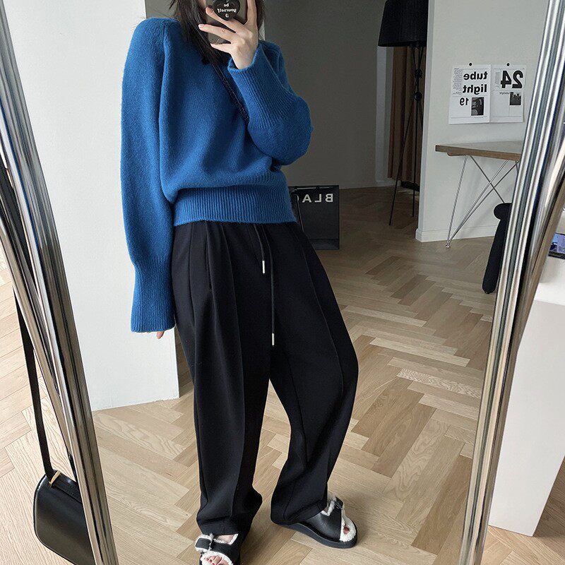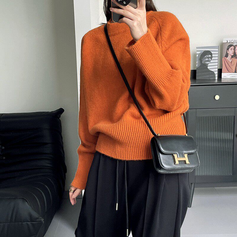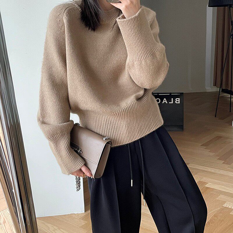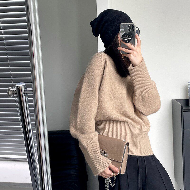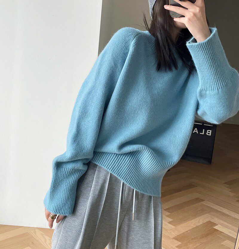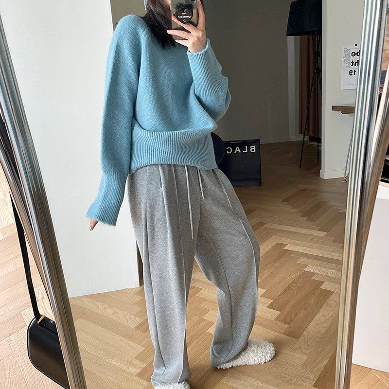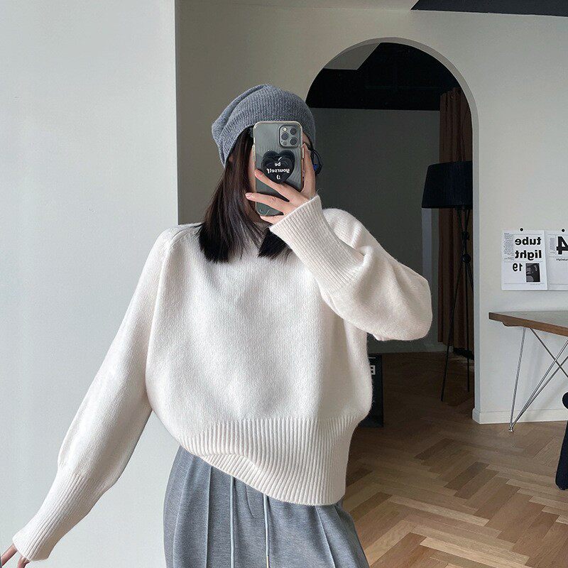 韓版簡約白色圓領套頭毛衣女加厚保暖2025春秋新款純色打底針織衫