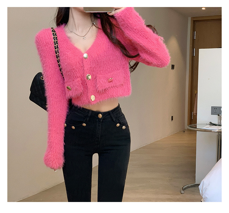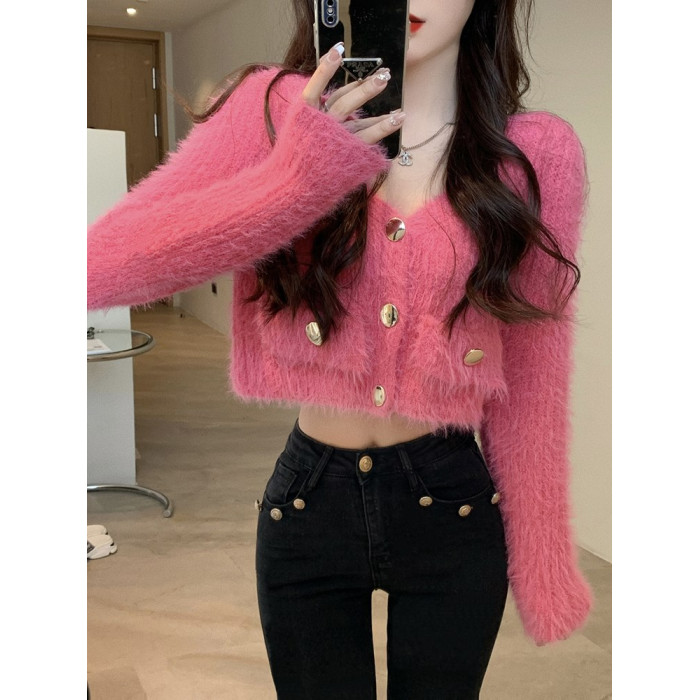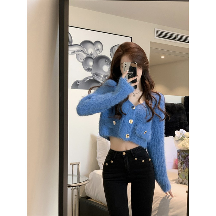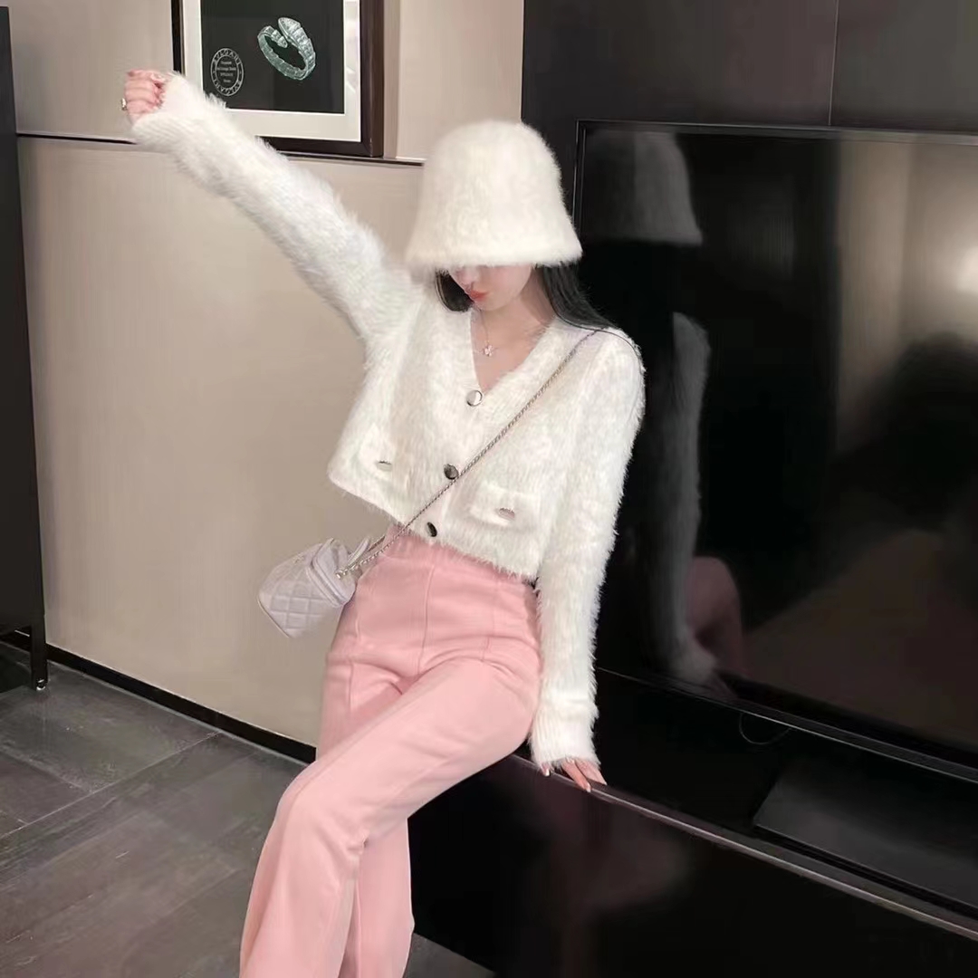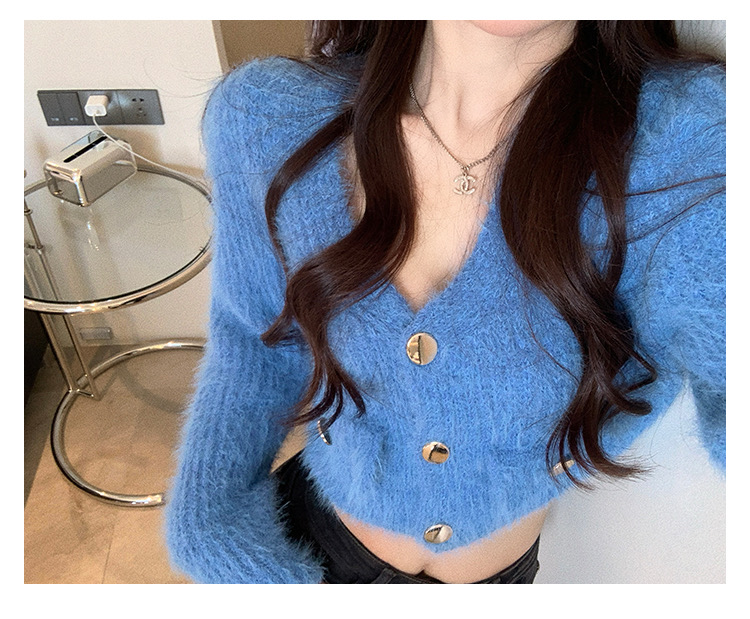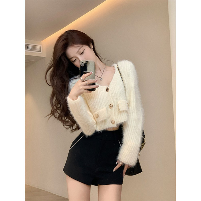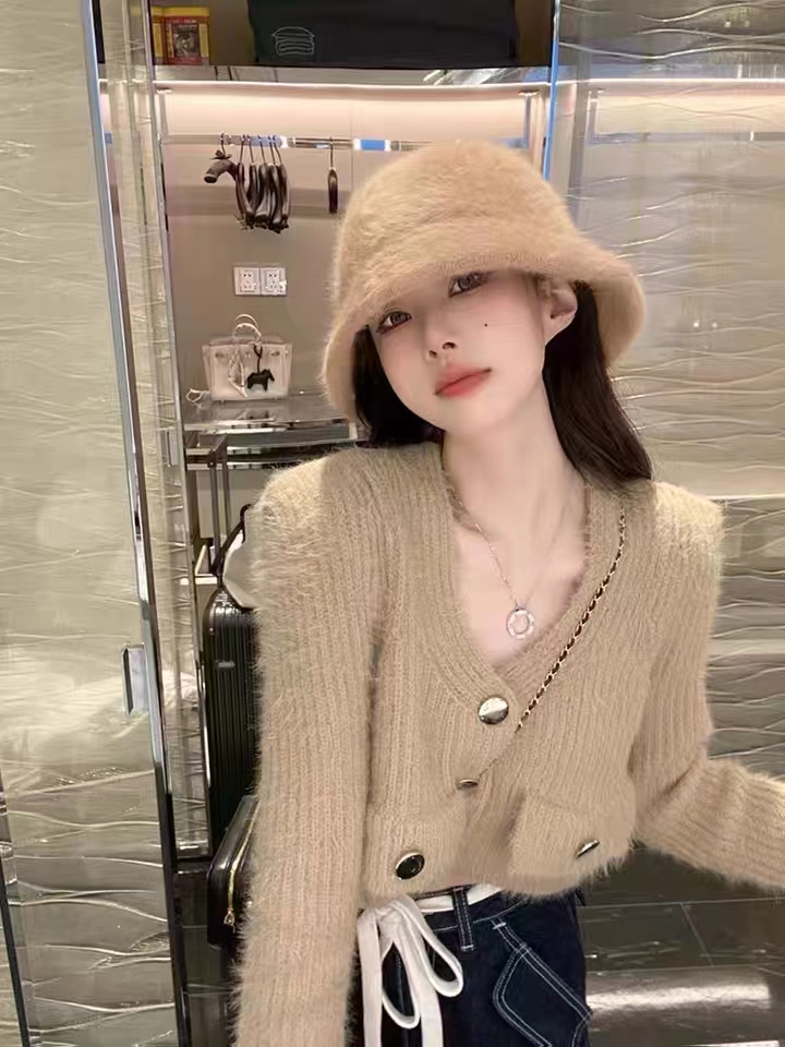 慵懶風溫柔v領毛衣針織開衫女春秋氣質高級感小個子長袖短款上衣