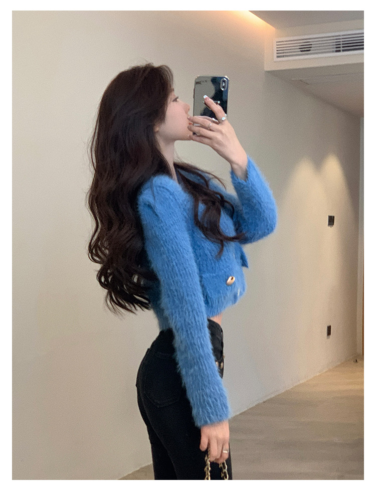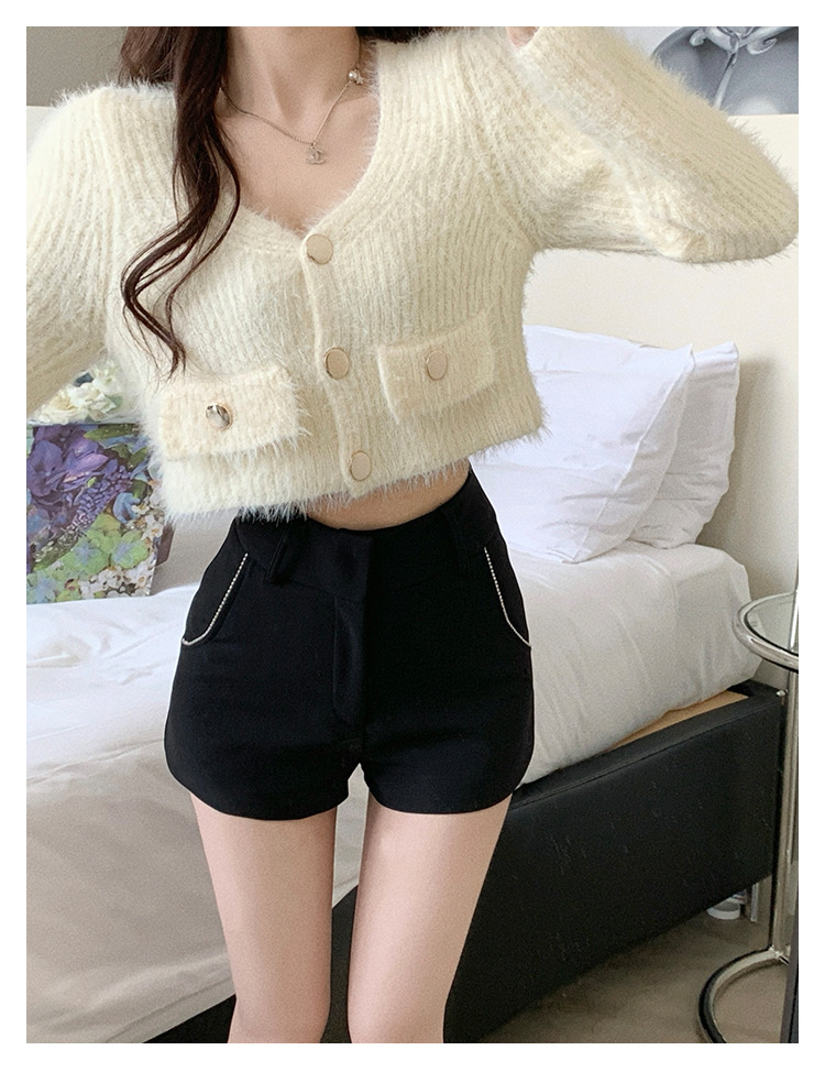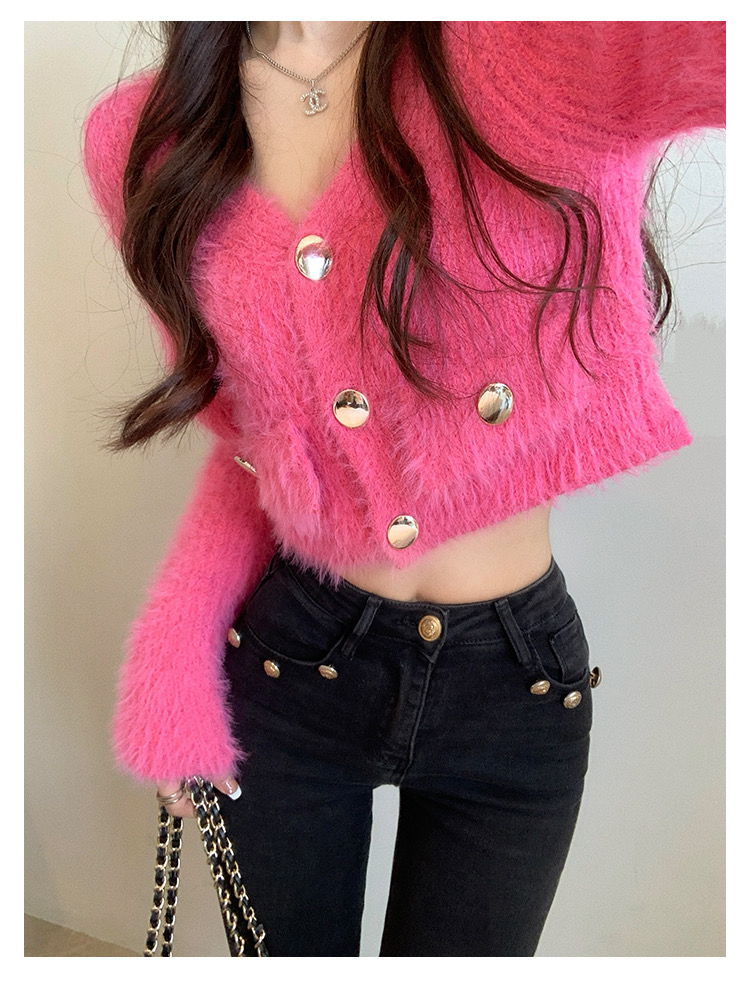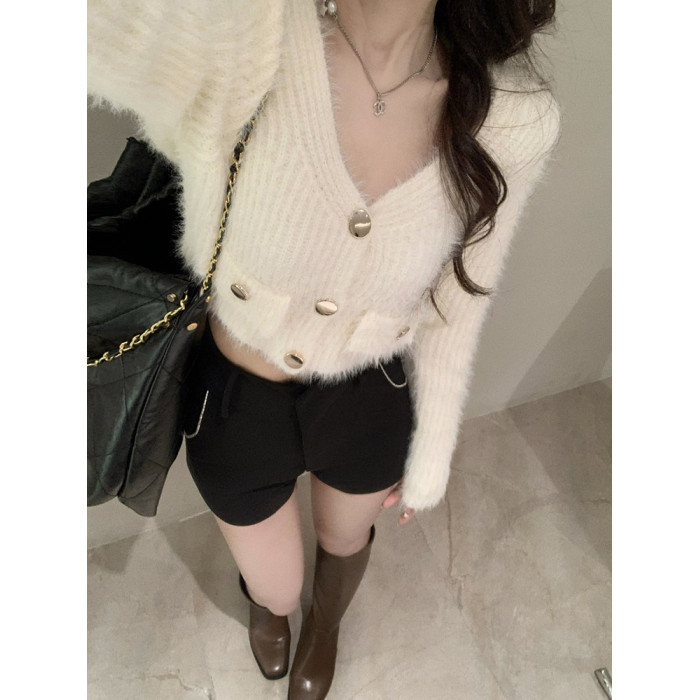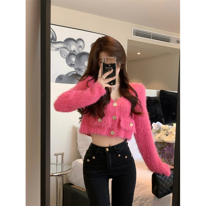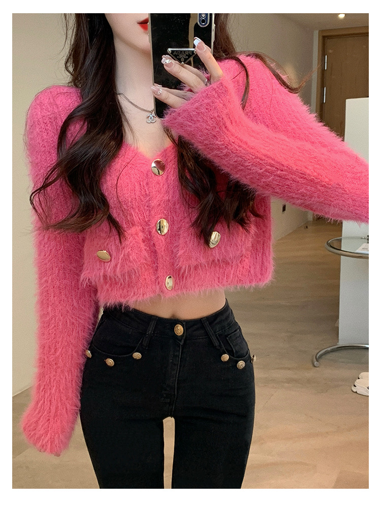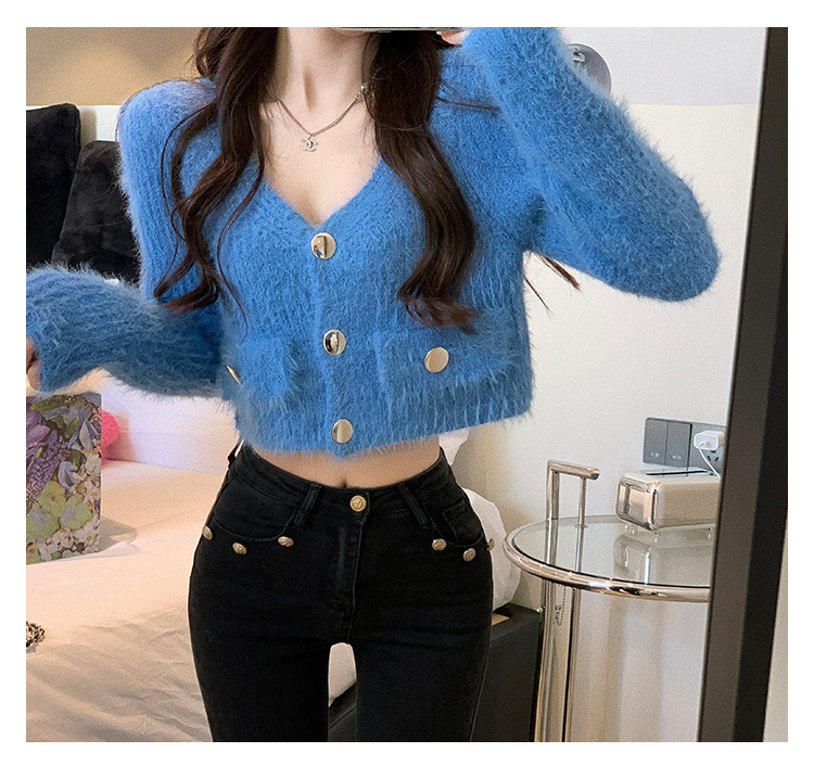 慵懶風溫柔v領毛衣針織開衫女春秋氣質高級感小個子長袖短款上衣