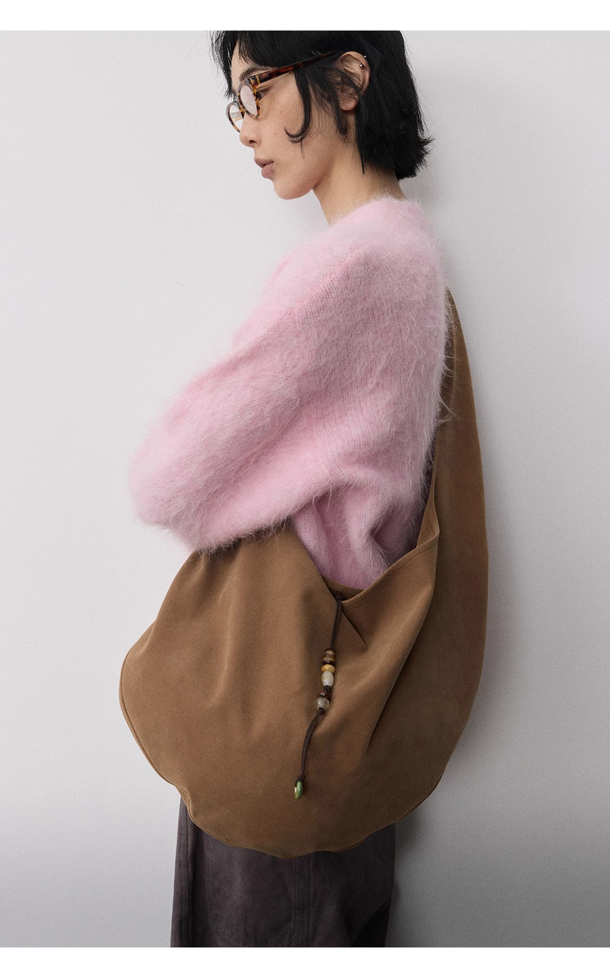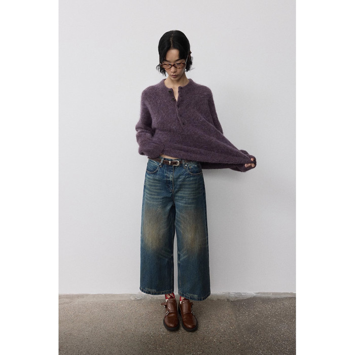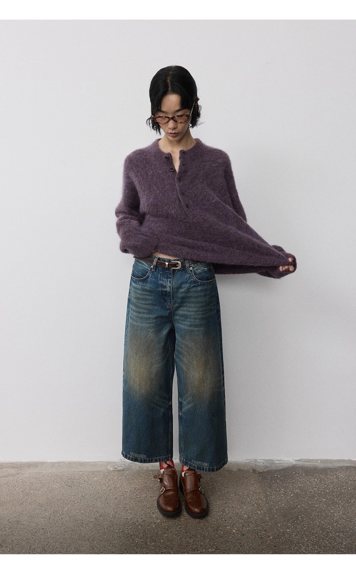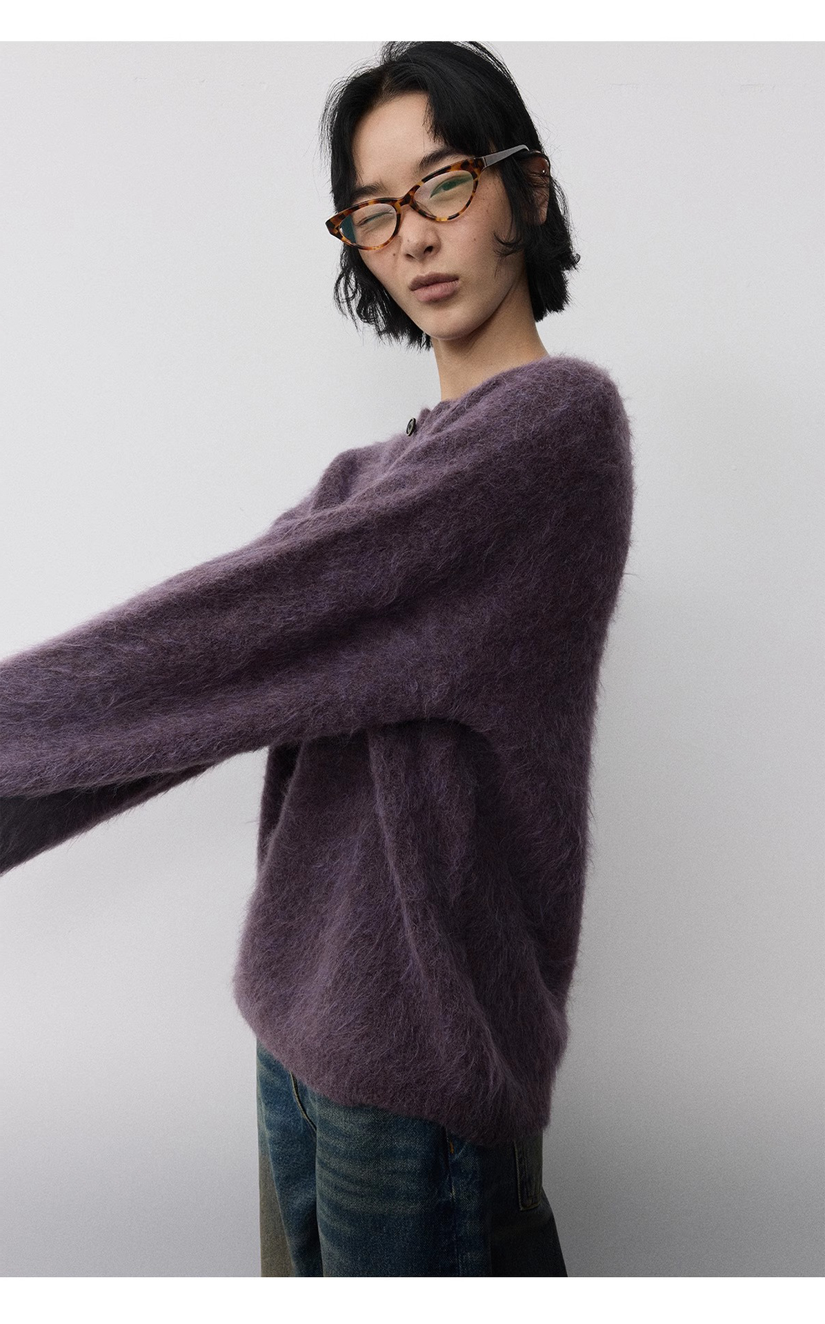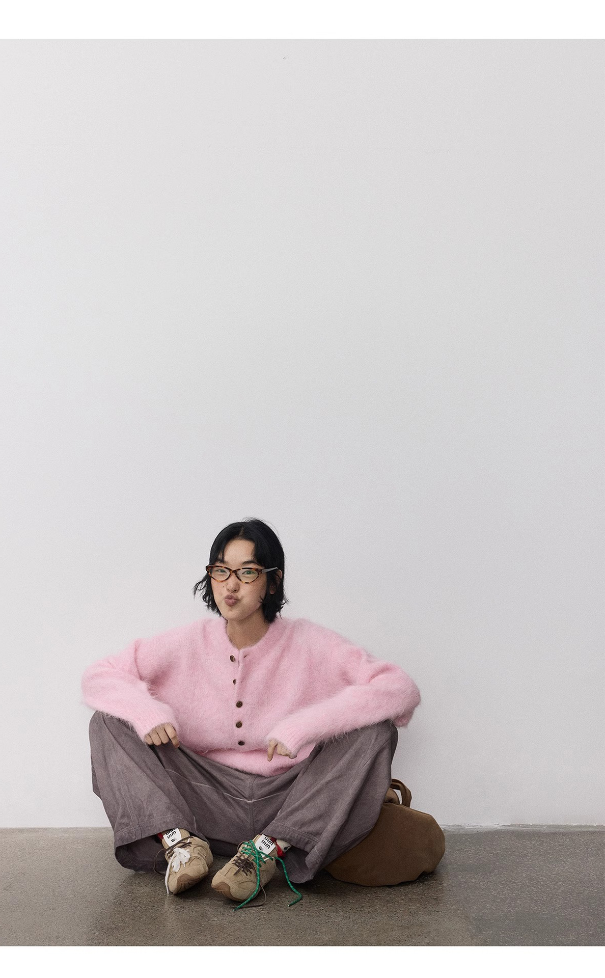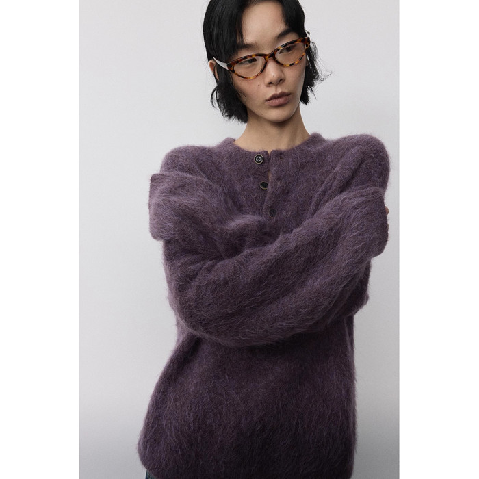 高級感粉色亨利領水貂絨毛衣女外穿針織衫上衣女新款慵懶風套頭