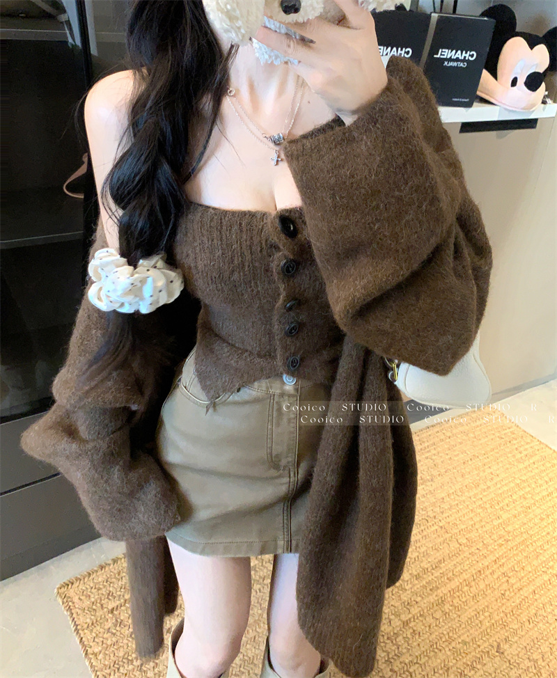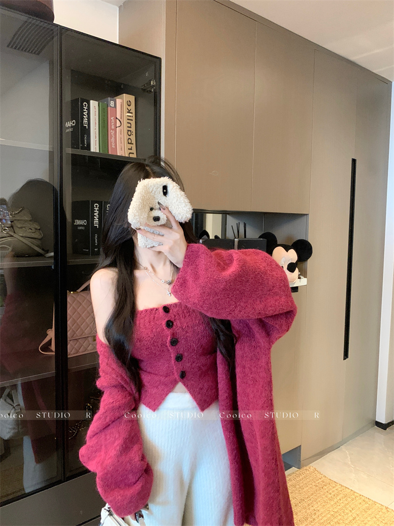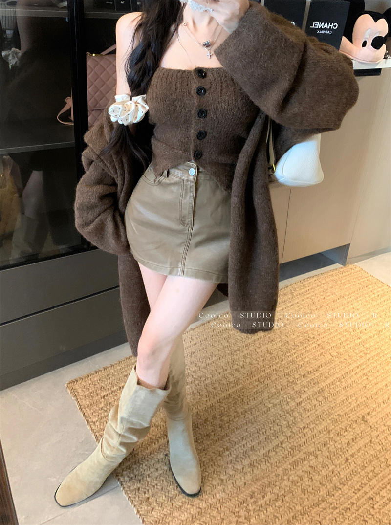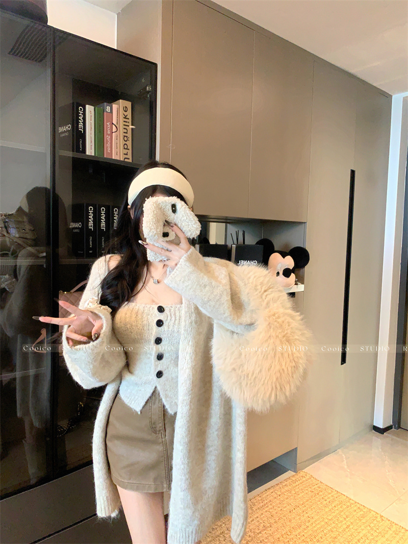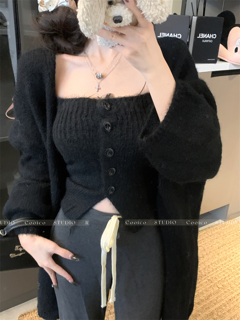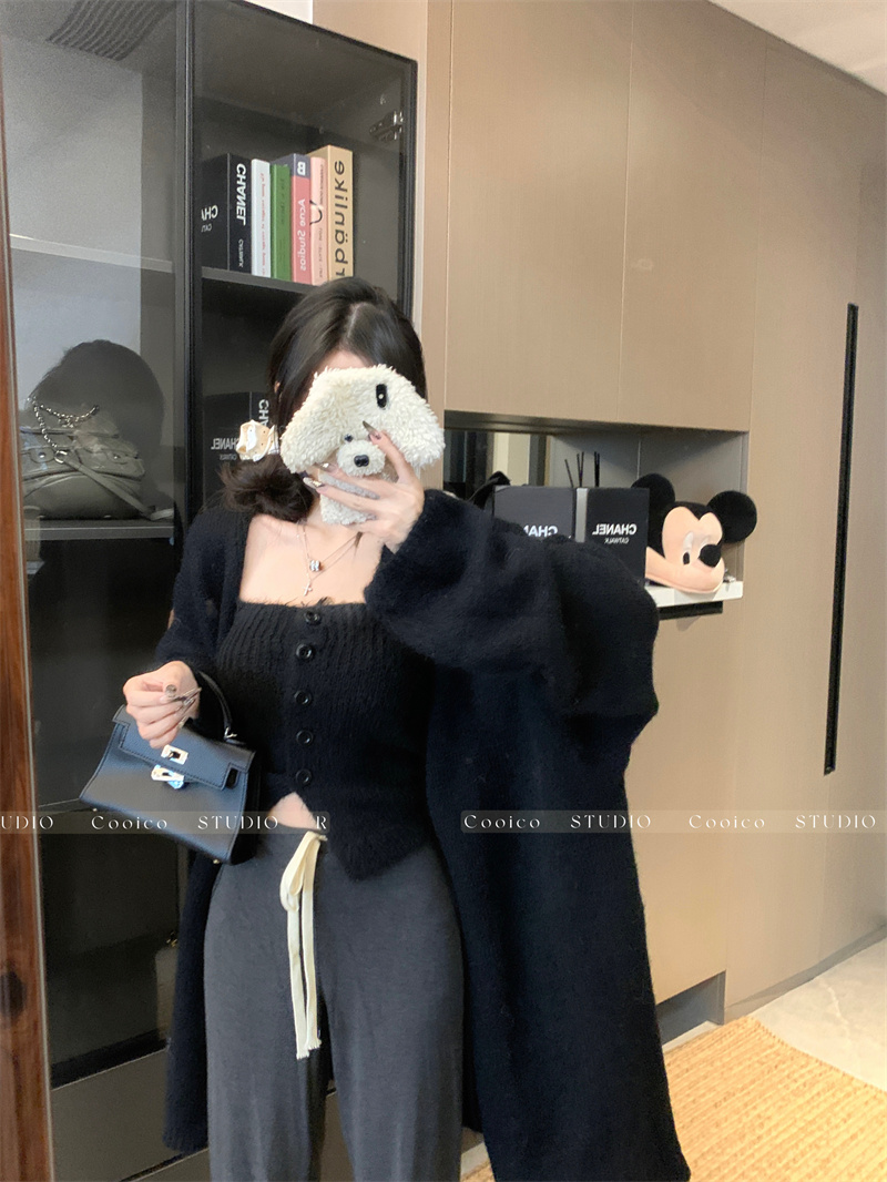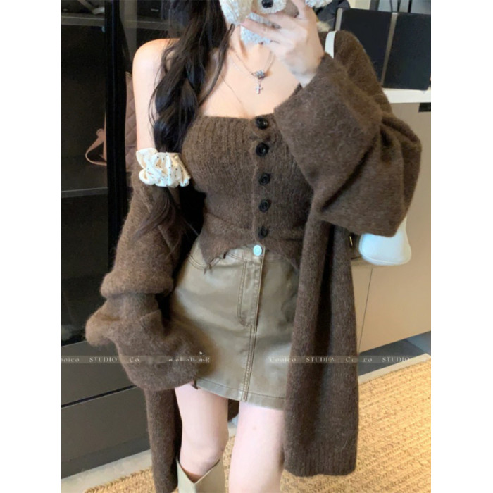 韓系慵懶風毛衣外套女秋季抹胸背心兩件套超好看寬松針織開衫上衣