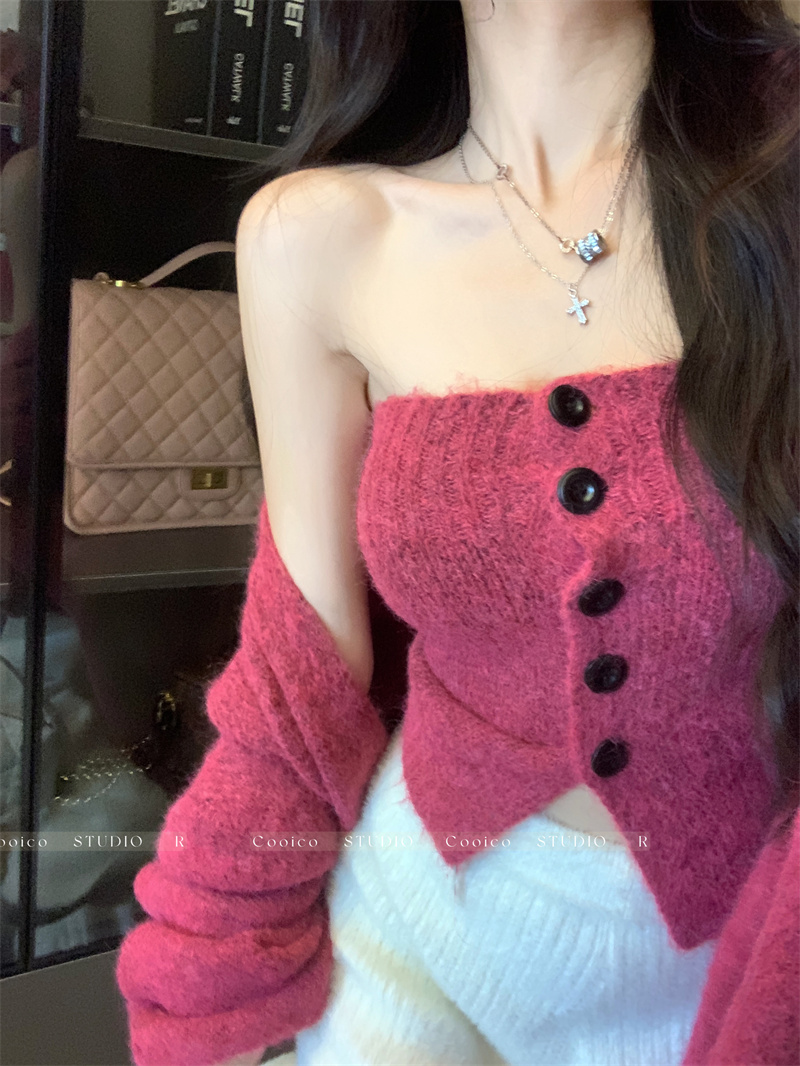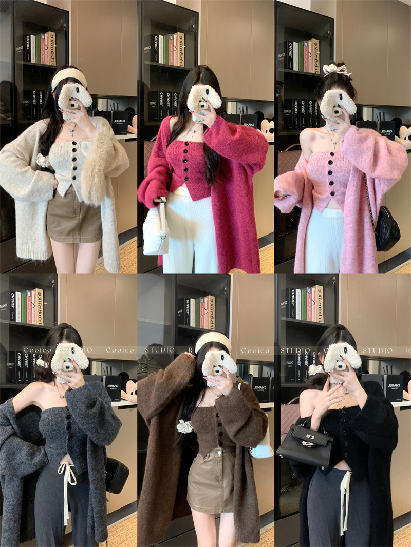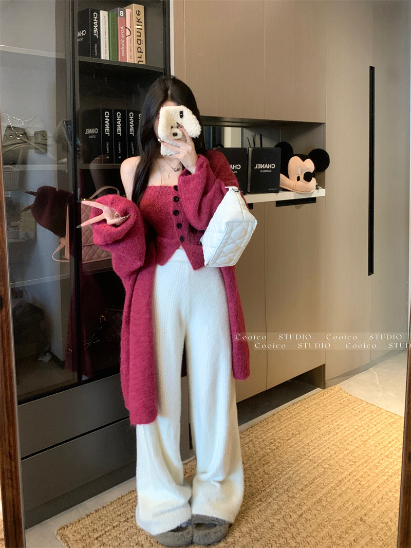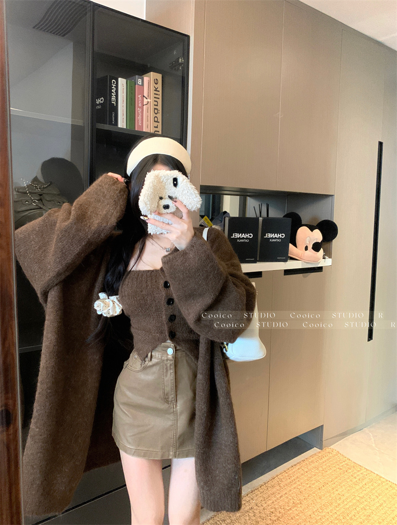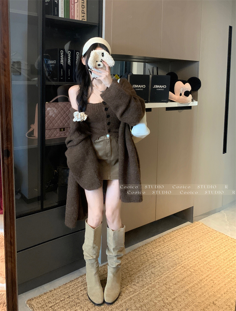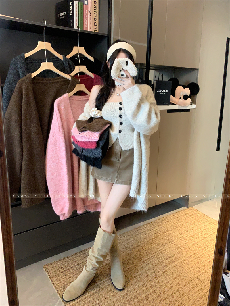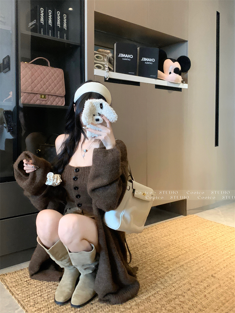 韓系慵懶風毛衣外套女秋季抹胸背心兩件套超好看寬松針織開衫上衣