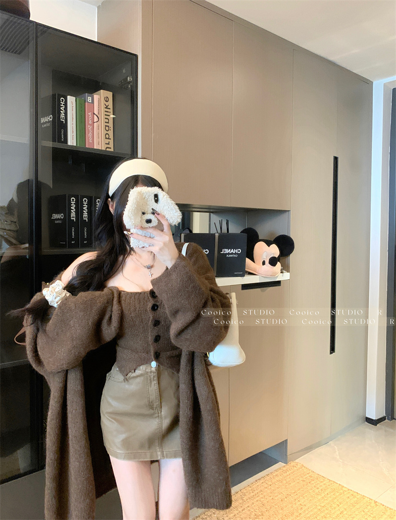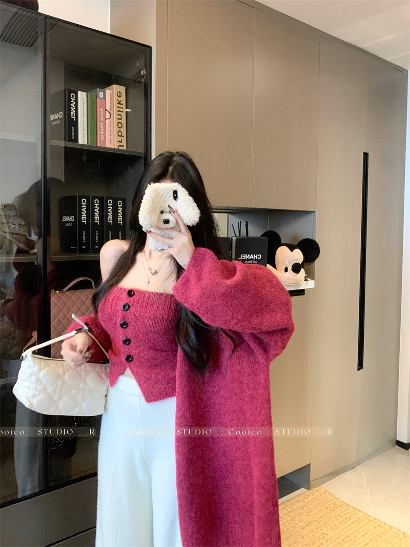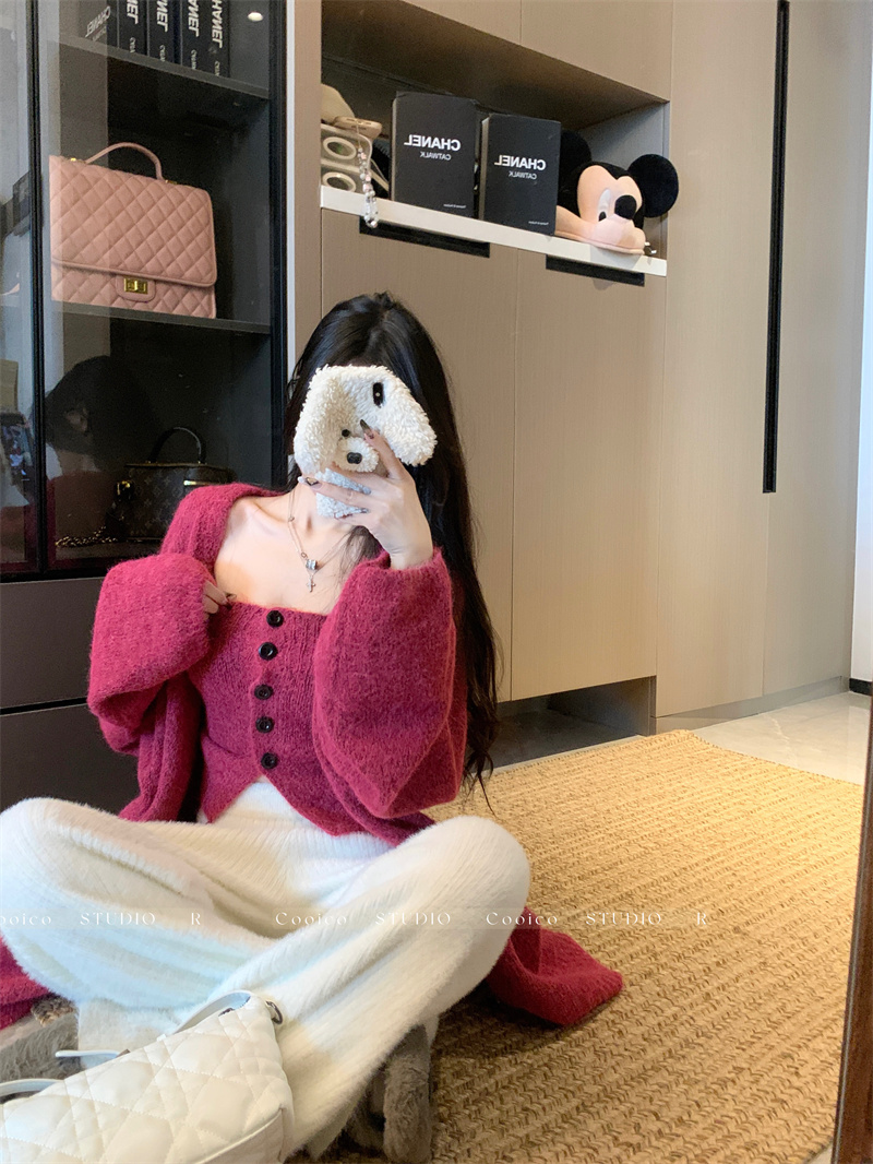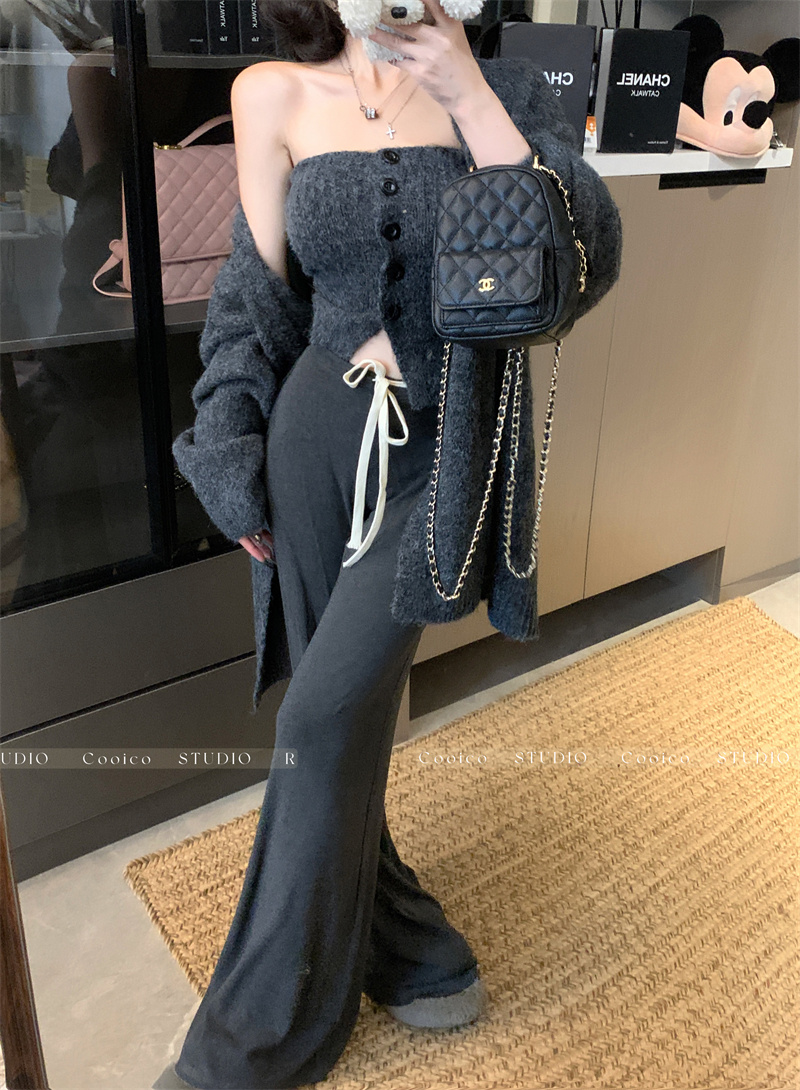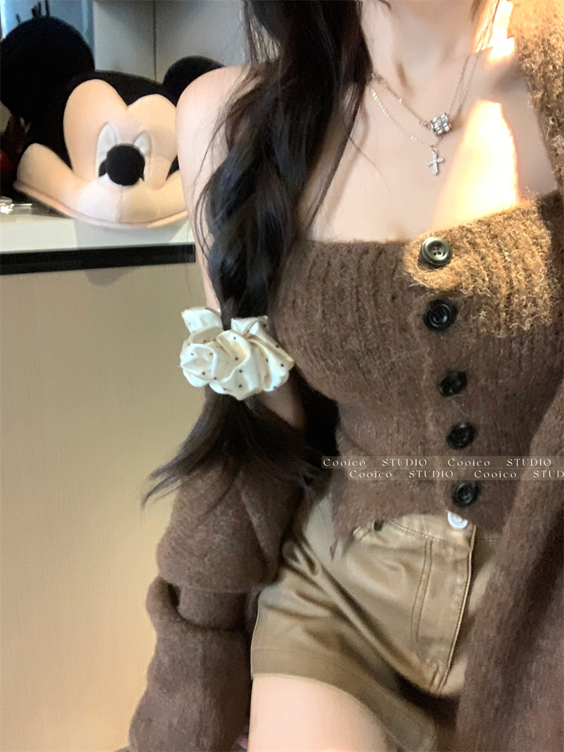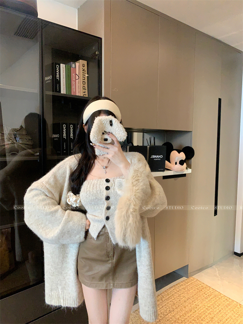 韓系慵懶風毛衣外套女秋季抹胸背心兩件套超好看寬松針織開衫上衣