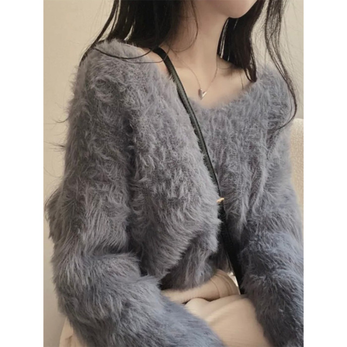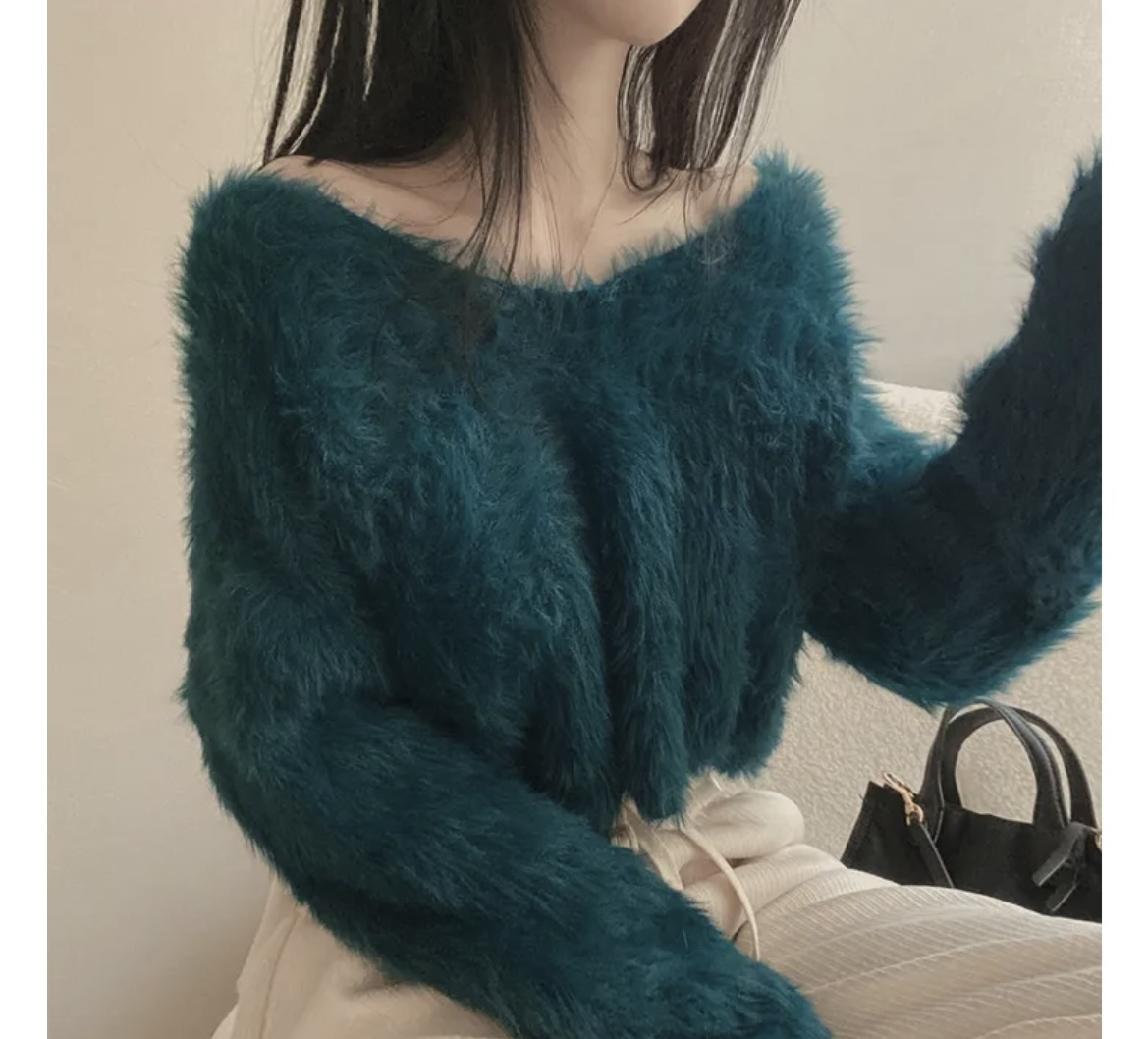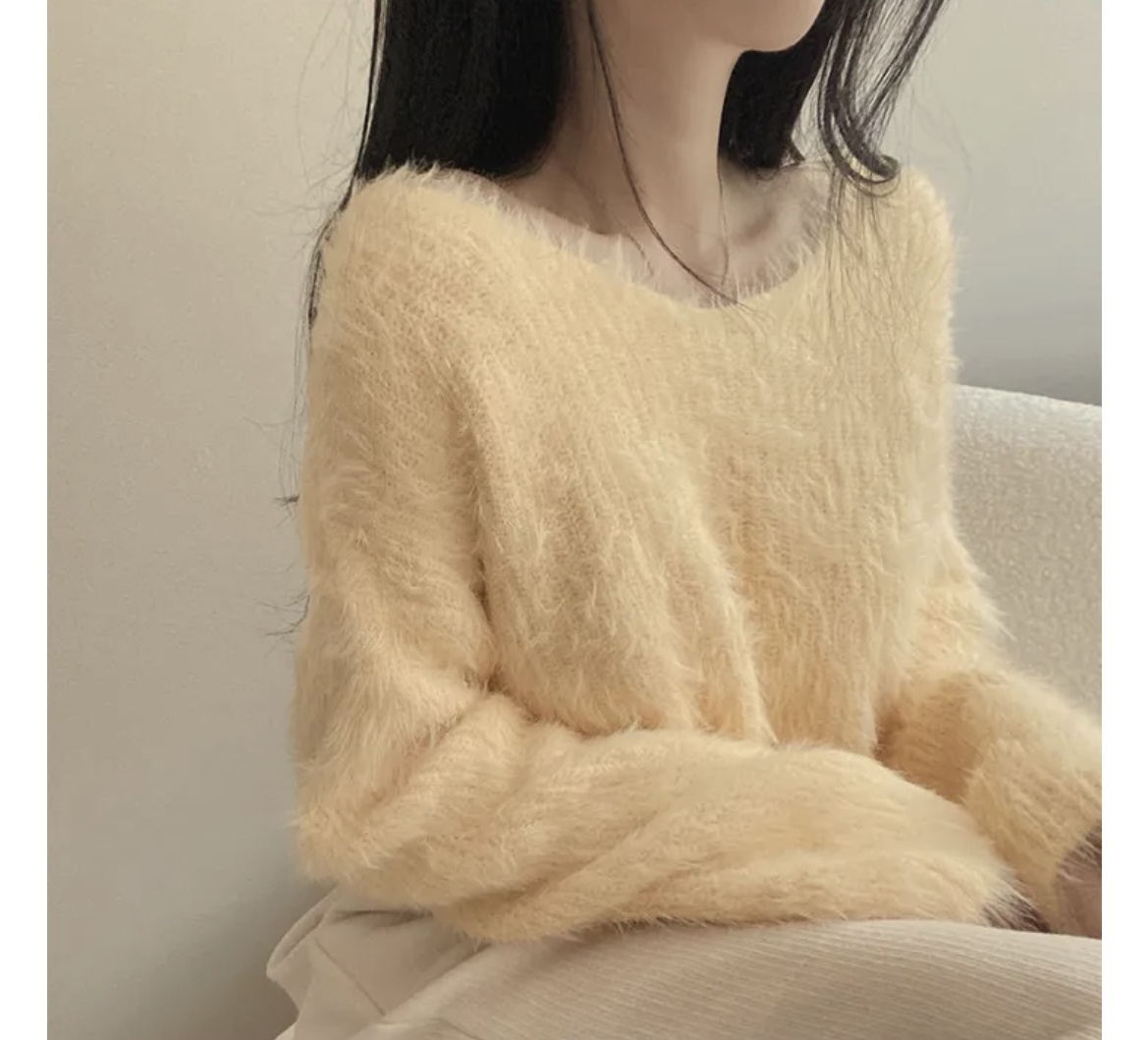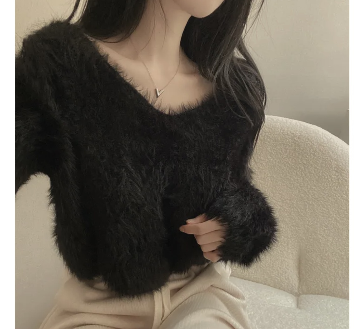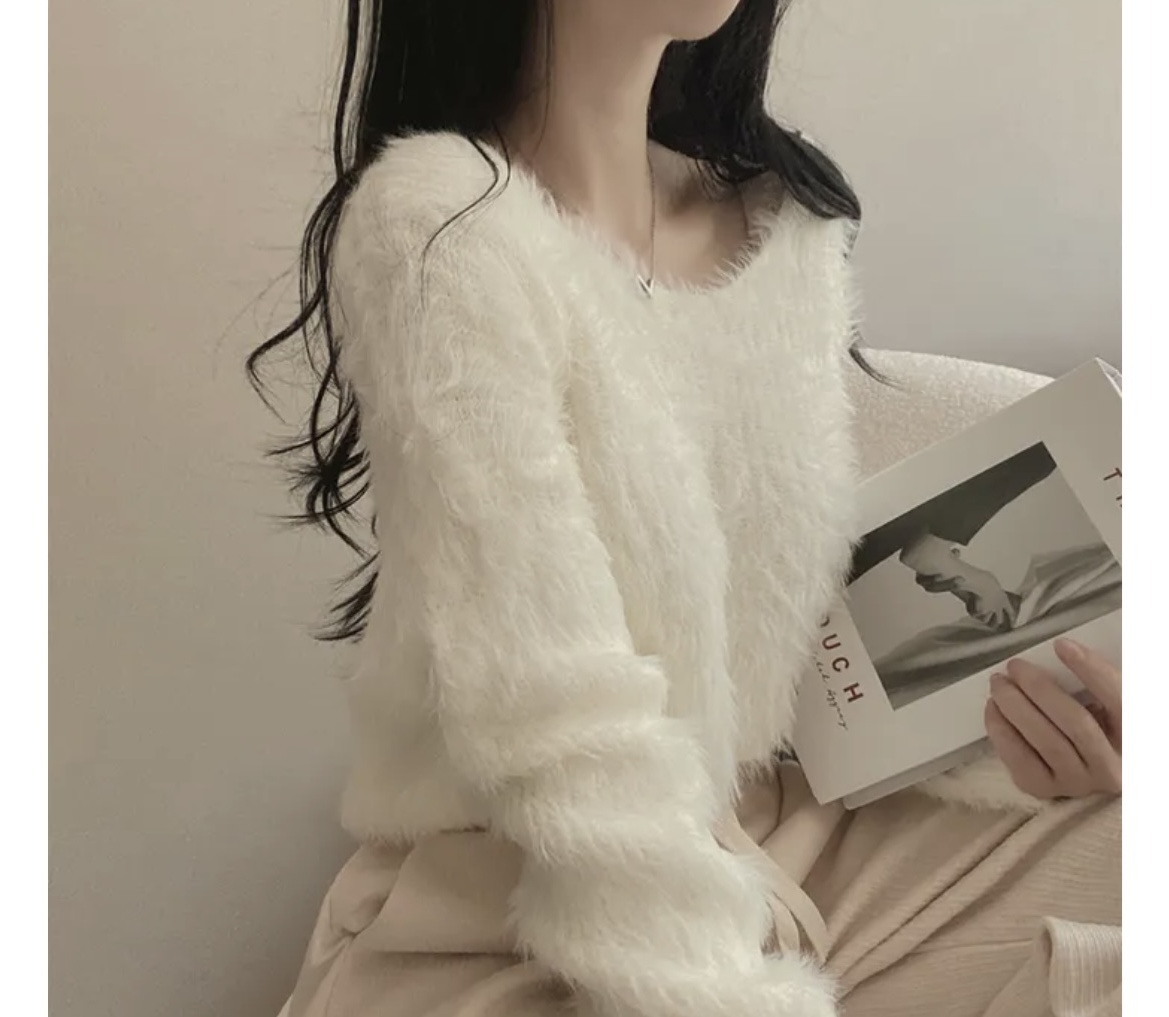 韓版溫柔風百搭氣質毛絨絨毛衣女春秋新款長袖短款針織衫上衣ins