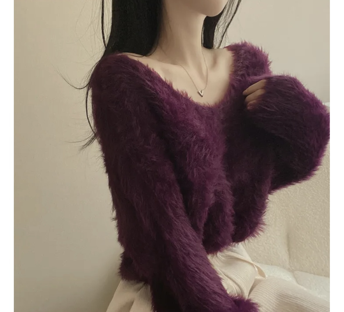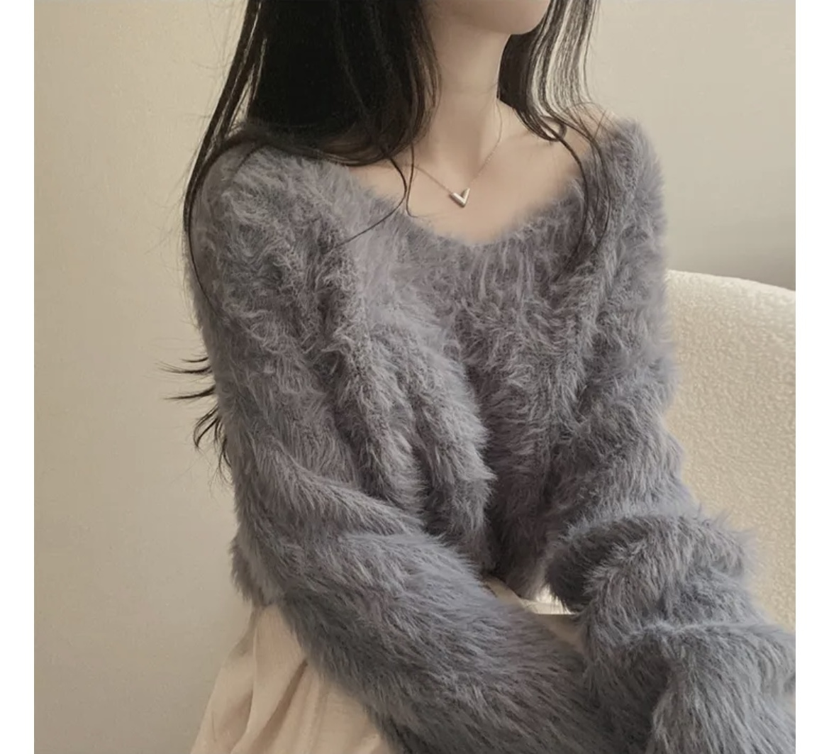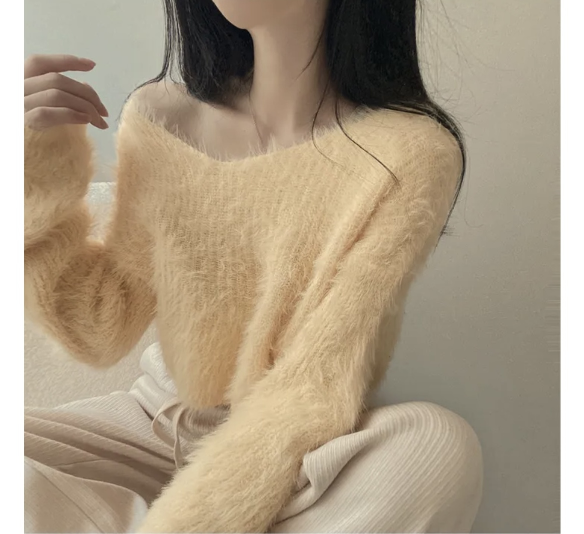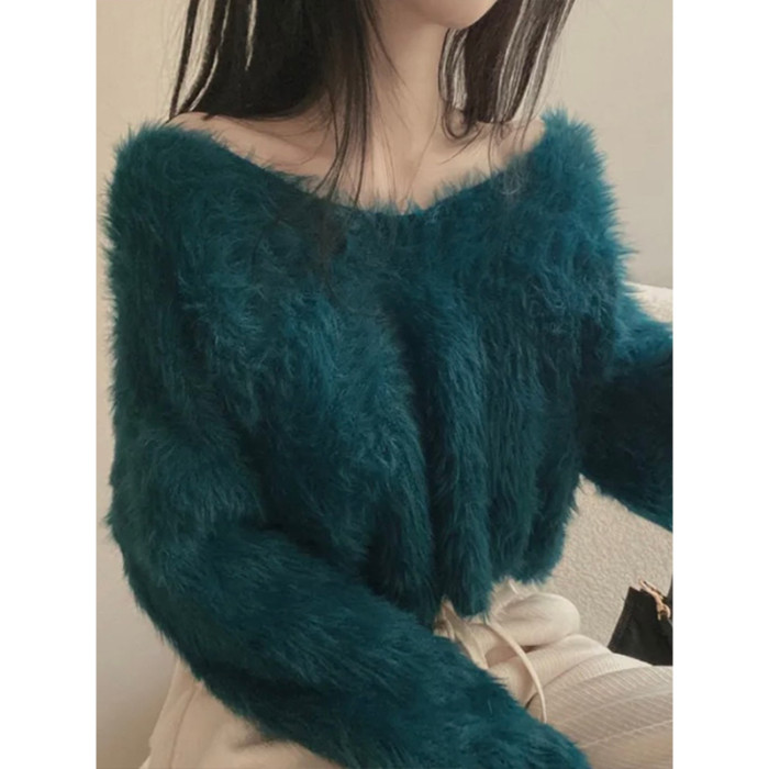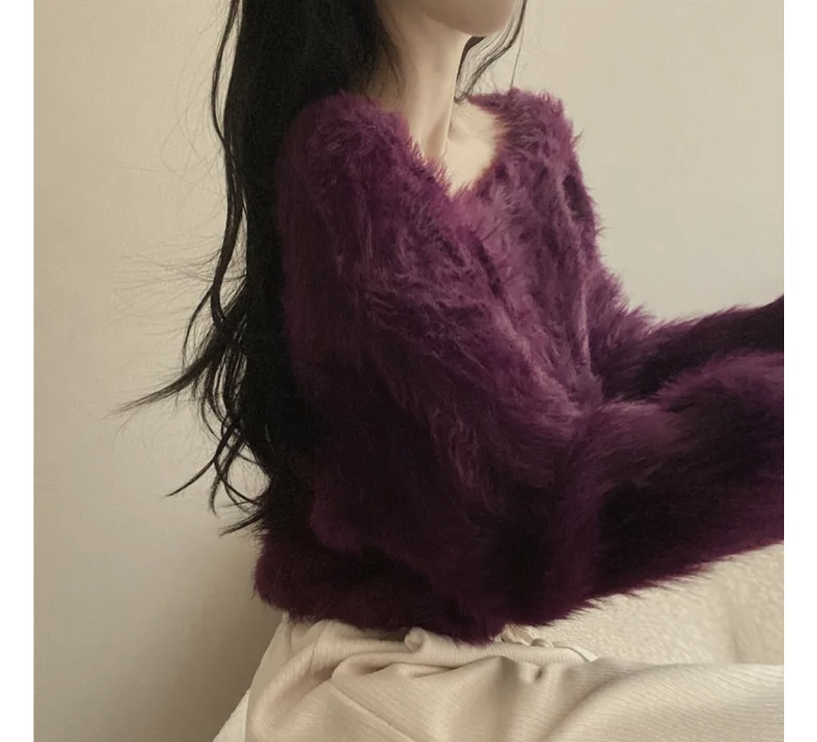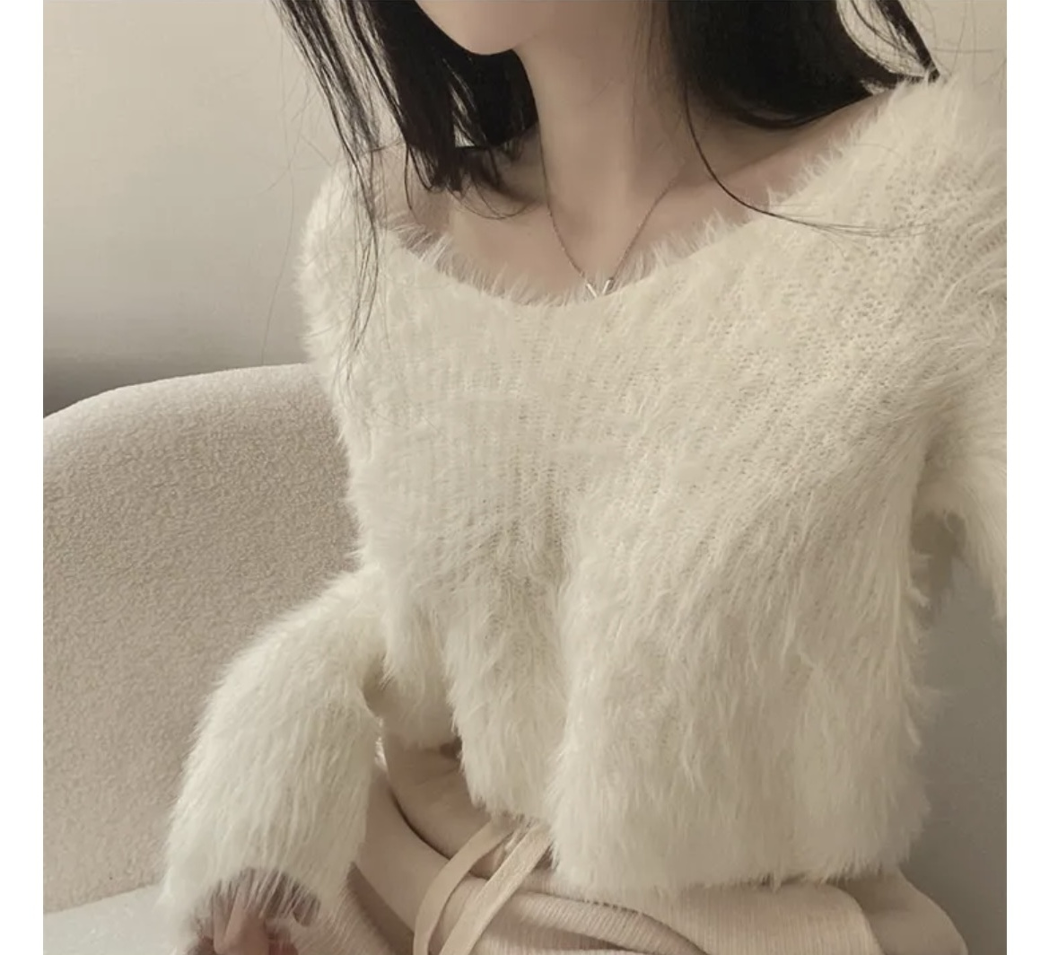韓版溫柔風百搭氣質毛絨絨毛衣女春秋新款長袖短款針織衫上衣ins