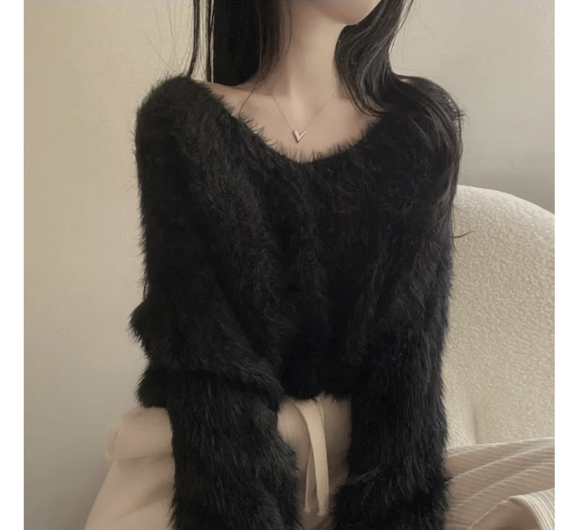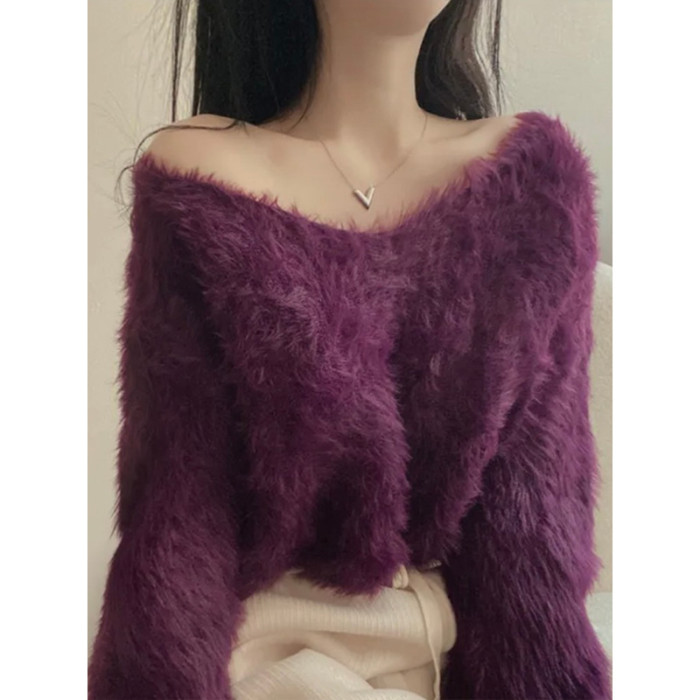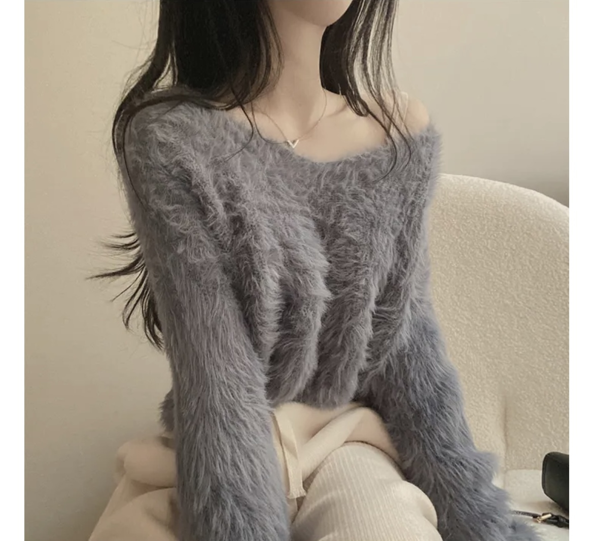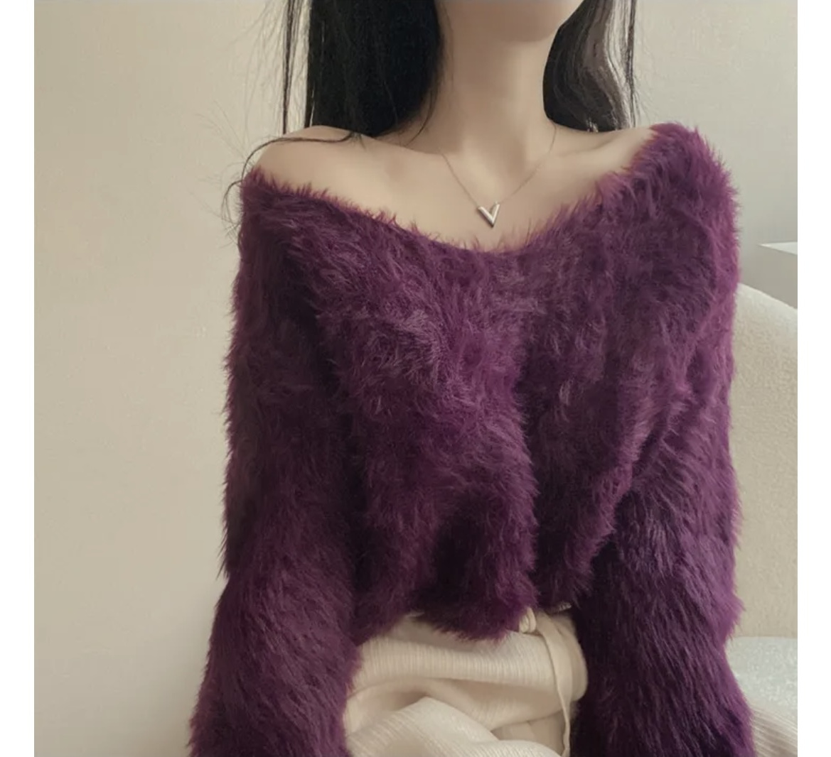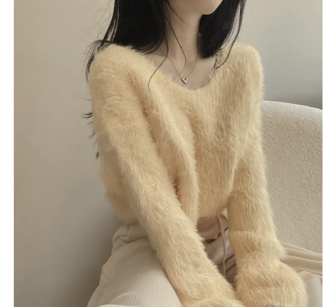 韓版溫柔風百搭氣質毛絨絨毛衣女春秋新款長袖短款針織衫上衣ins