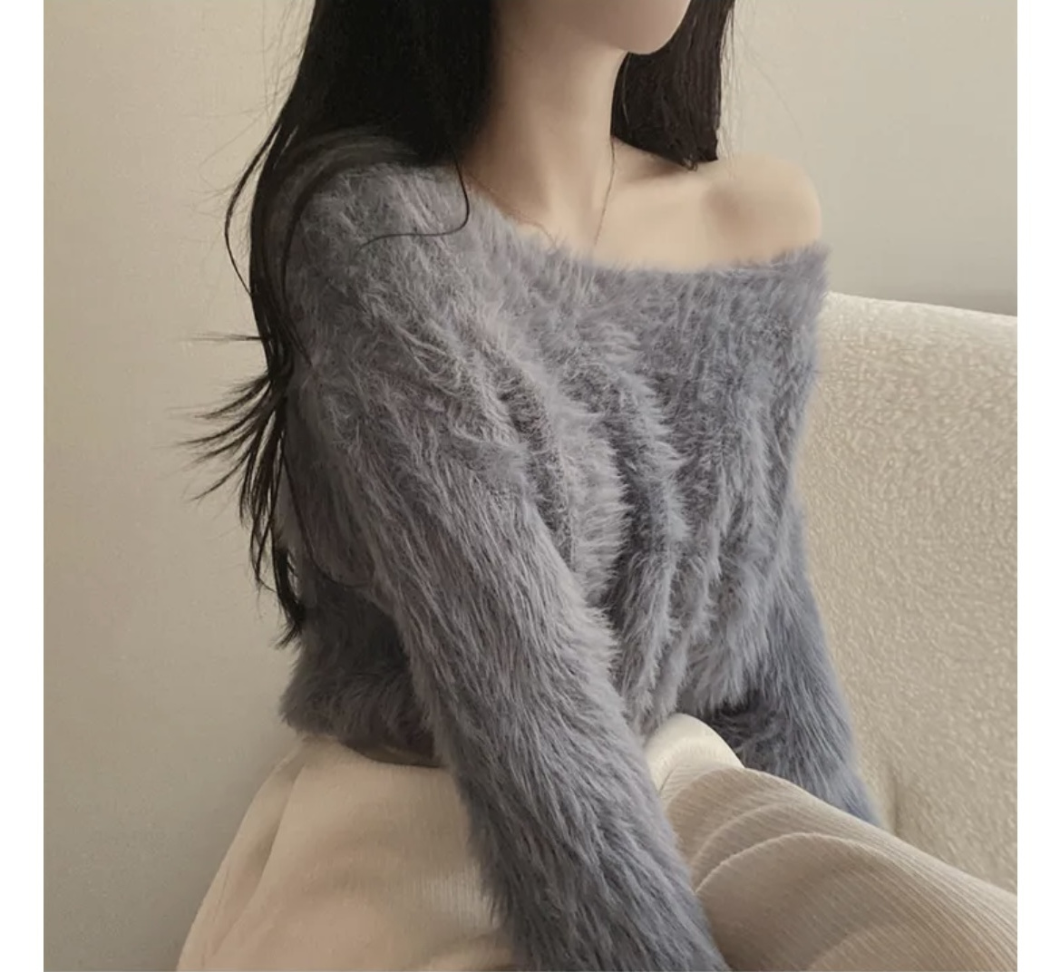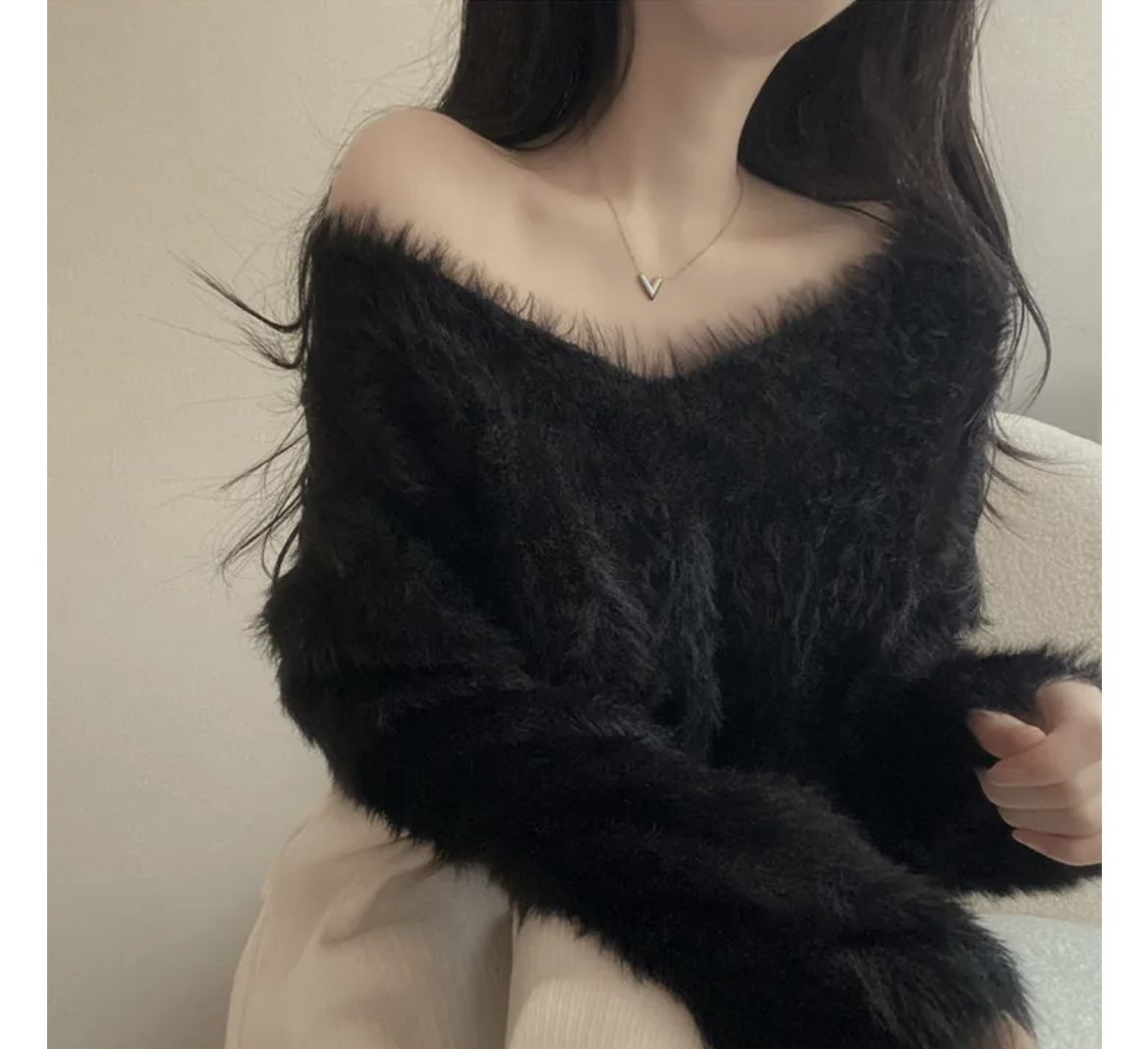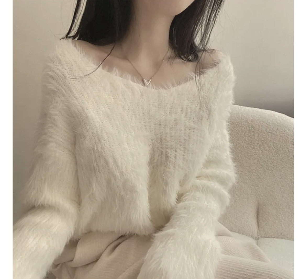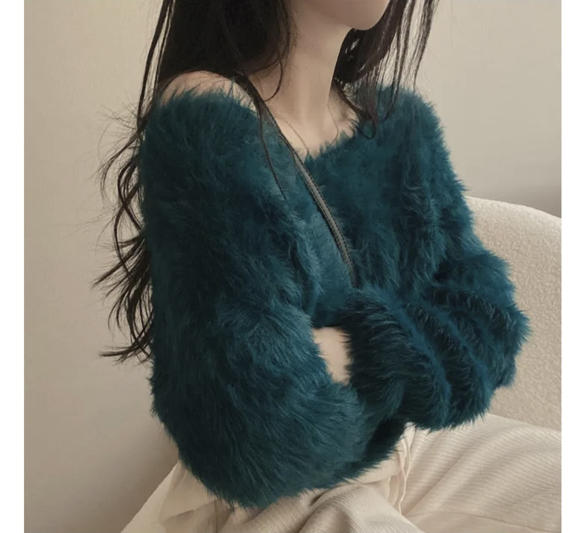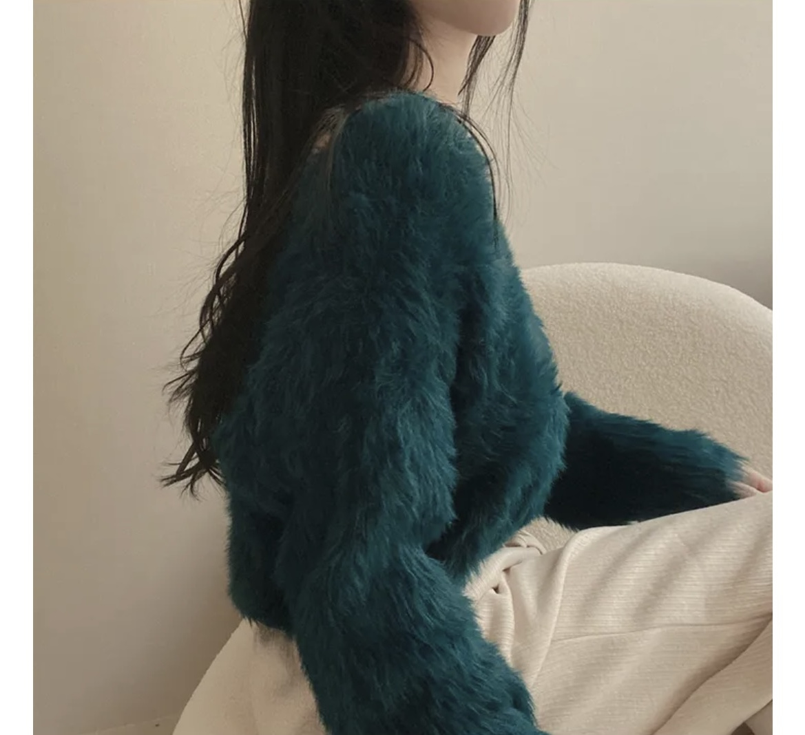 韓版溫柔風百搭氣質毛絨絨毛衣女春秋新款長袖短款針織衫上衣ins