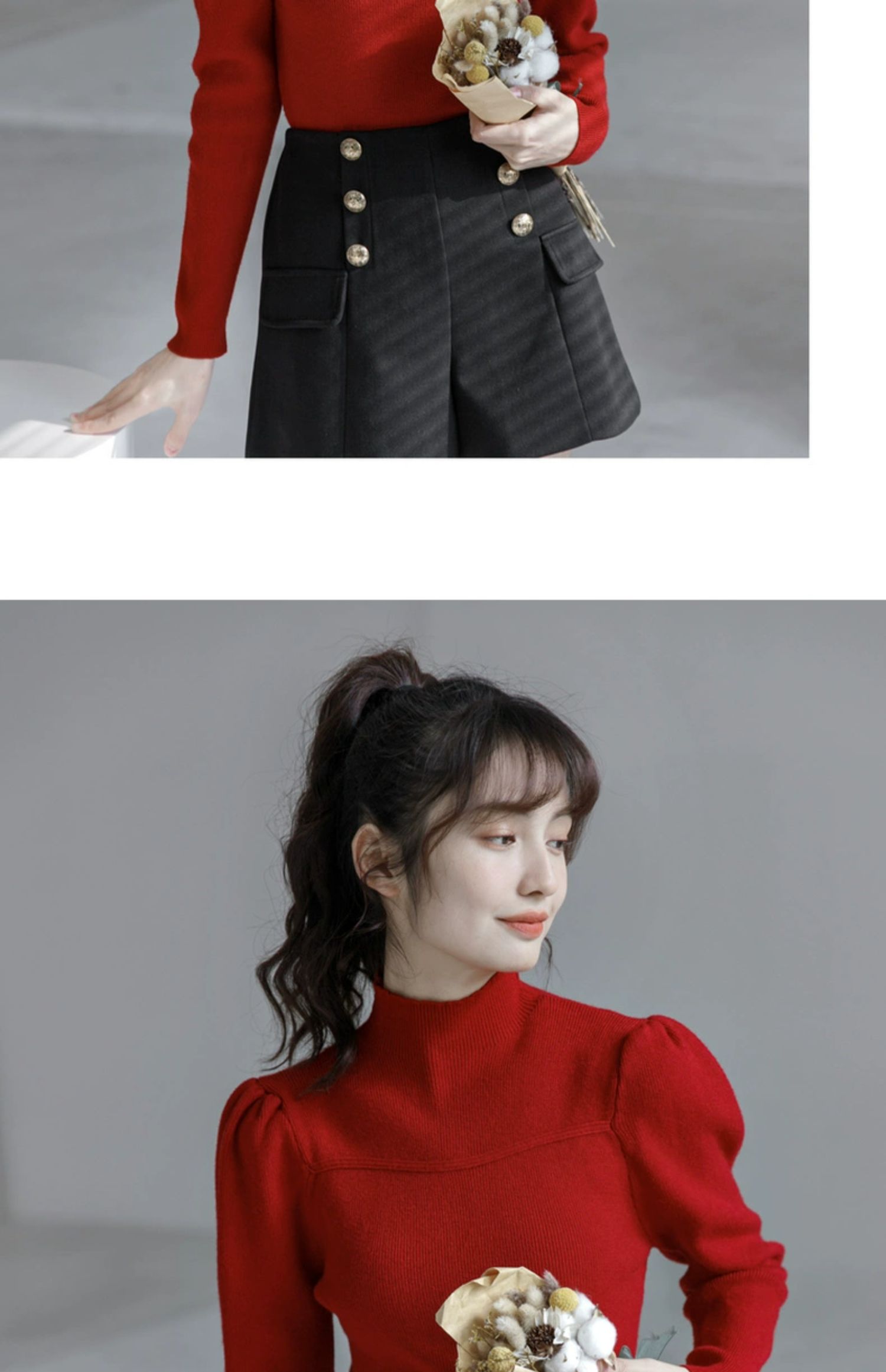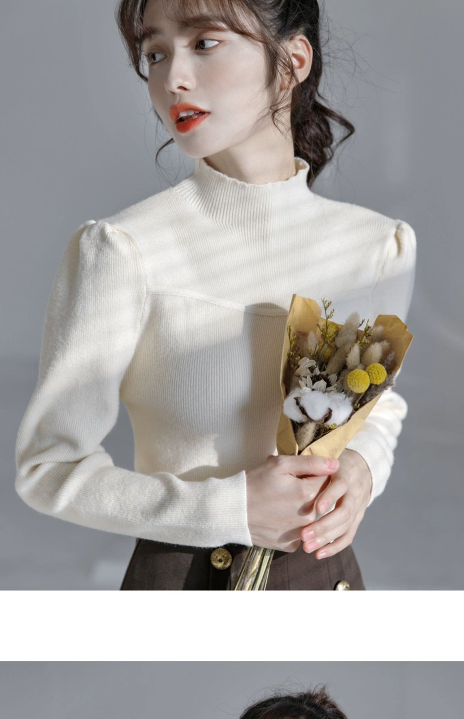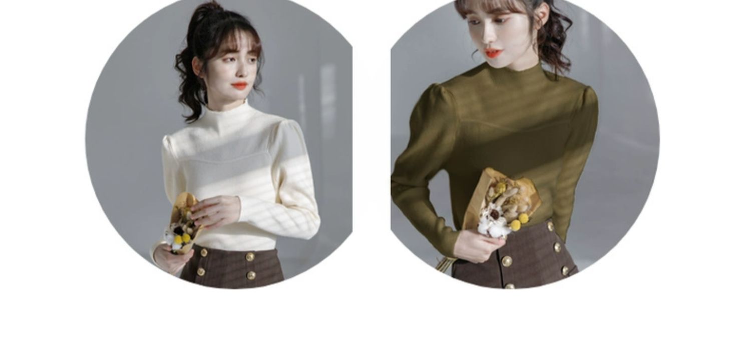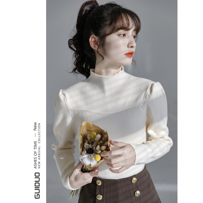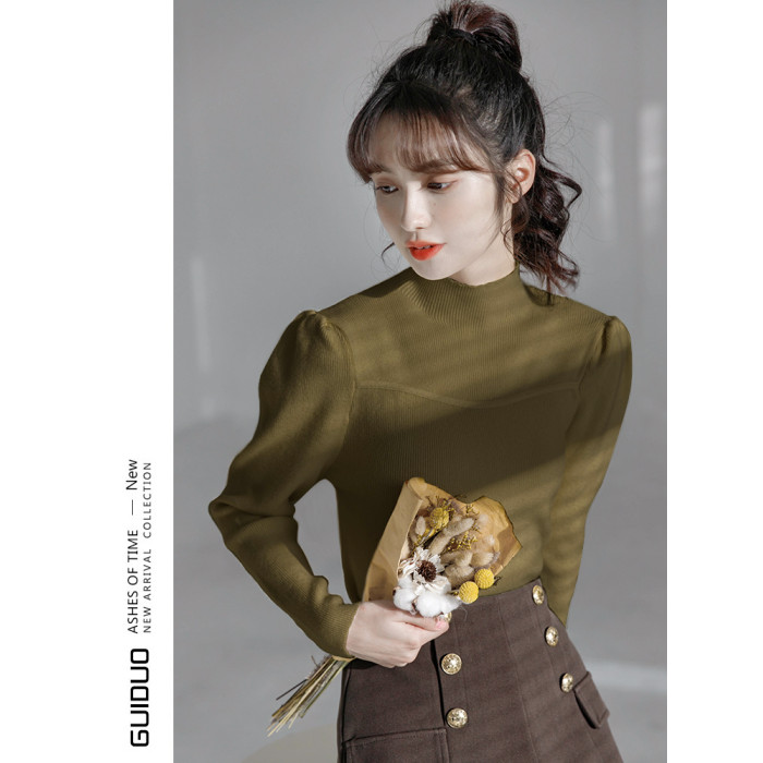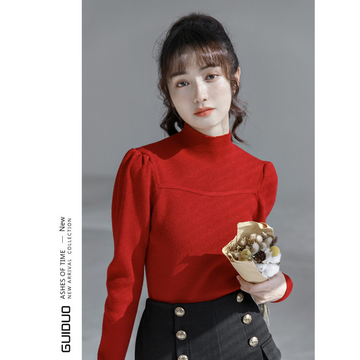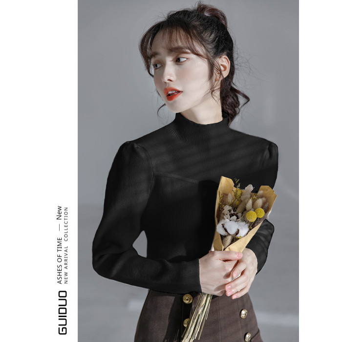 半高領毛衣女冬泡泡袖設計感小衆2025秋冬新款洋氣修身內搭打底衫