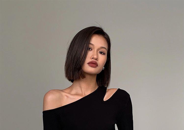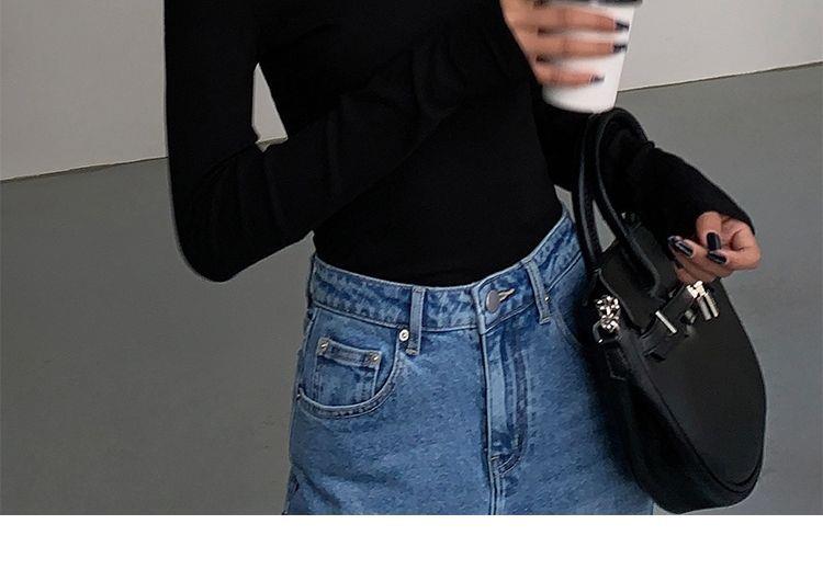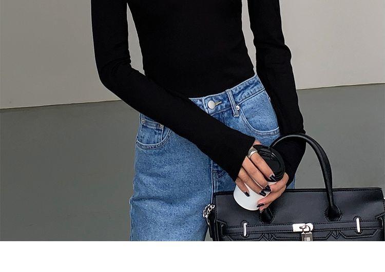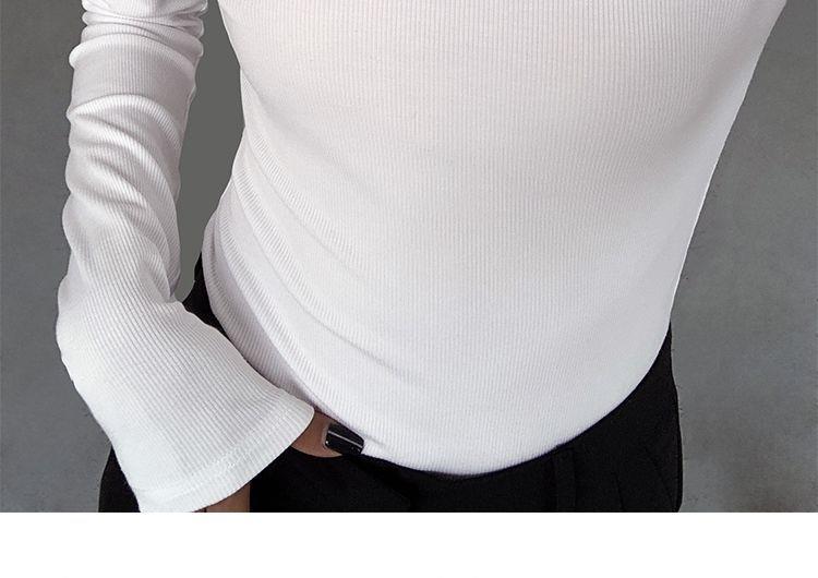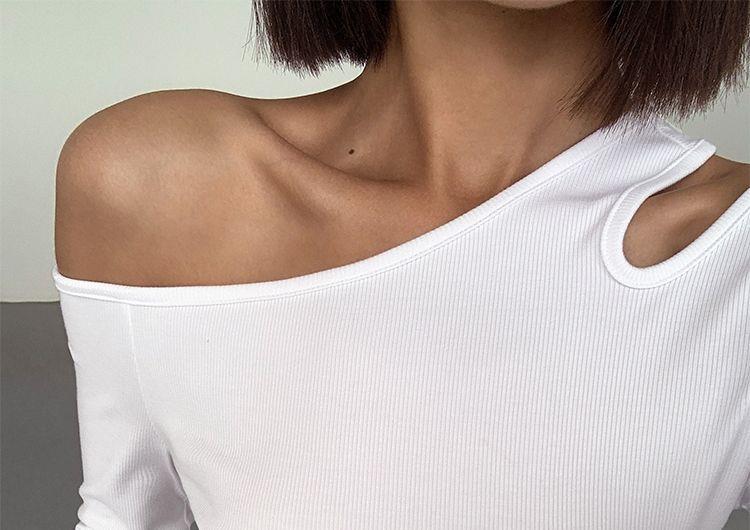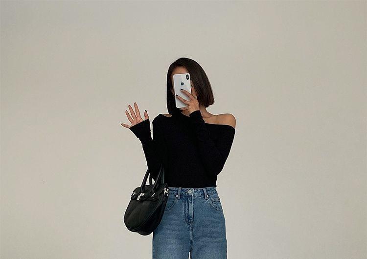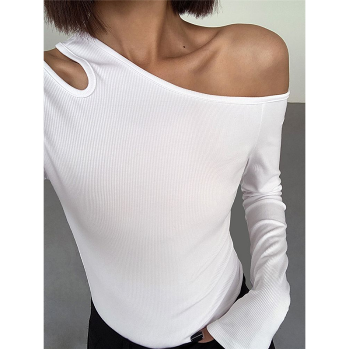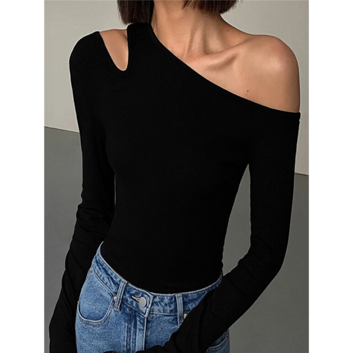 黑色斜肩打底衫女秋冬季長袖修身內搭性感露肩鎖骨挖肩設計款上衣