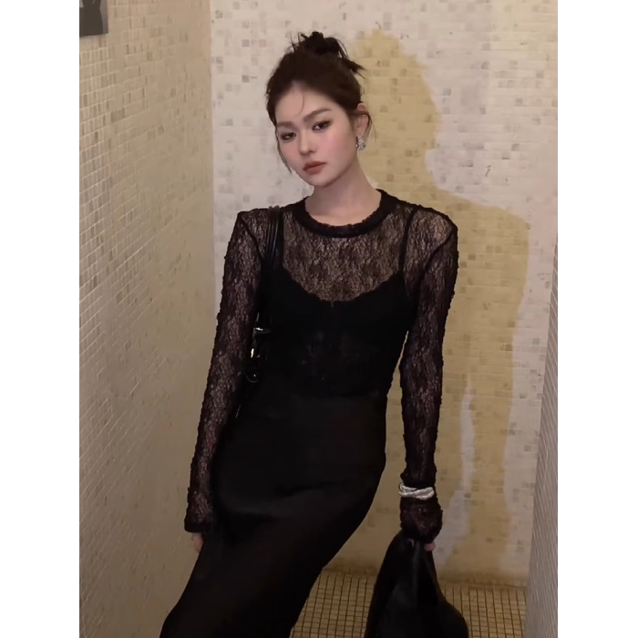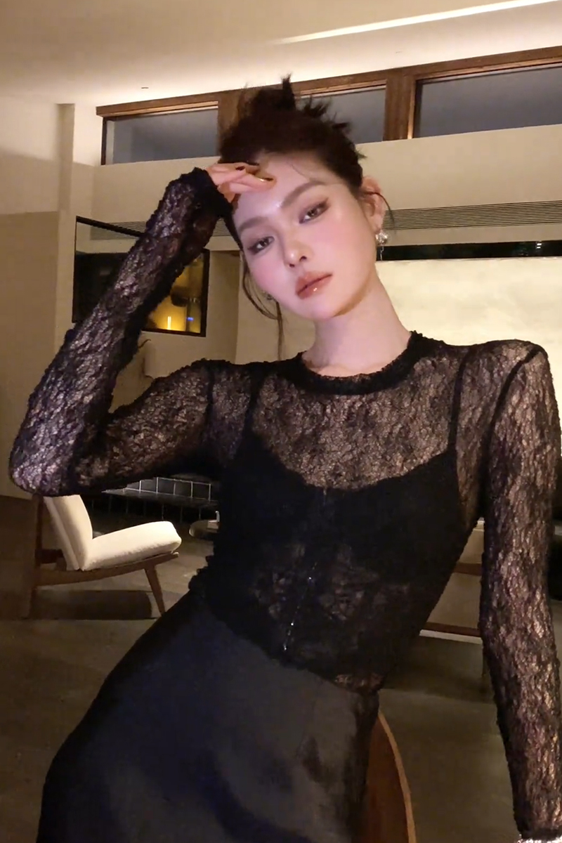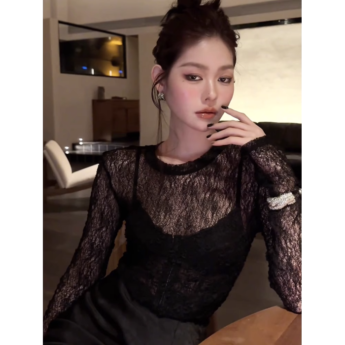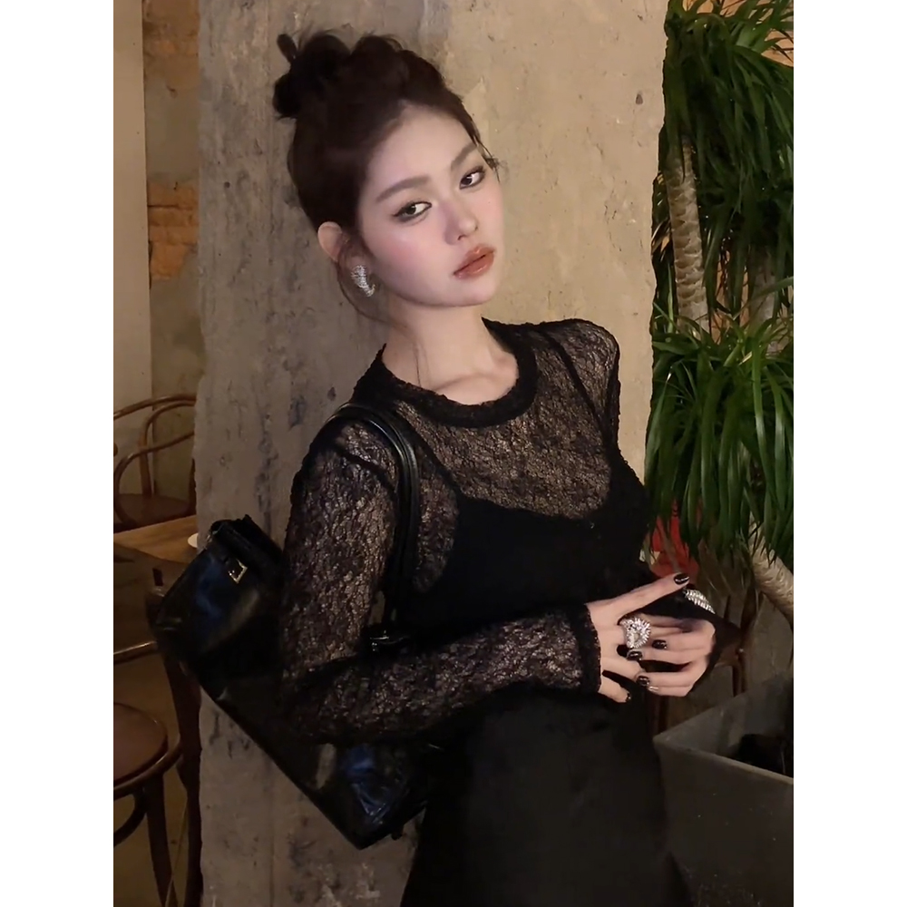 法式復古蕾絲性感長袖T恤女春夏新款設計感小衆時尚氣質顯瘦上衣