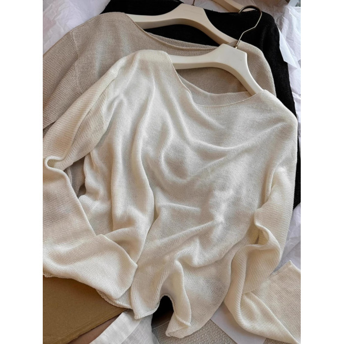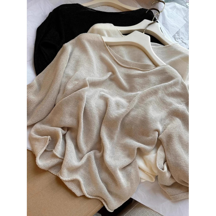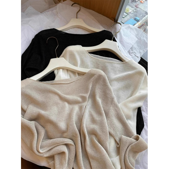 CHAO級無D推薦!慵懶松弛感~天絲亞麻涼感紙片人寬松針織防曬罩衫