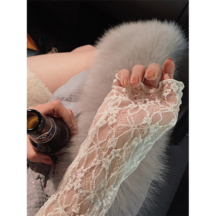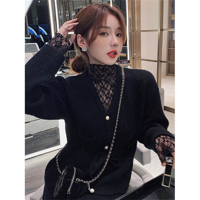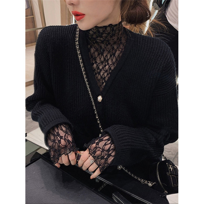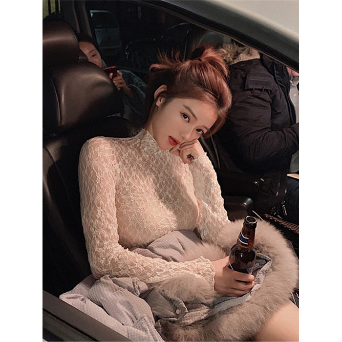 半高領蕾絲打底衫女秋冬2025新款配皮草內搭洋氣紗衣網紗薄紗上衣