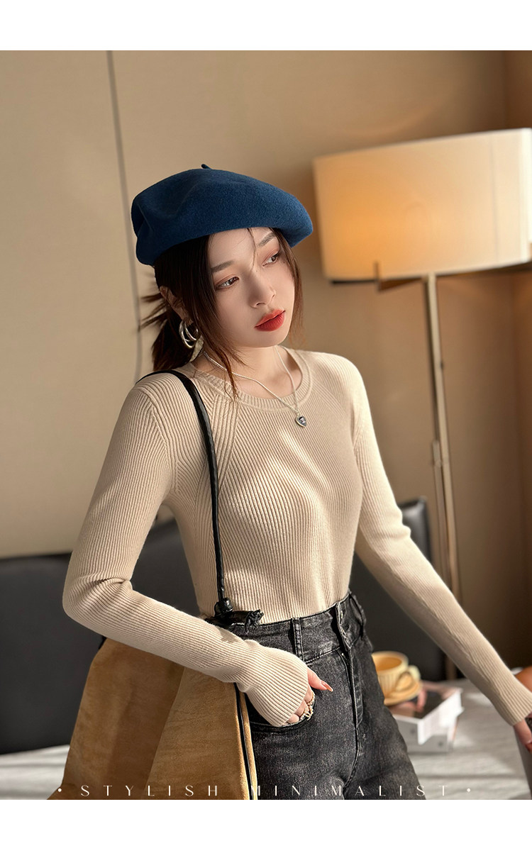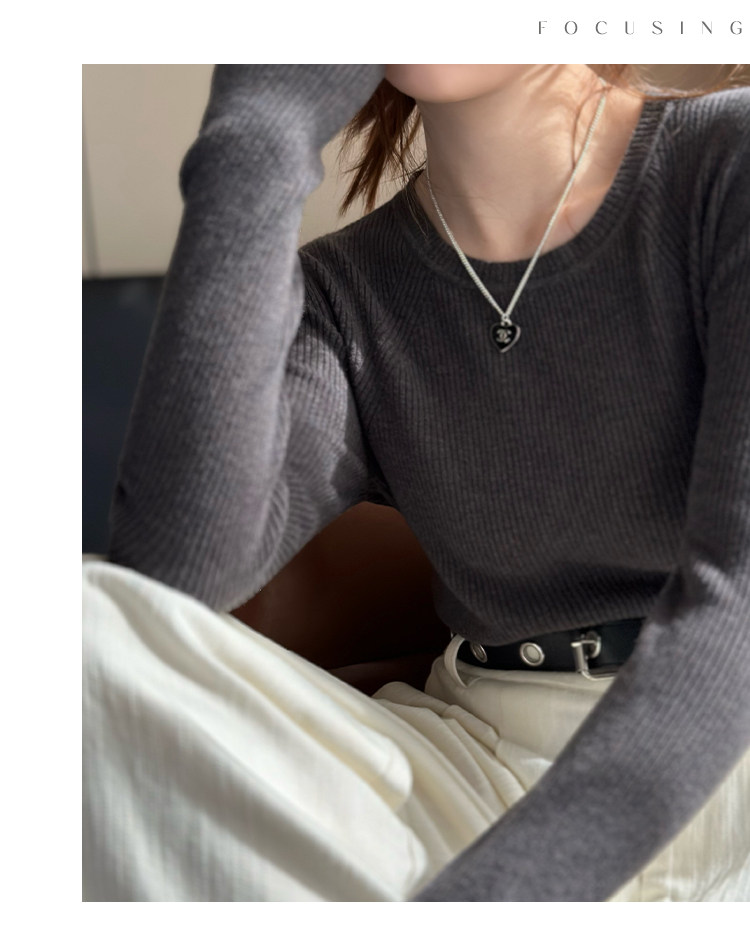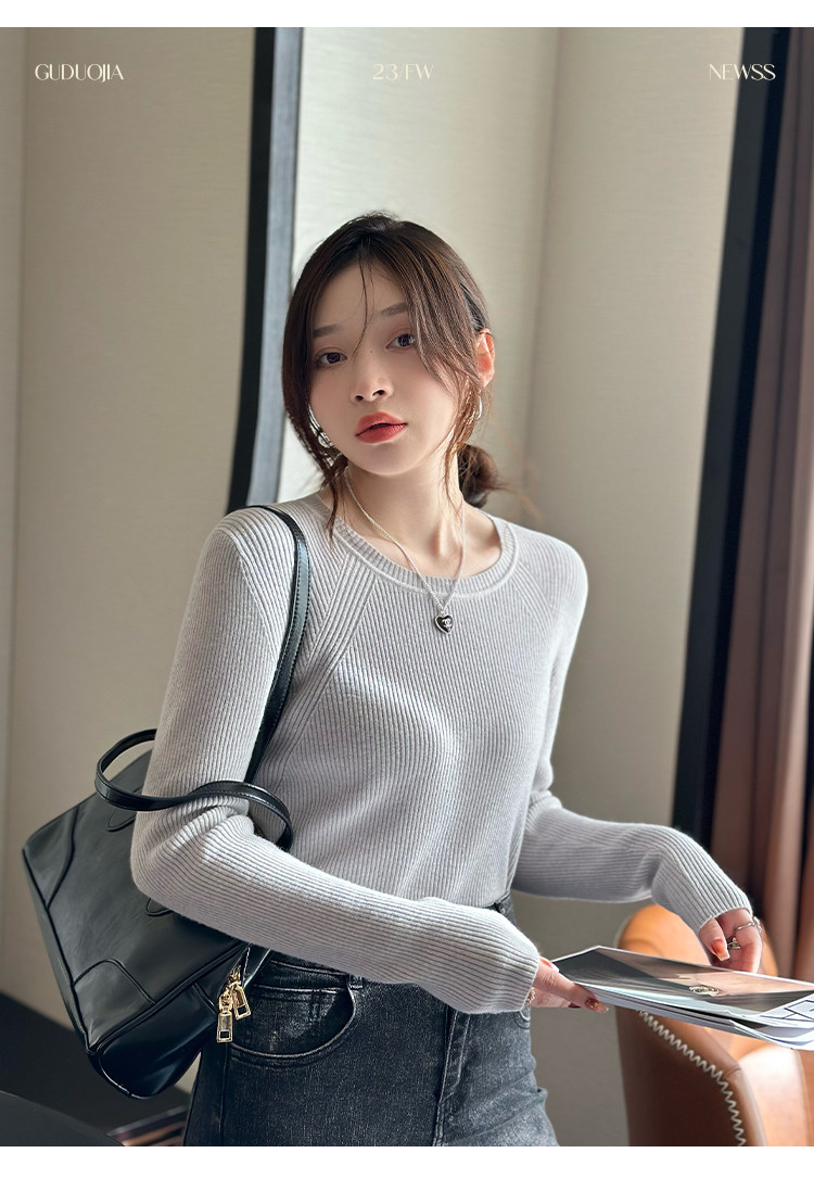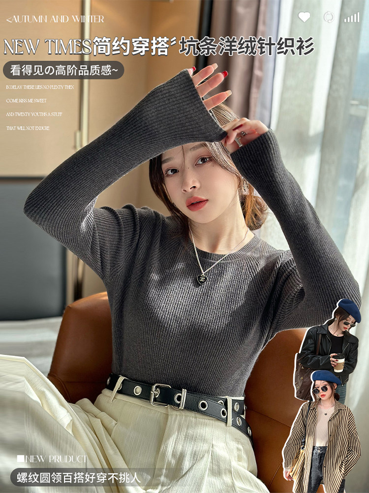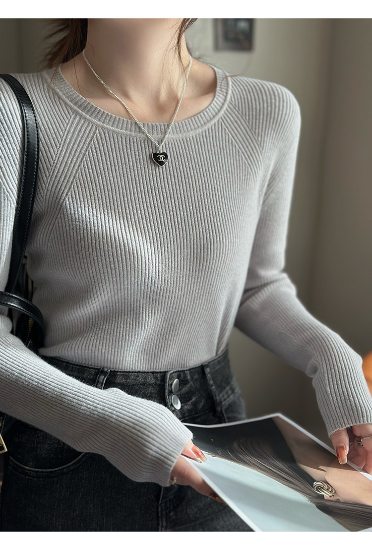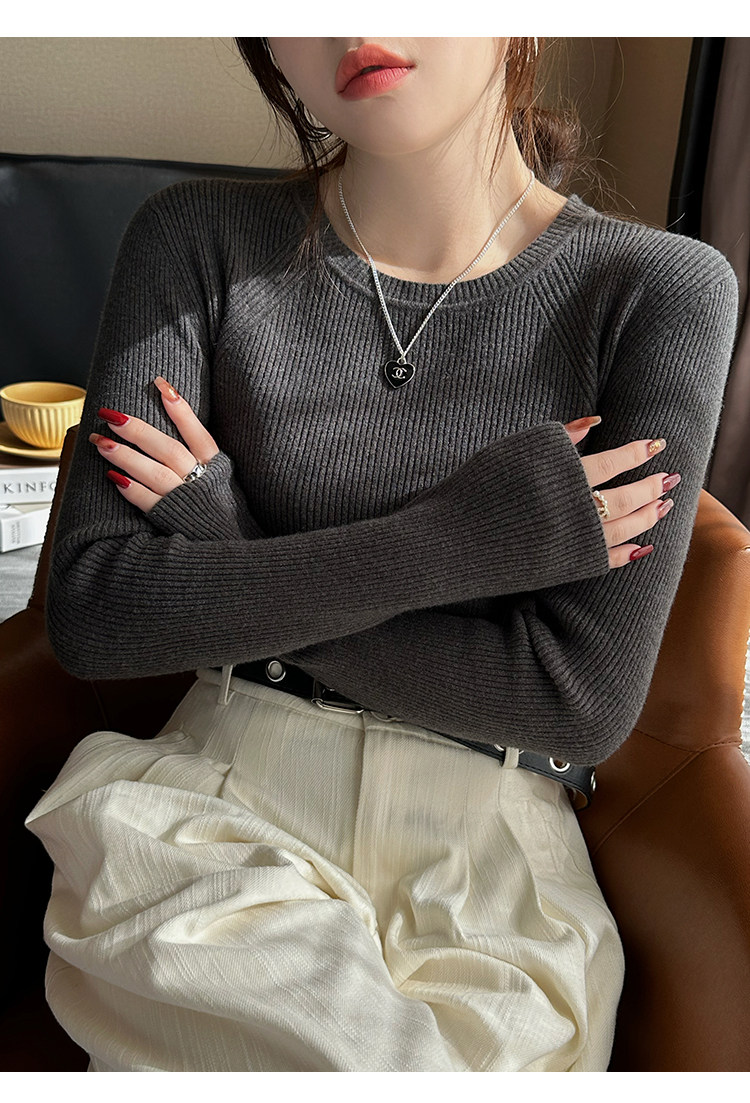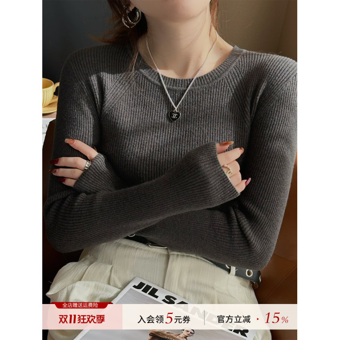羊絨打底衫女2025新款秋冬內搭灰色圓領毛衣高級感針織衫內穿上衣