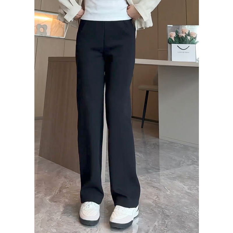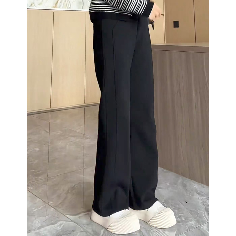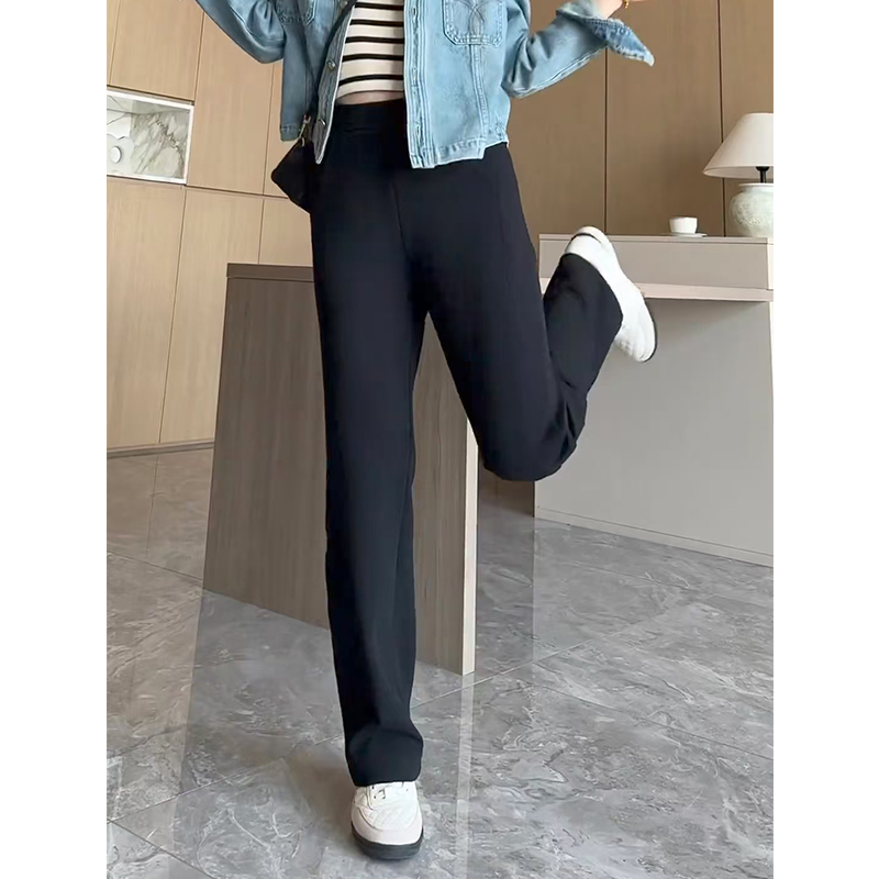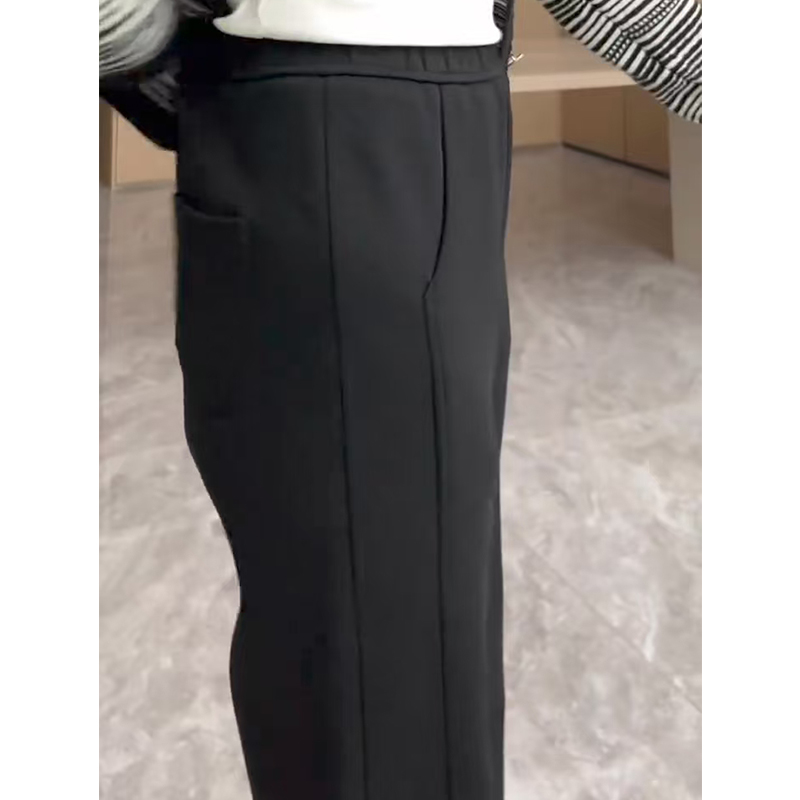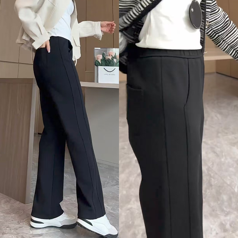 黑色直筒褲女秋冬新款高腰寬松顯瘦小個子大碼窄版休閒加絨濶腿褲