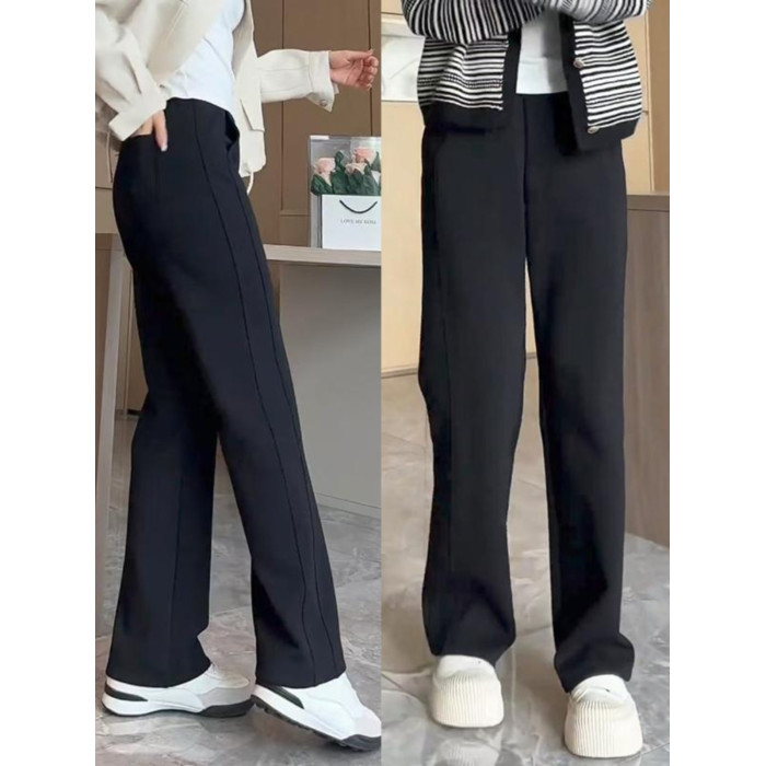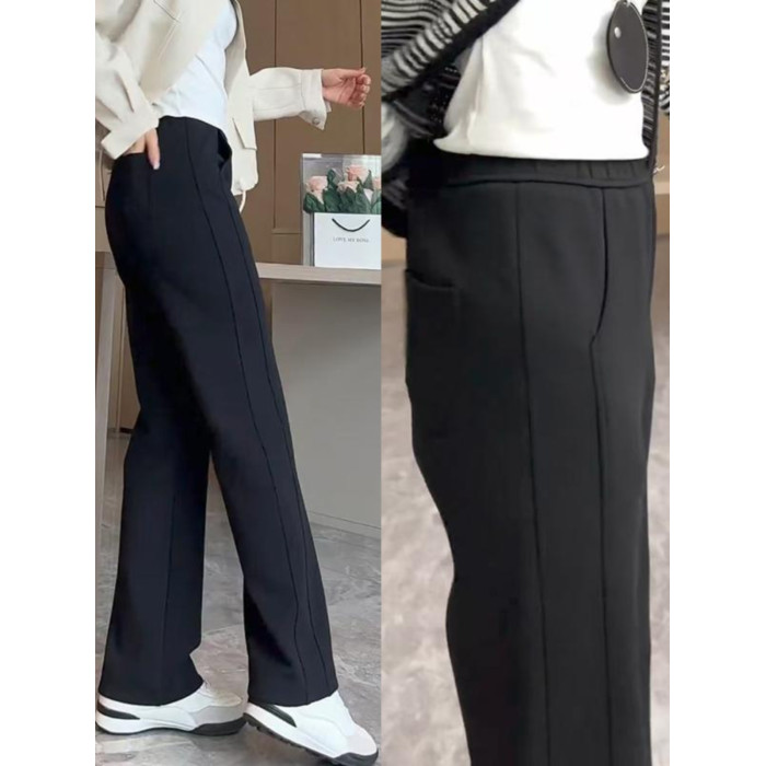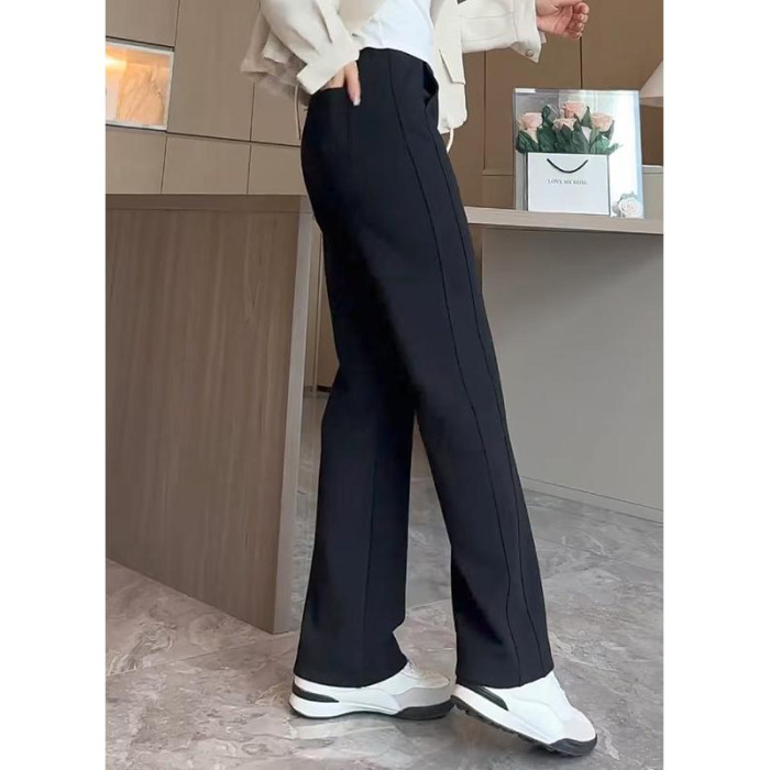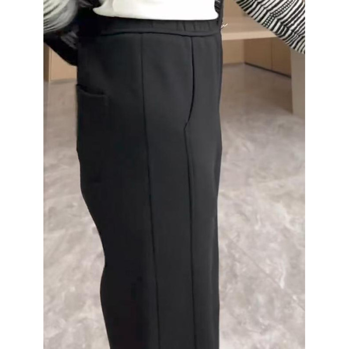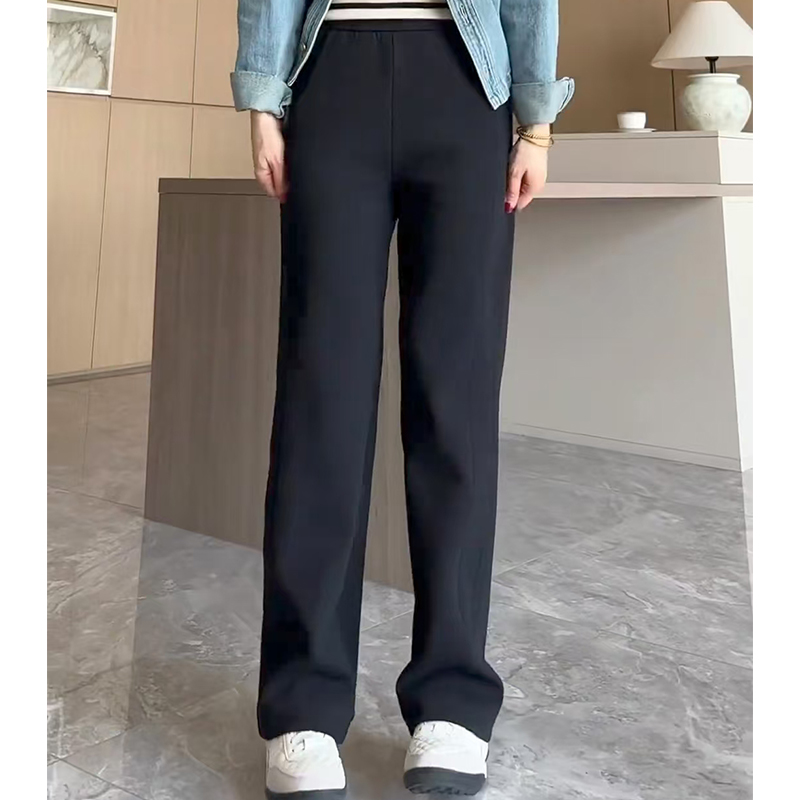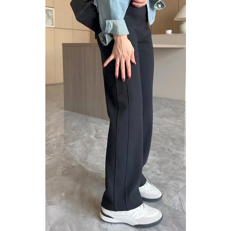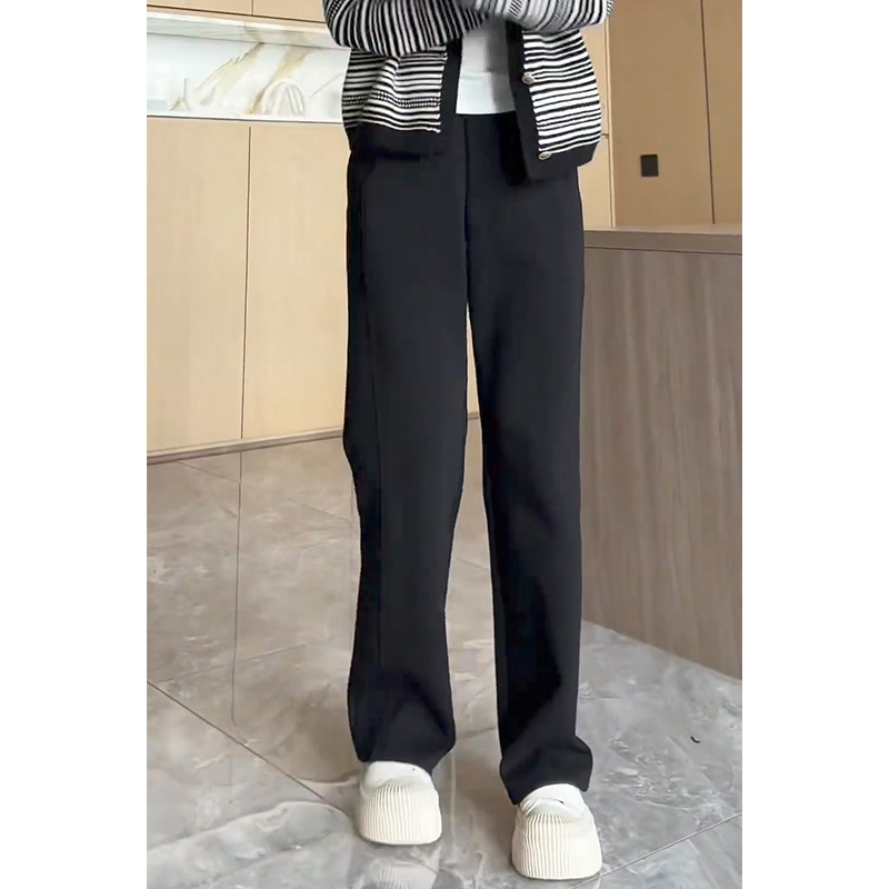 黑色直筒褲女秋冬新款高腰寬松顯瘦小個子大碼窄版休閒加絨濶腿褲