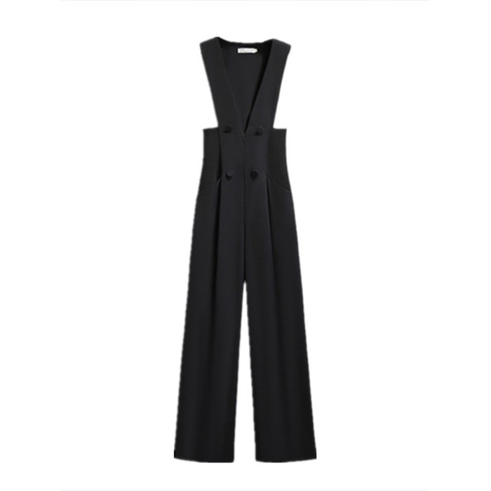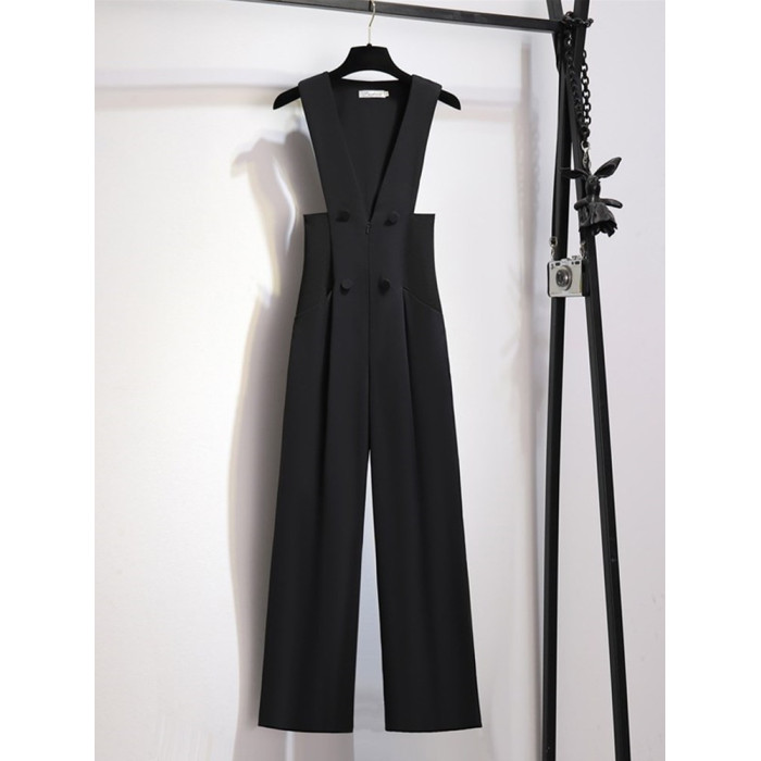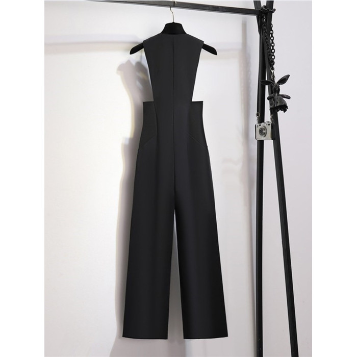 高級感背帶褲女秋裝2025新款設計感收腰顯瘦高腰濶腿西裝褲連體褲