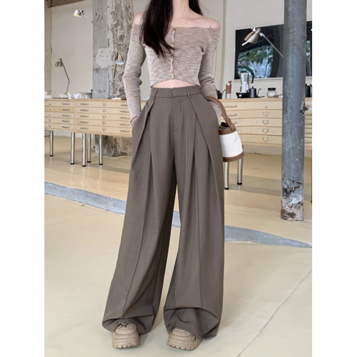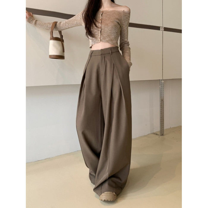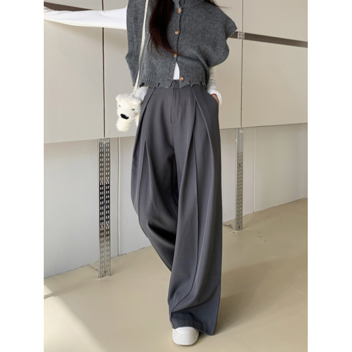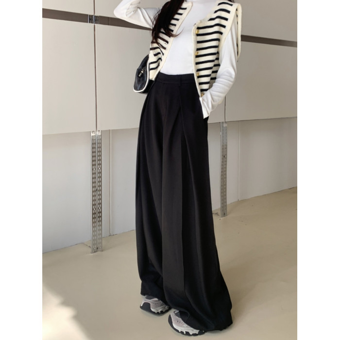 大碼高級感垂感西裝褲女夏季新款高腰黑色休閒褲胖MM顯瘦濶腿褲子