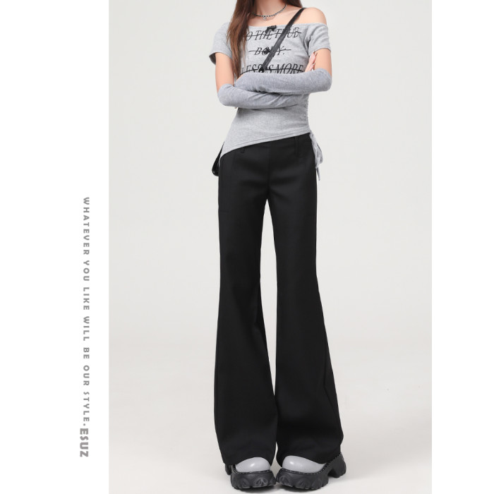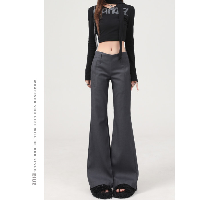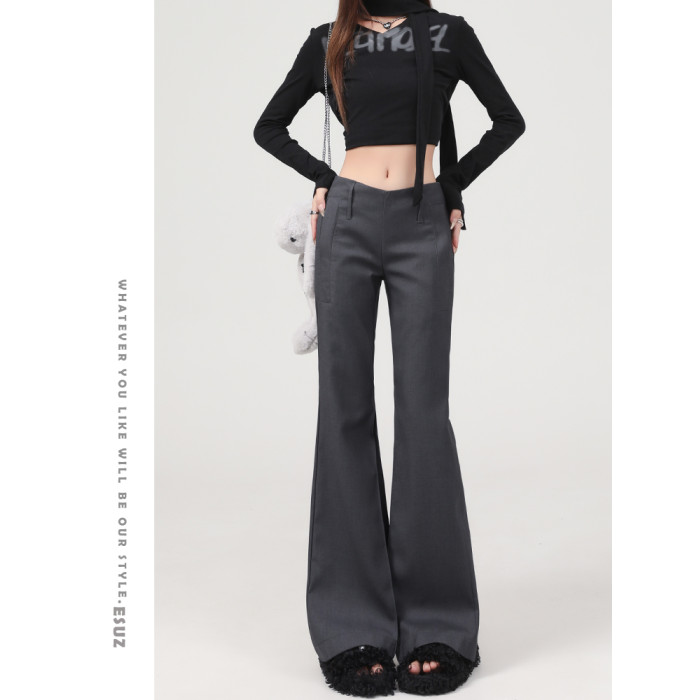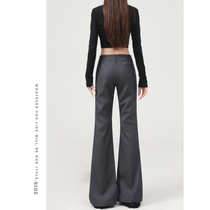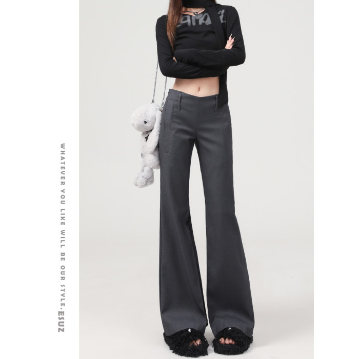 灰色辣妹低腰微喇休閒褲女加絨新款修身顯瘦垂感西裝褲子女秋冬季