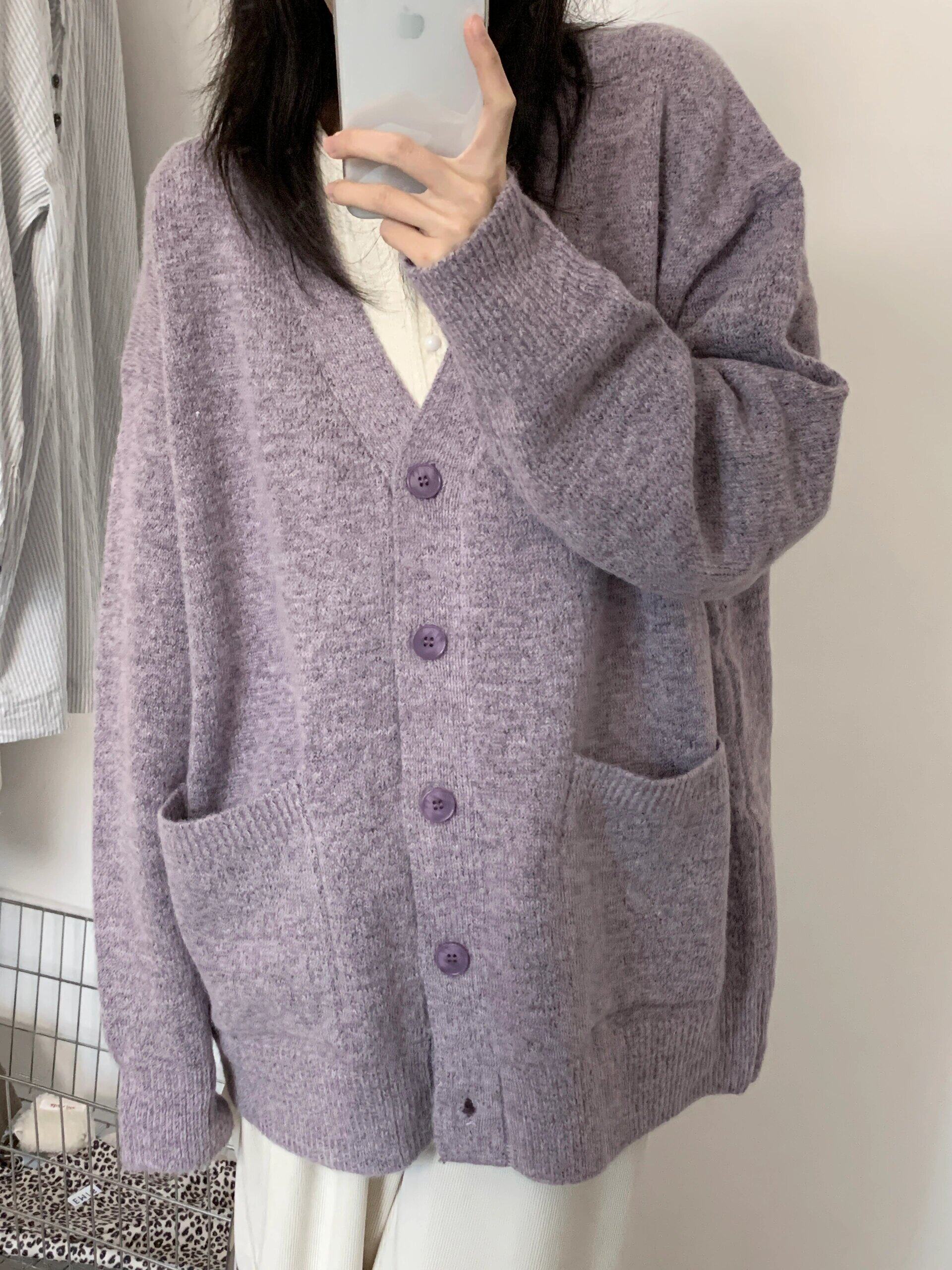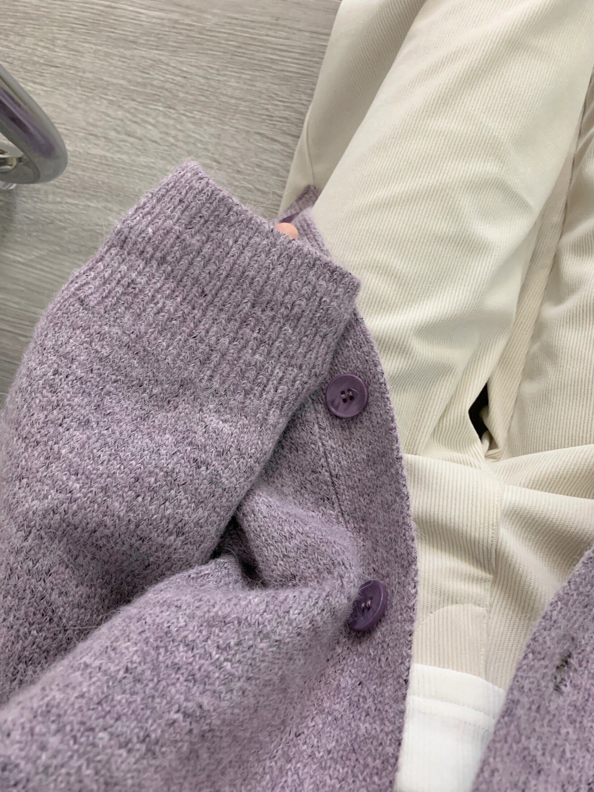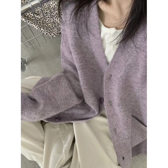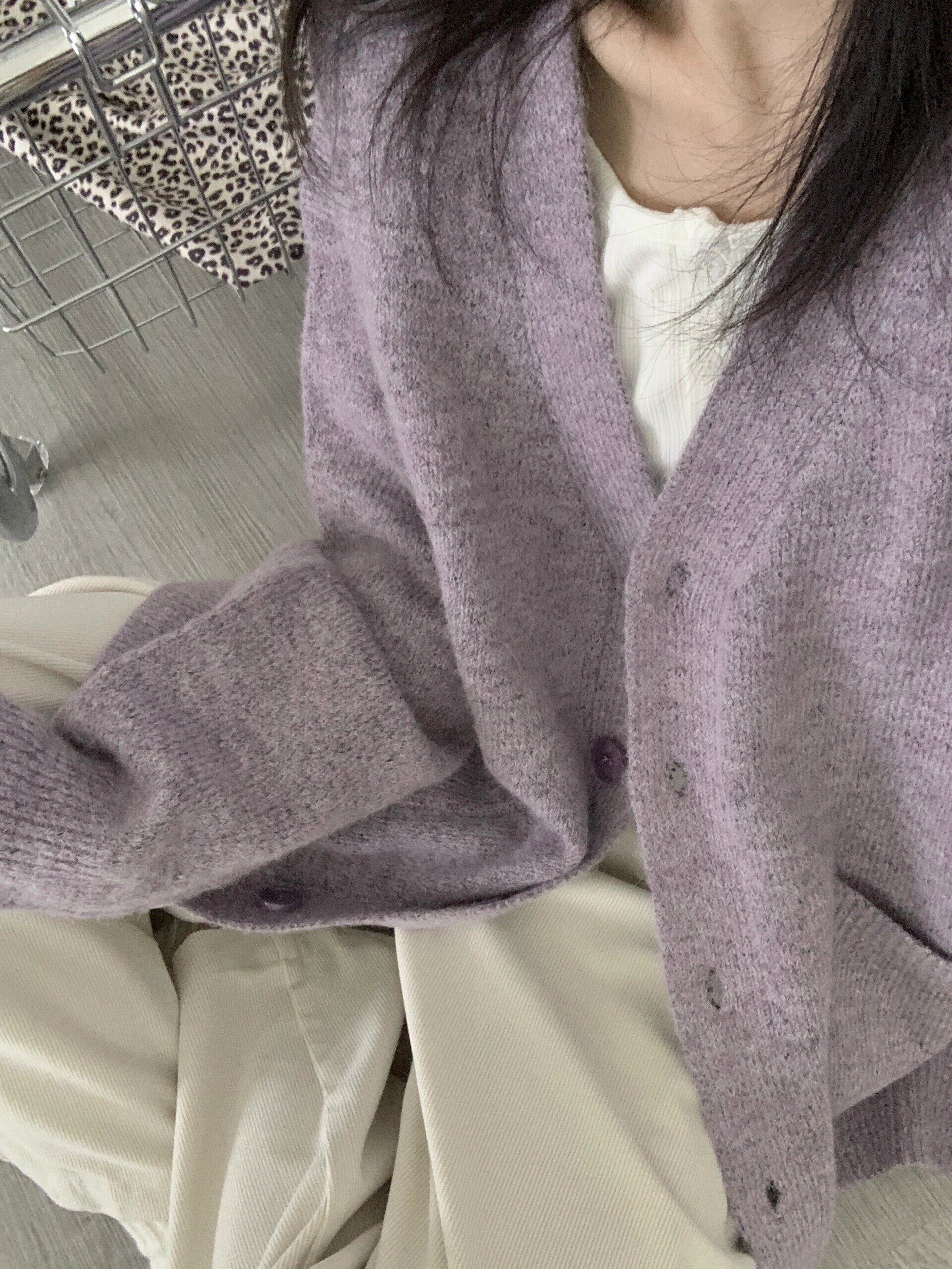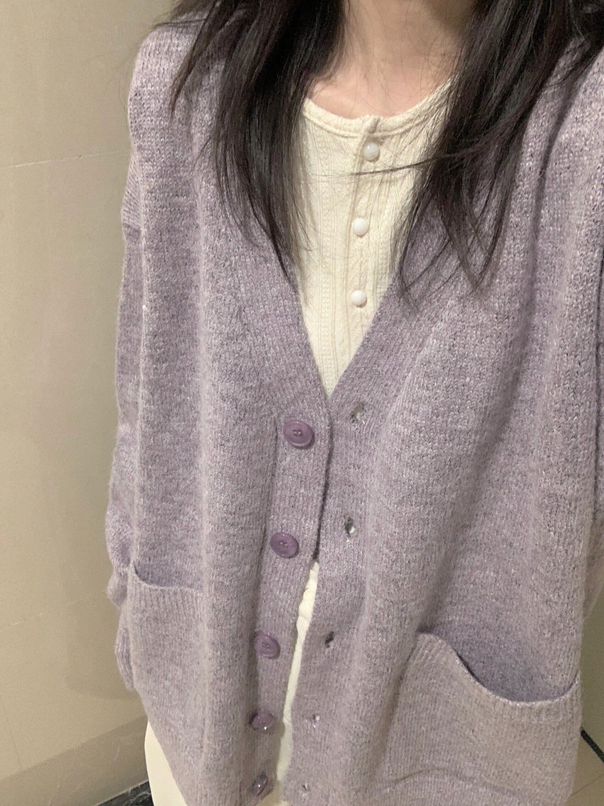 寬松慵懶風紫色毛衣外套女春秋季2025新款V領針織開衫高級感上衣