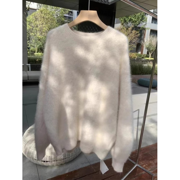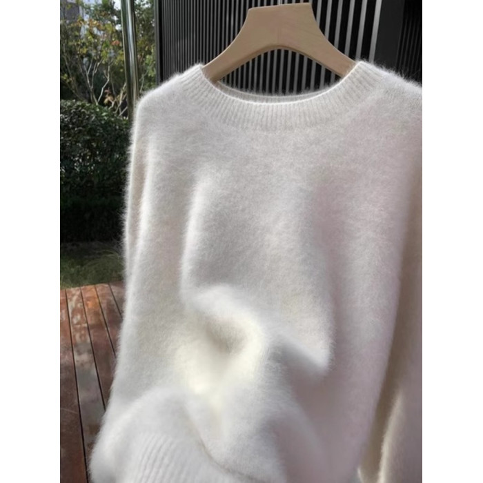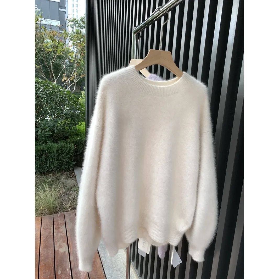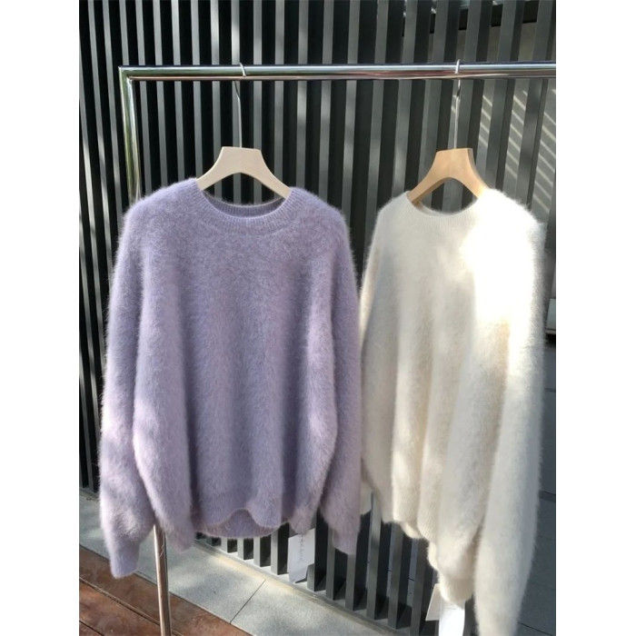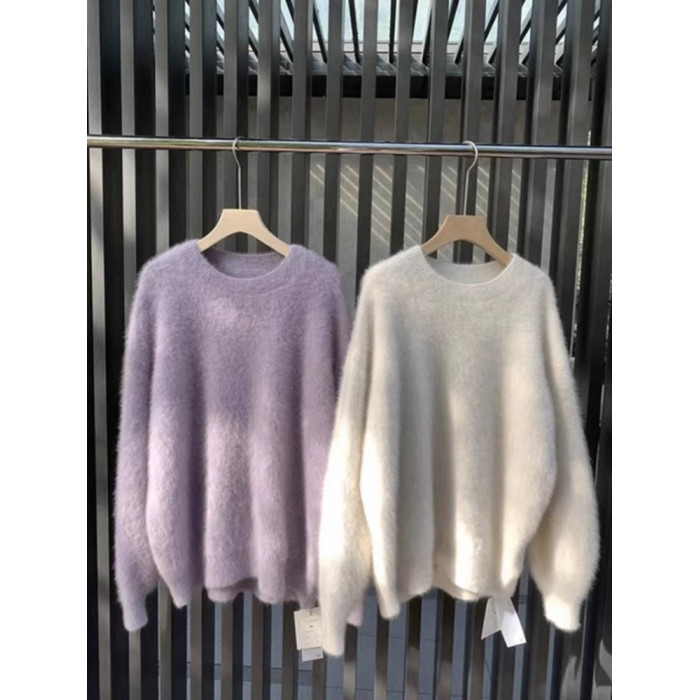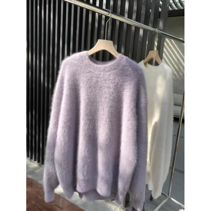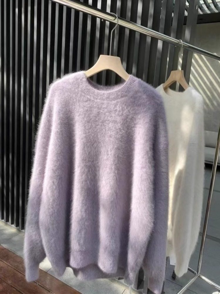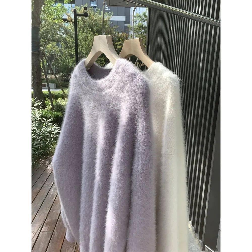 奶fufu溫柔風浣熊絨紫色毛衣女2025秋冬內搭羊毛打底針織上衣加厚