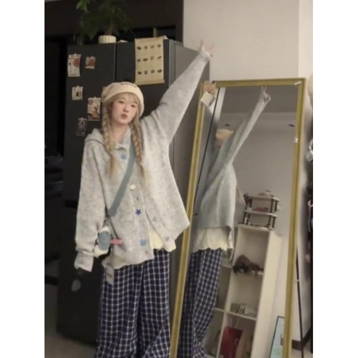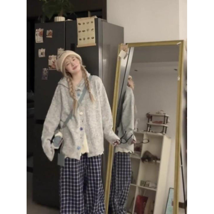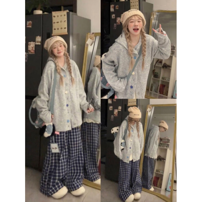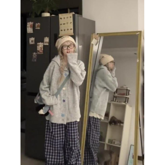 韓系軟糯高級感針織毛衣外套女秋冬季寬松連帽加厚慵懶風開衫上衣