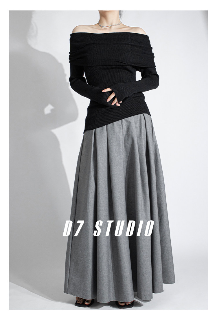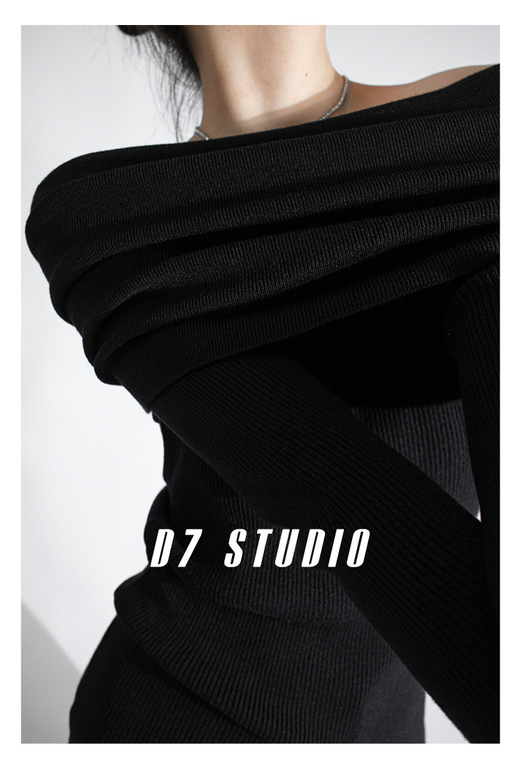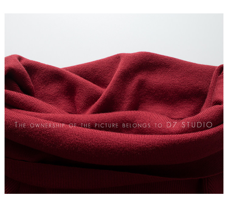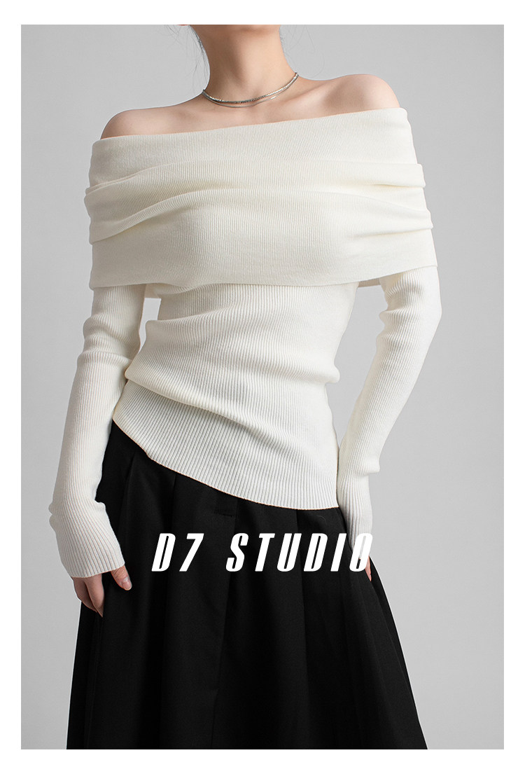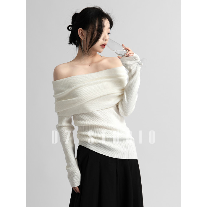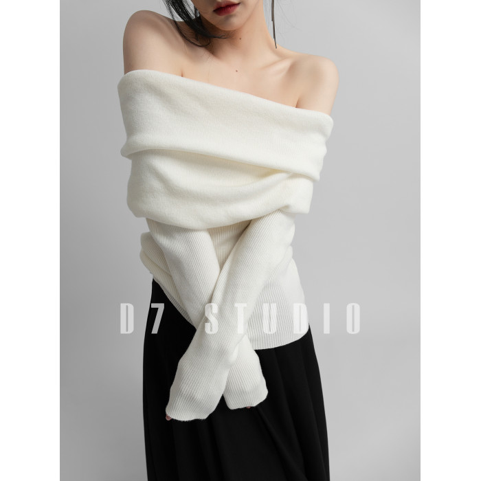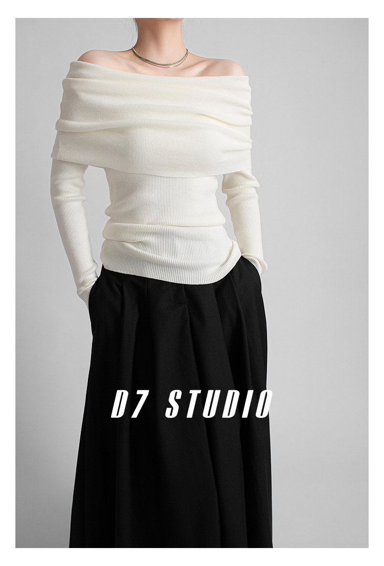 性感一字肩大翻領軟糯針織衫法式溫柔修身長袖酒紅色絕美毛衣春秋