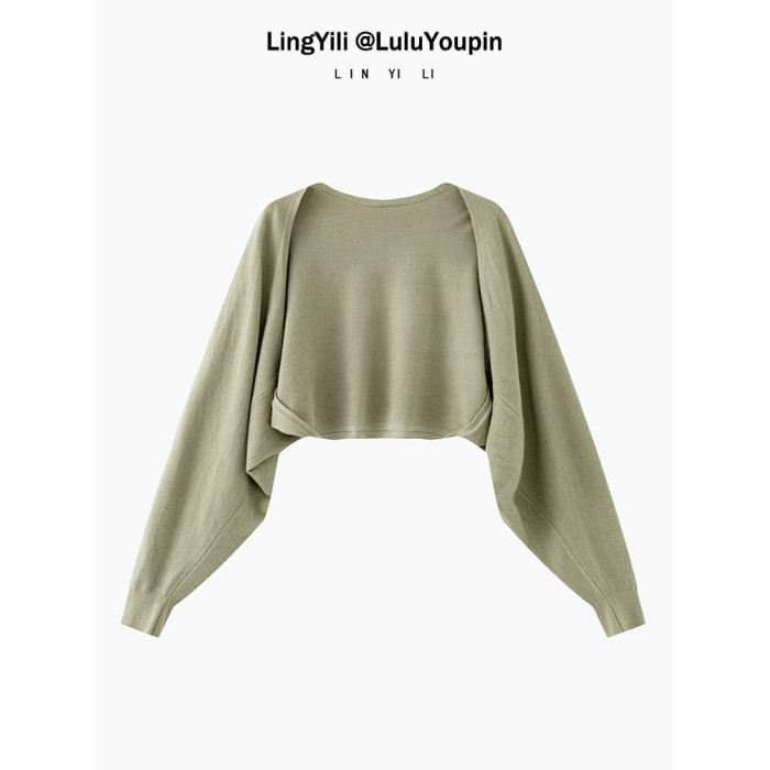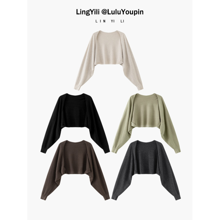 早秋針織毛衣開衫女連衣裙外搭配吊帶披肩蝙蝠袖坎肩罩衫外套上衣