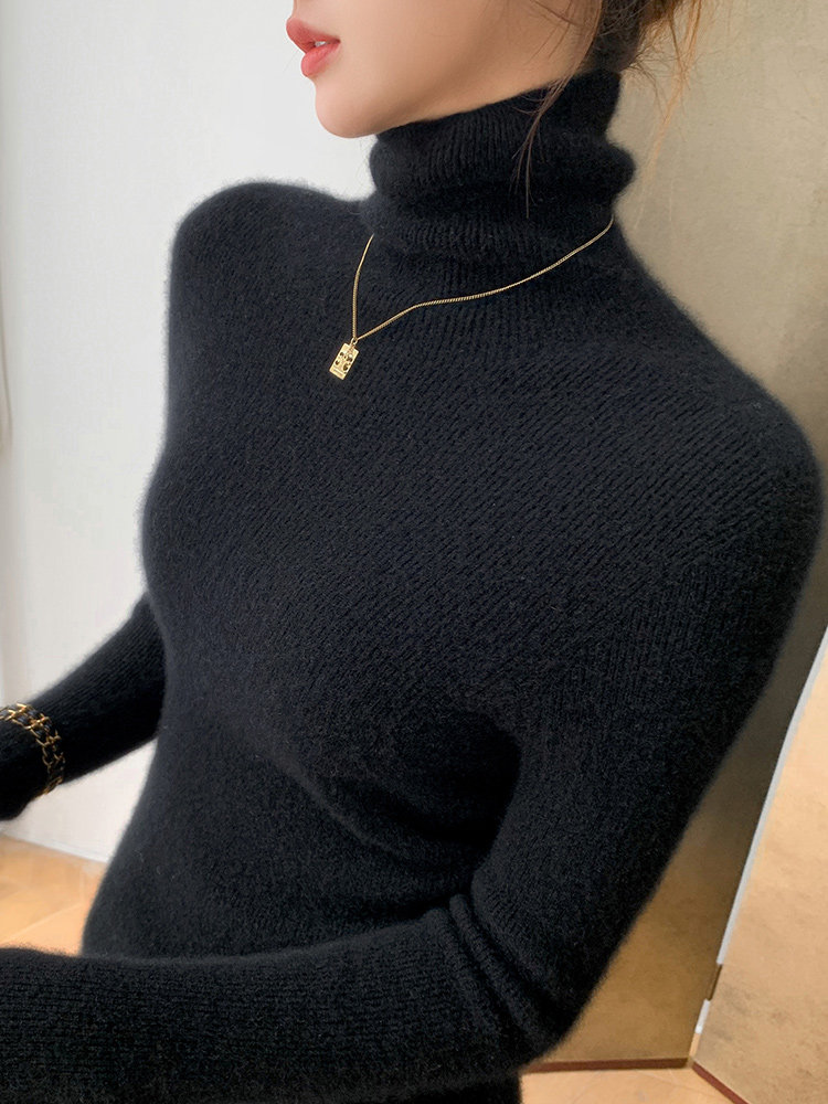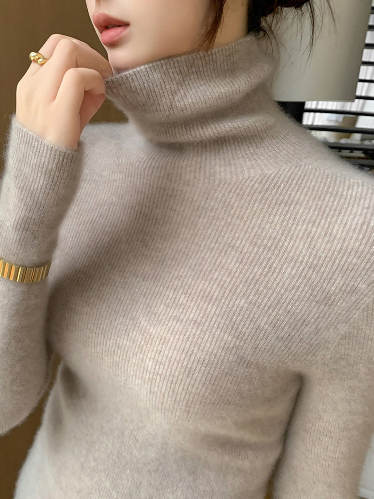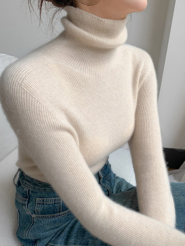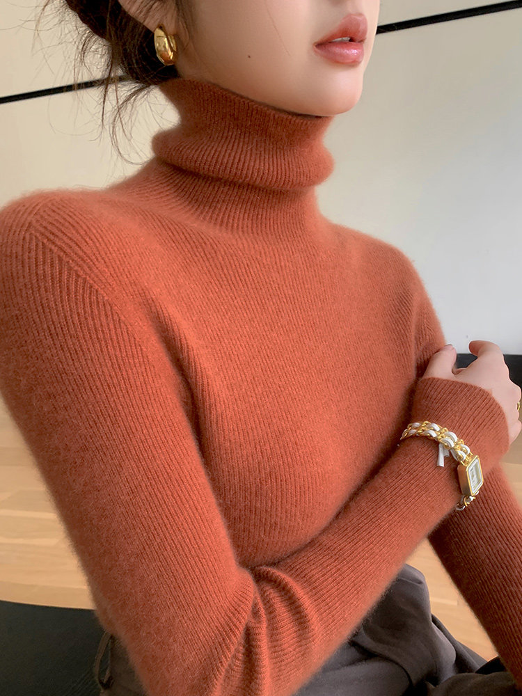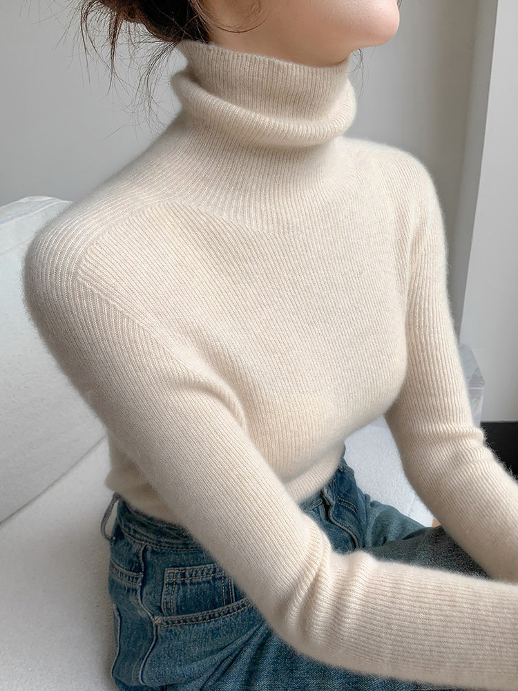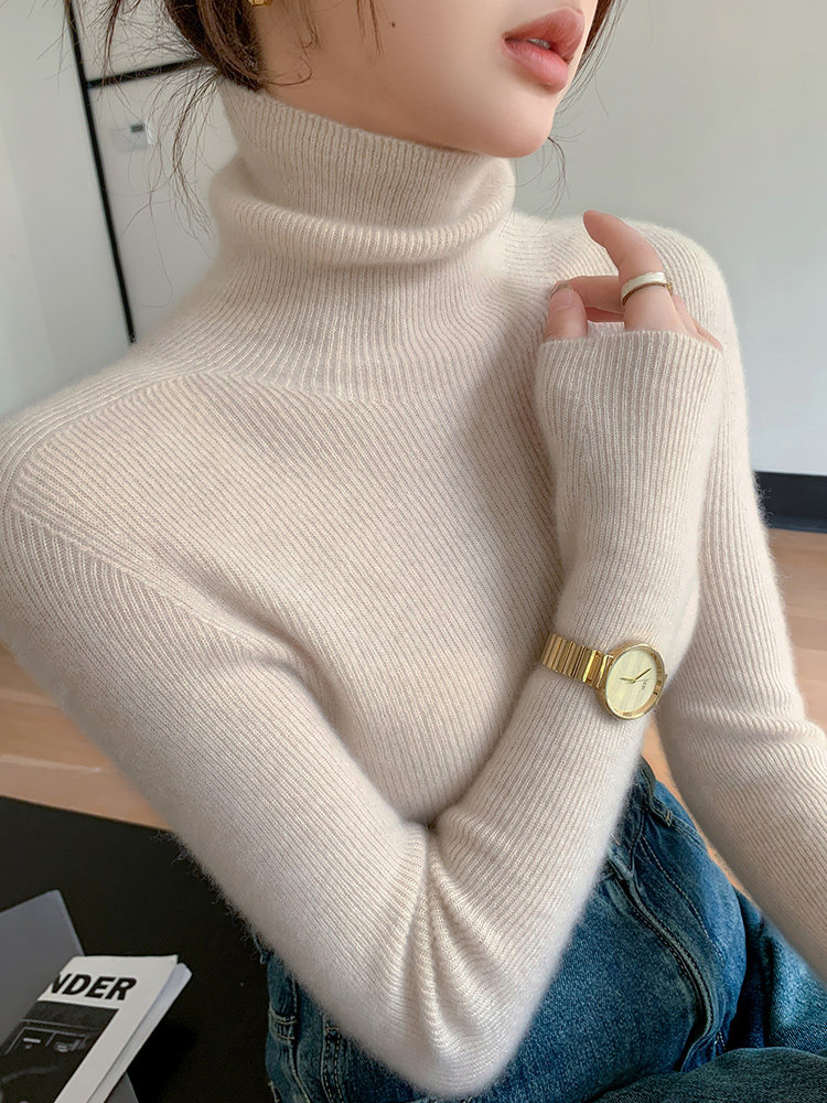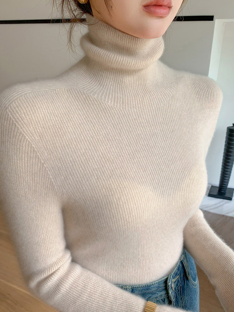 2025秋冬新款高領羊毛衫女修身內搭打底堆堆領高級感針織毛衣