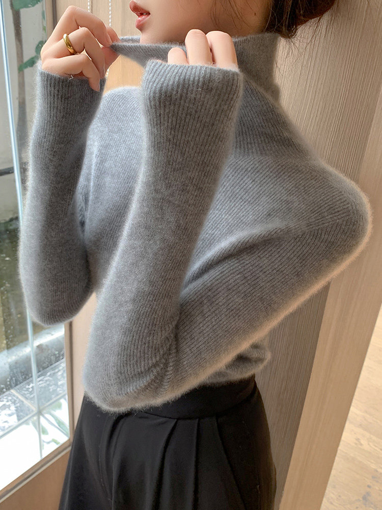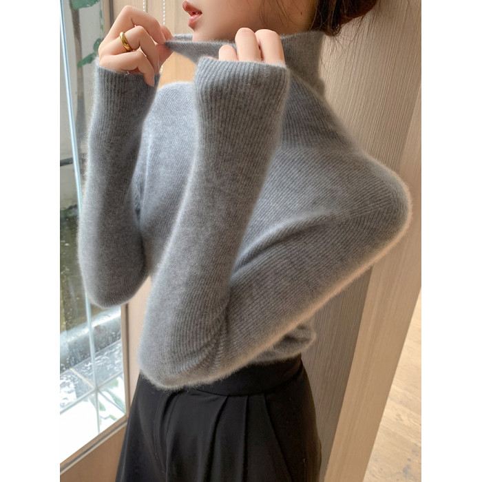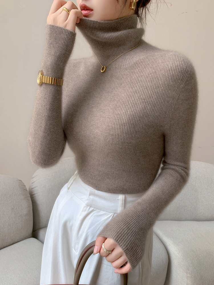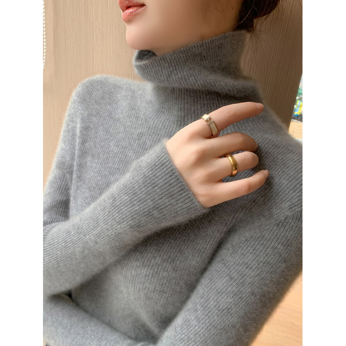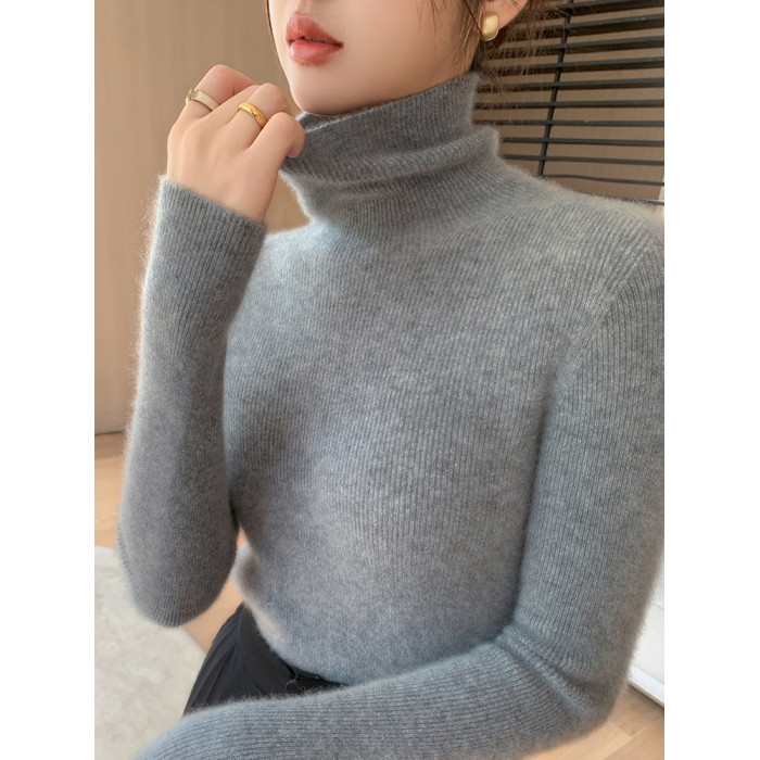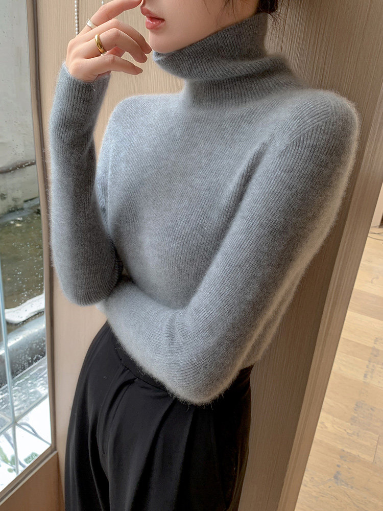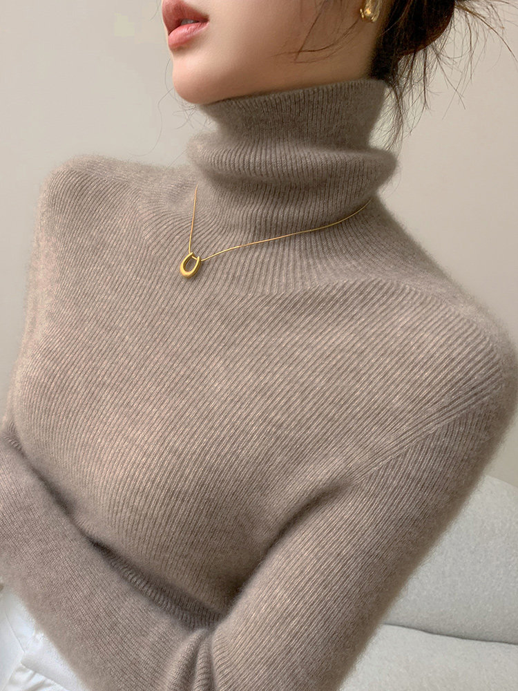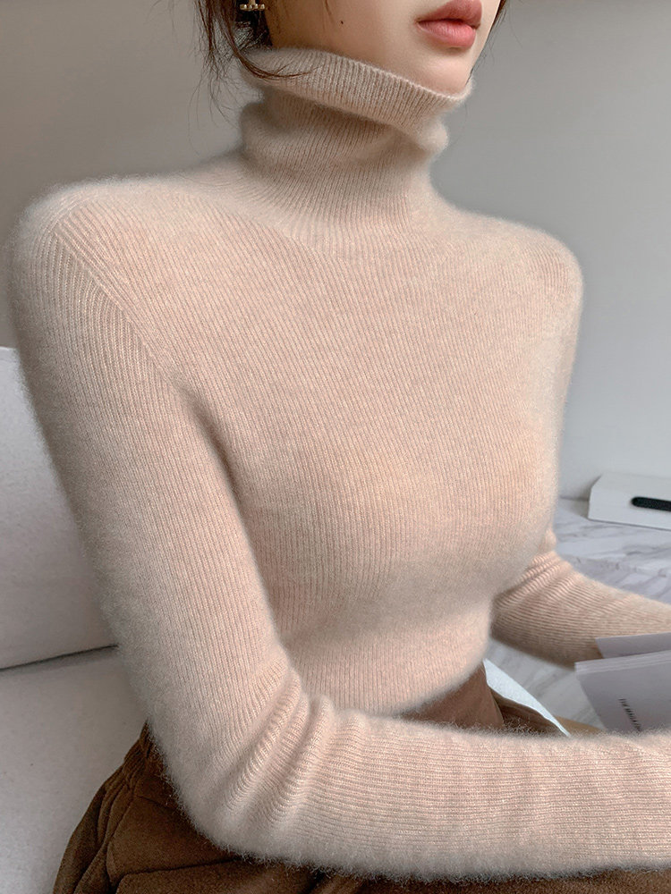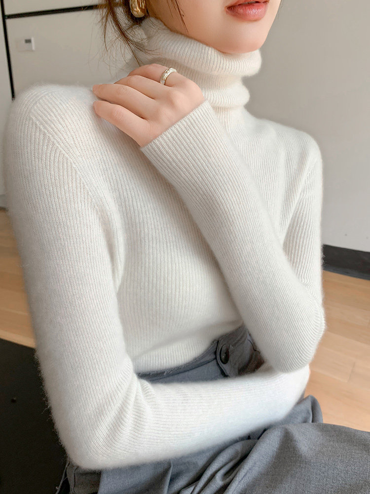 2025秋冬新款高領羊毛衫女修身內搭打底堆堆領高級感針織毛衣
