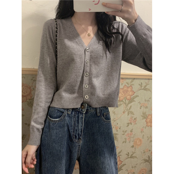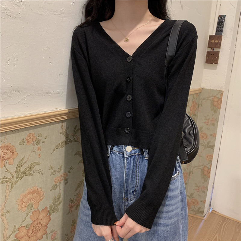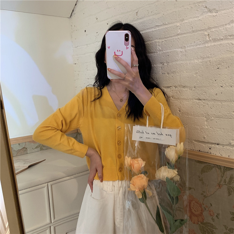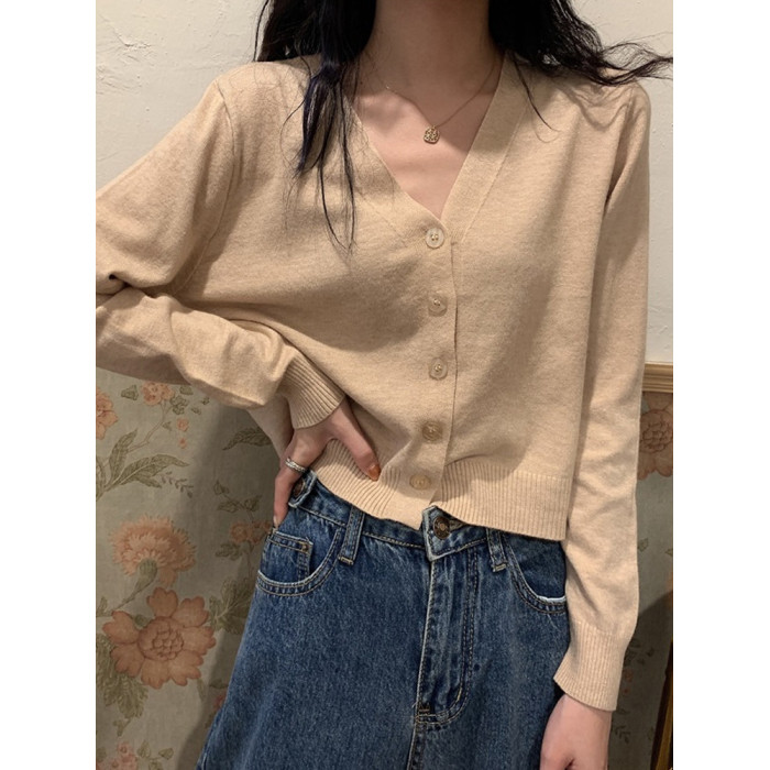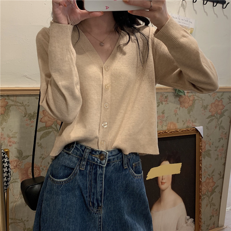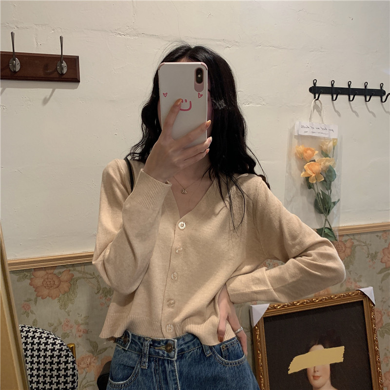 薄款針織開衫外套女秋冬韓版寬松毛衣外穿短款百搭V領打底衫上衣
